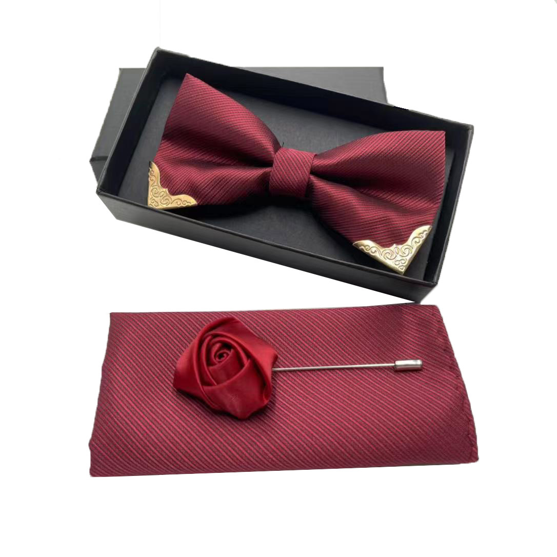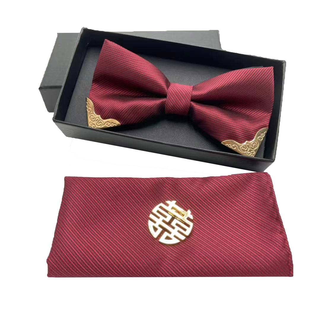 高档婚礼结婚新郎伴郎酒红色英伦蝴蝶结纯色男士领结正装西装潮流