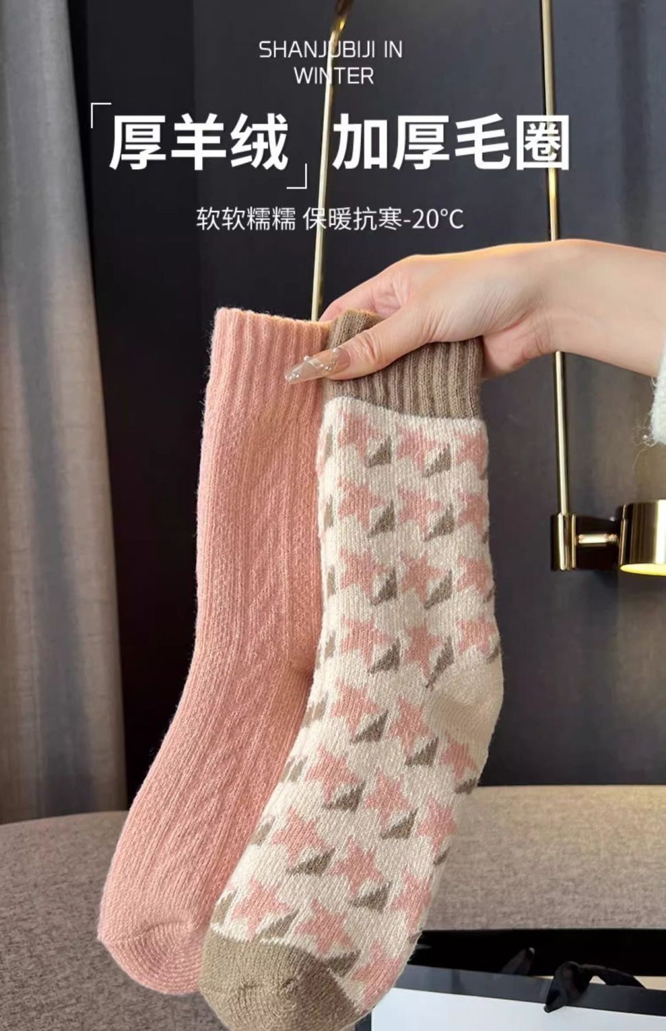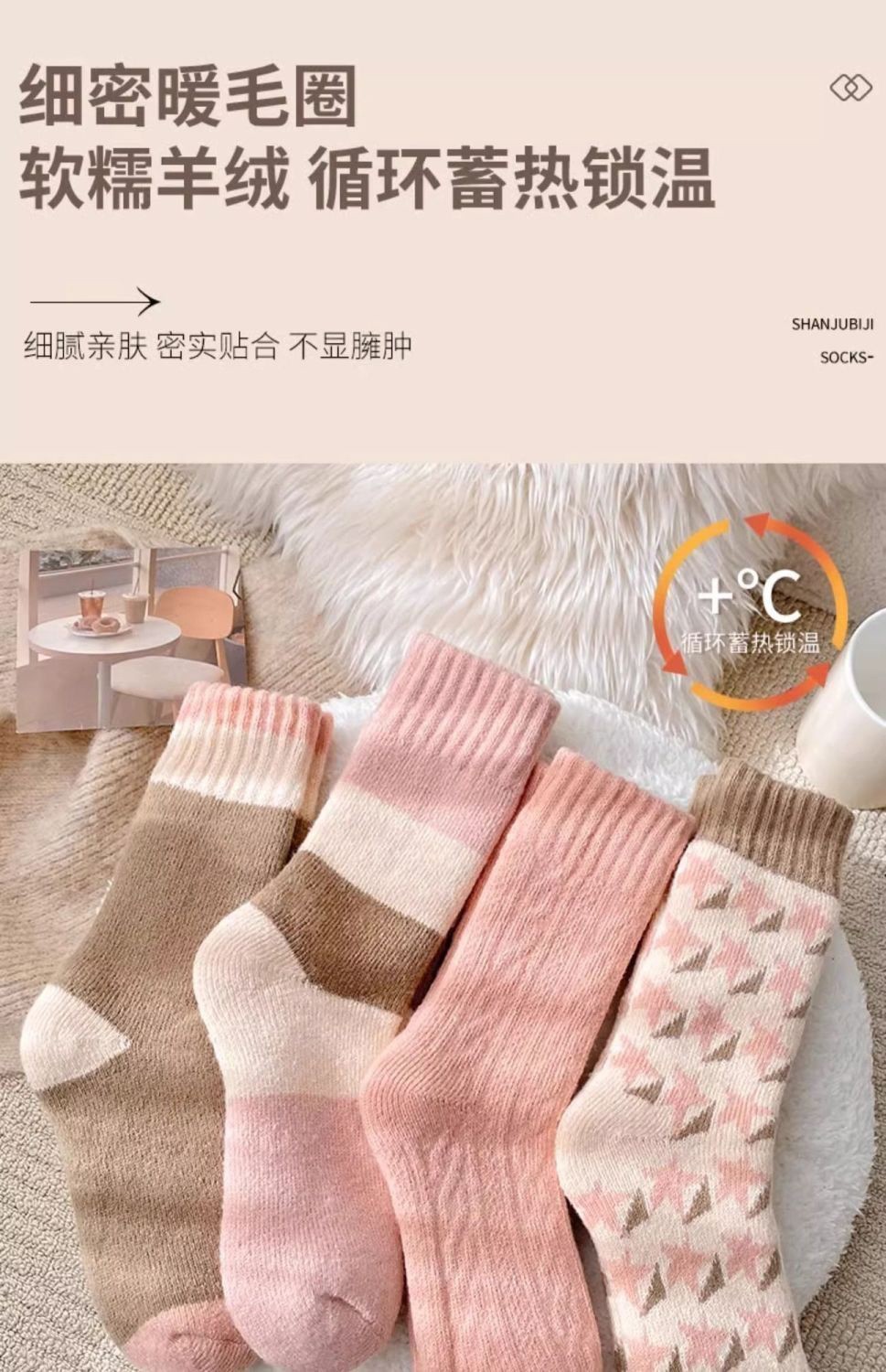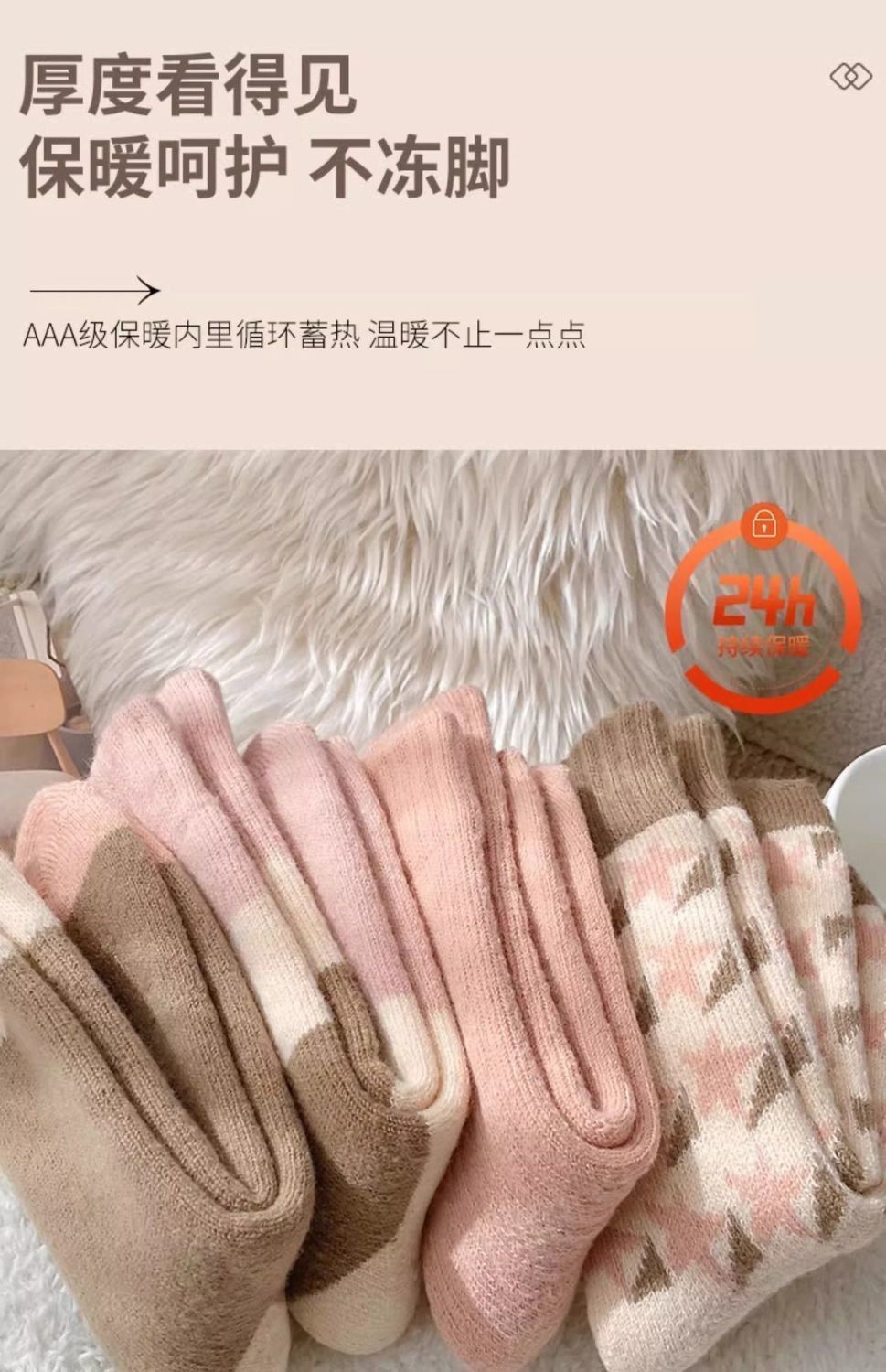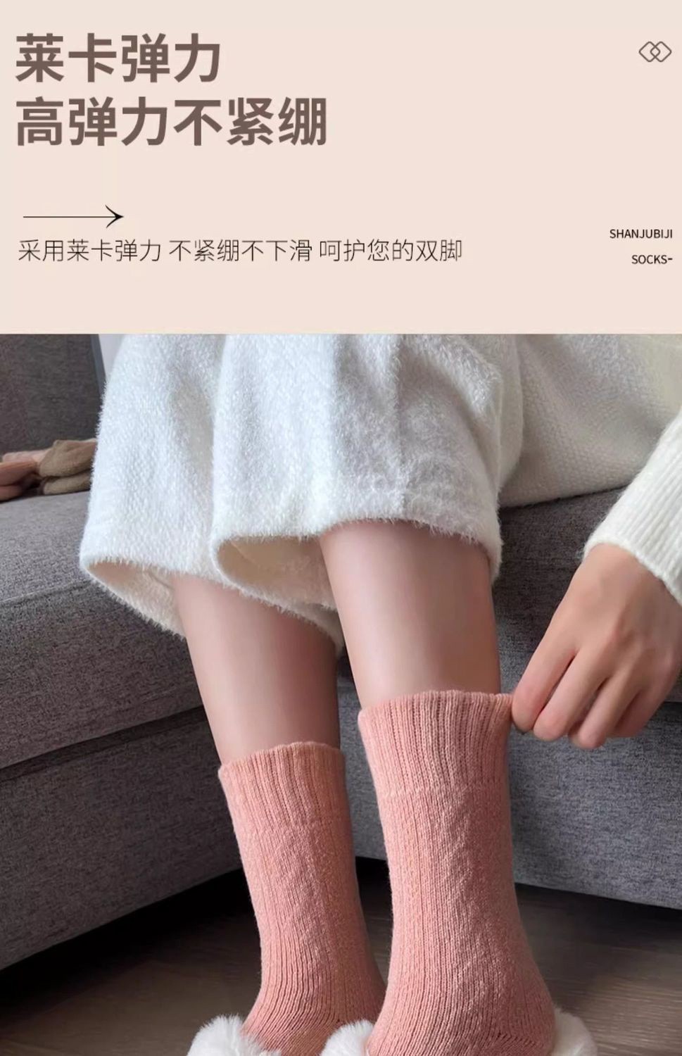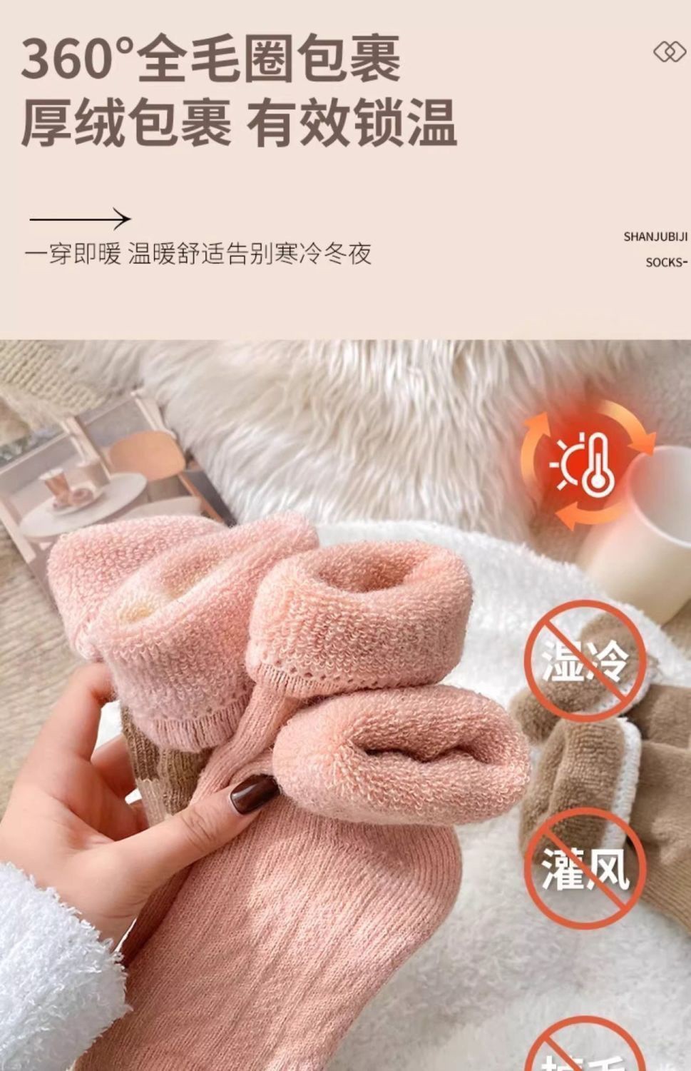 厂家批发加厚毛圈袜子女中筒袜抗起球秋冬季厚款保暖毛巾底地板袜