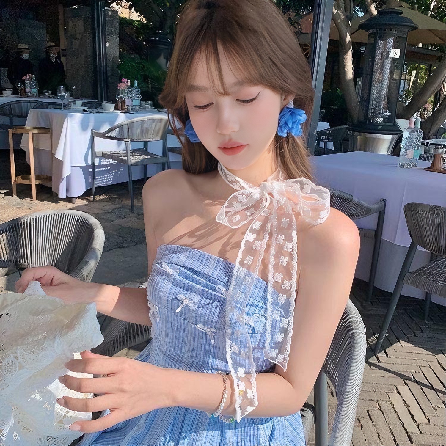 蝴蝶结蕾丝丝带丝巾女2025新款夏季度假风氛围感颈带装饰发带发绳