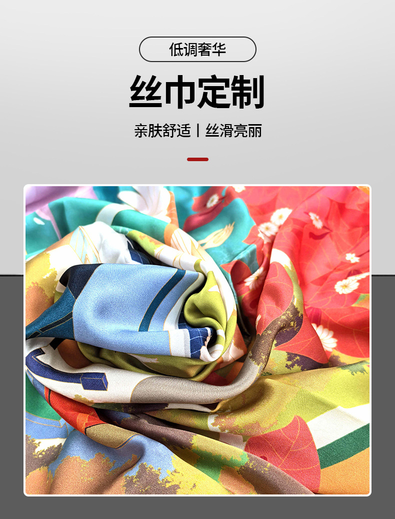 小单定制真丝丝巾飘带跨境桑蚕丝绑包仿真丝数码印花方巾台版围巾