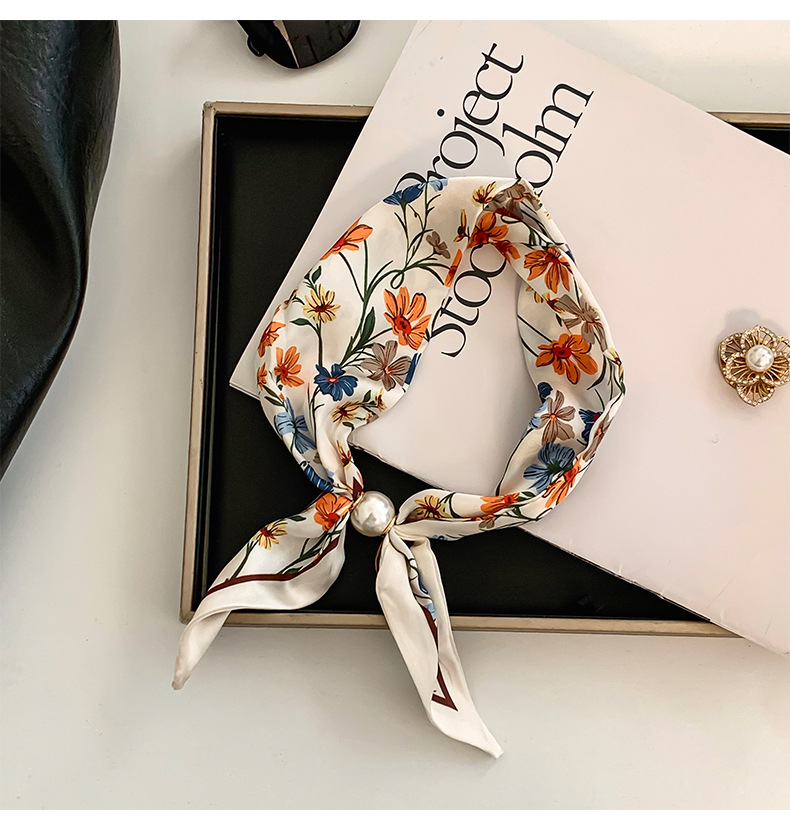 腰果花丝巾新款懒人锁骨链护颈领巾围脖珍珠项链磁吸扣丝巾定制