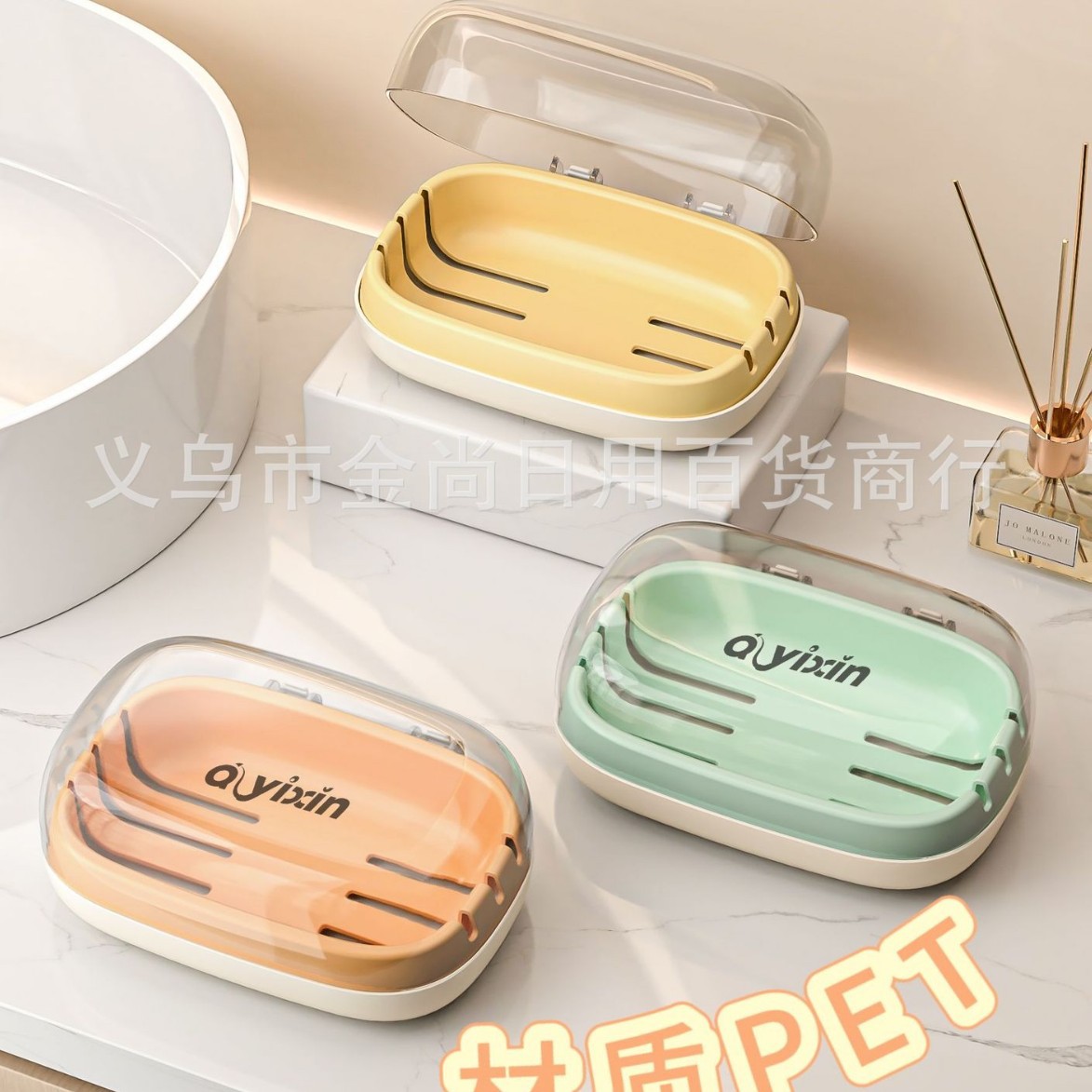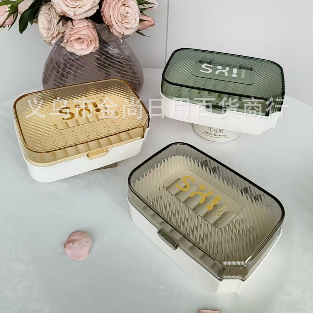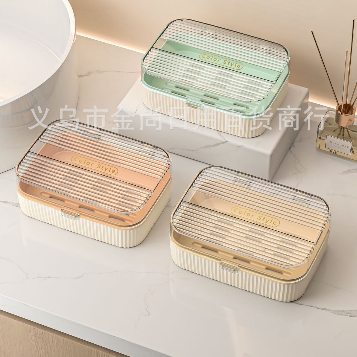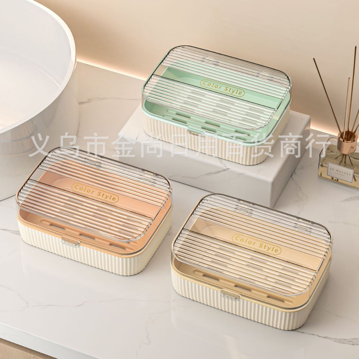 高级感肥皂盒带盖双层沥水便携式学生宿舍家用浴室香皂翻盖肥皂盒