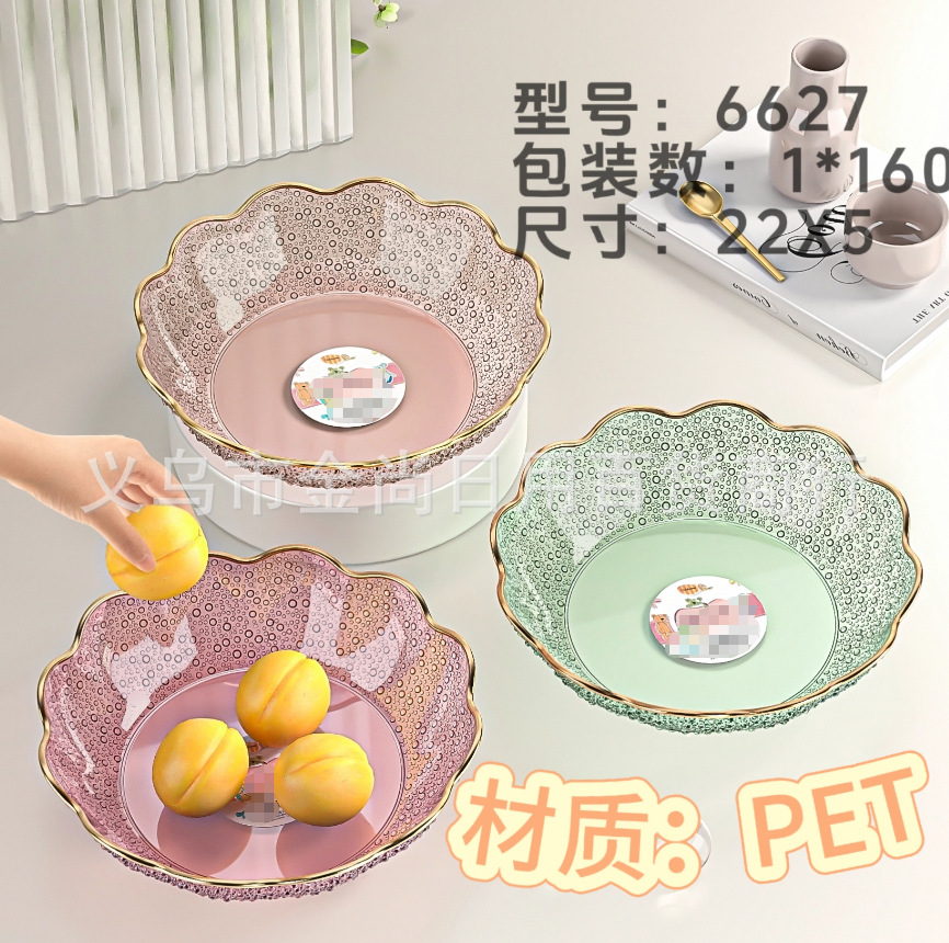 轻奢跨境食品级塑料PET水果盘客厅家用高颜值零食盘糖果摆放盘