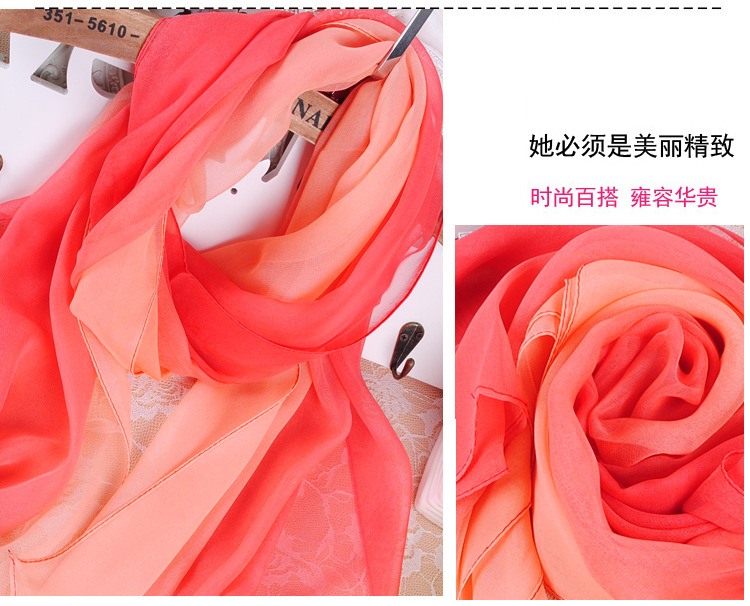 summer sunscreen scarf wholesale women‘s thin gradient color small silk scarf georgette all-match scarf catwalk light scarf