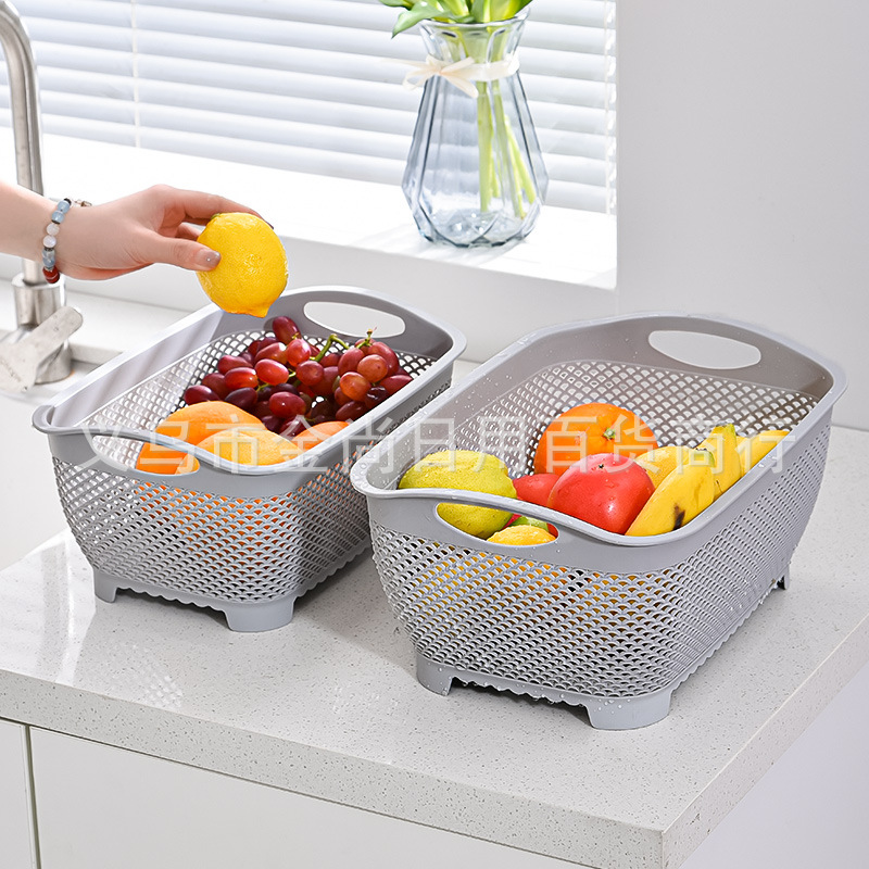 新款塑料沥水篮水果盘客厅茶几淘米滤水篮厨房家用双层洗菜盆大号