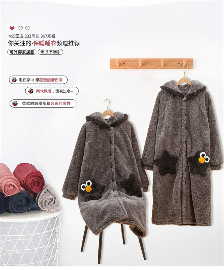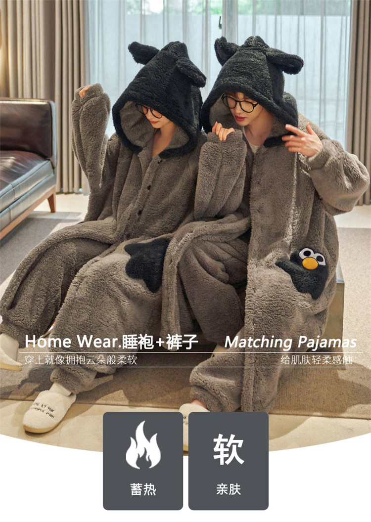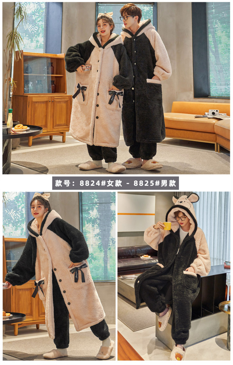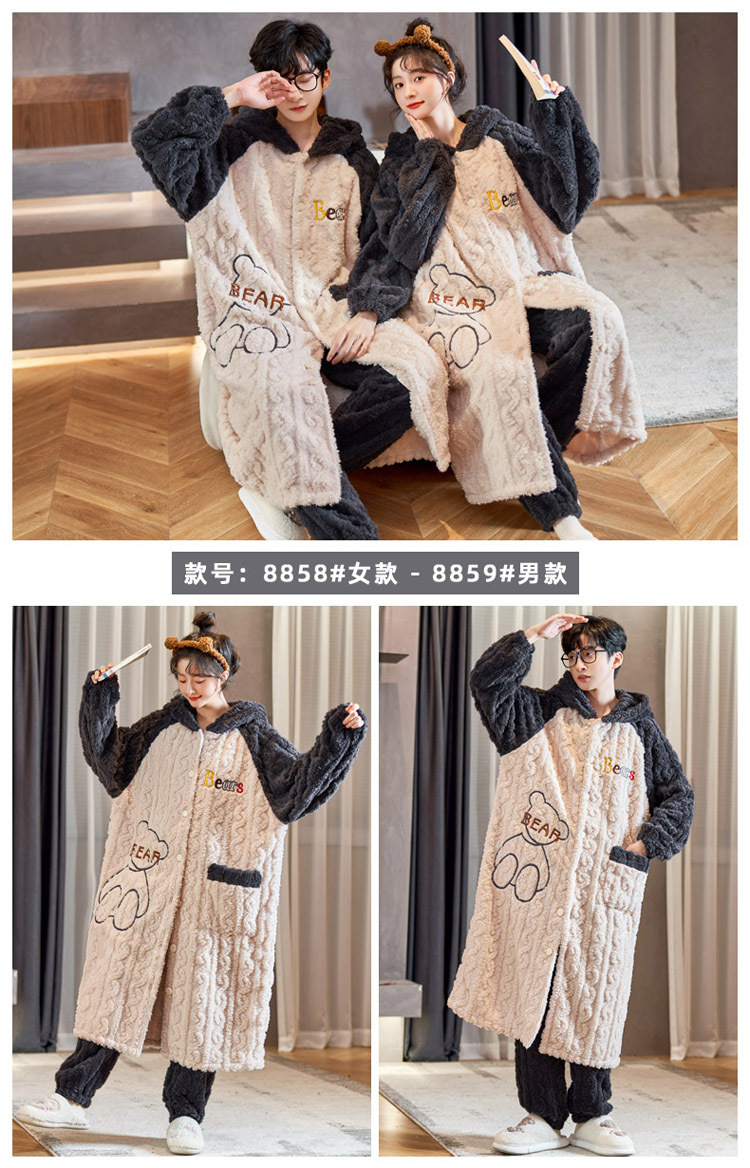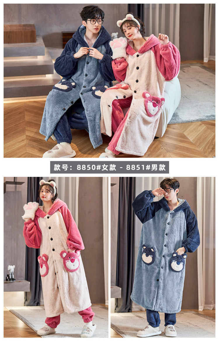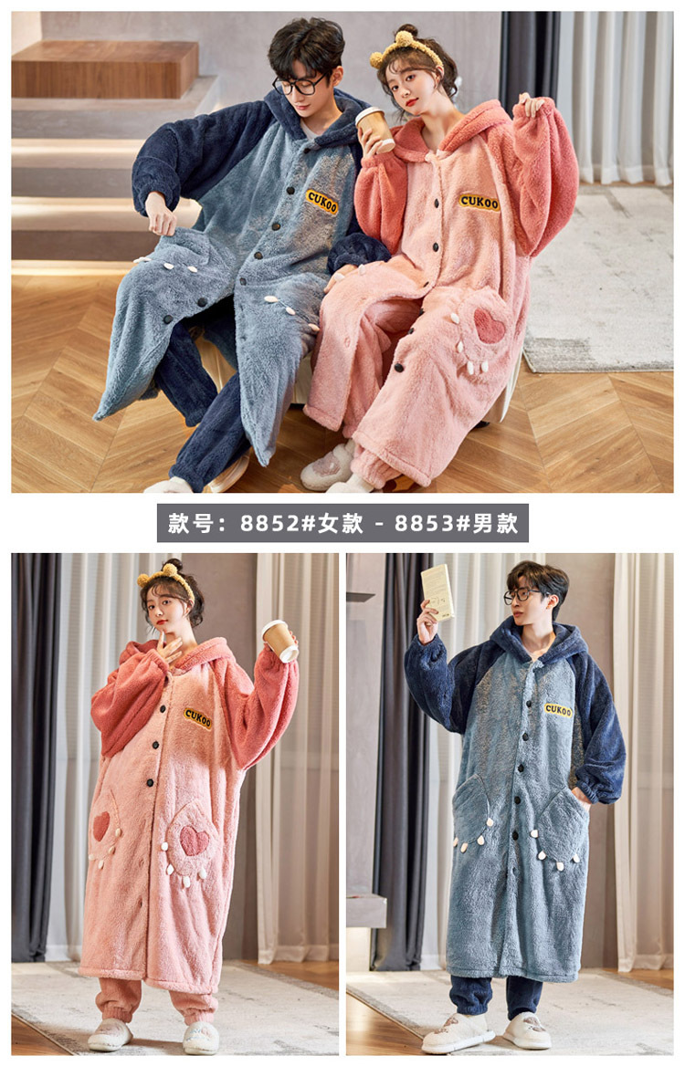 睡袍女冬长款珊瑚绒加绒加厚情侣浴袍法兰绒男睡衣冬季家居服外穿