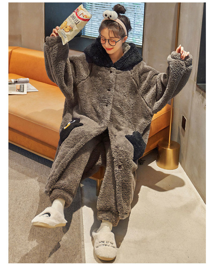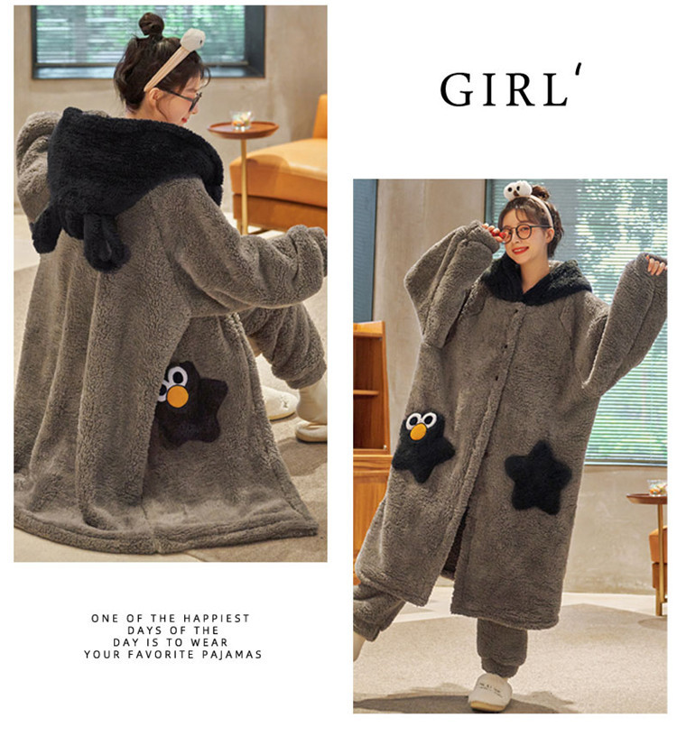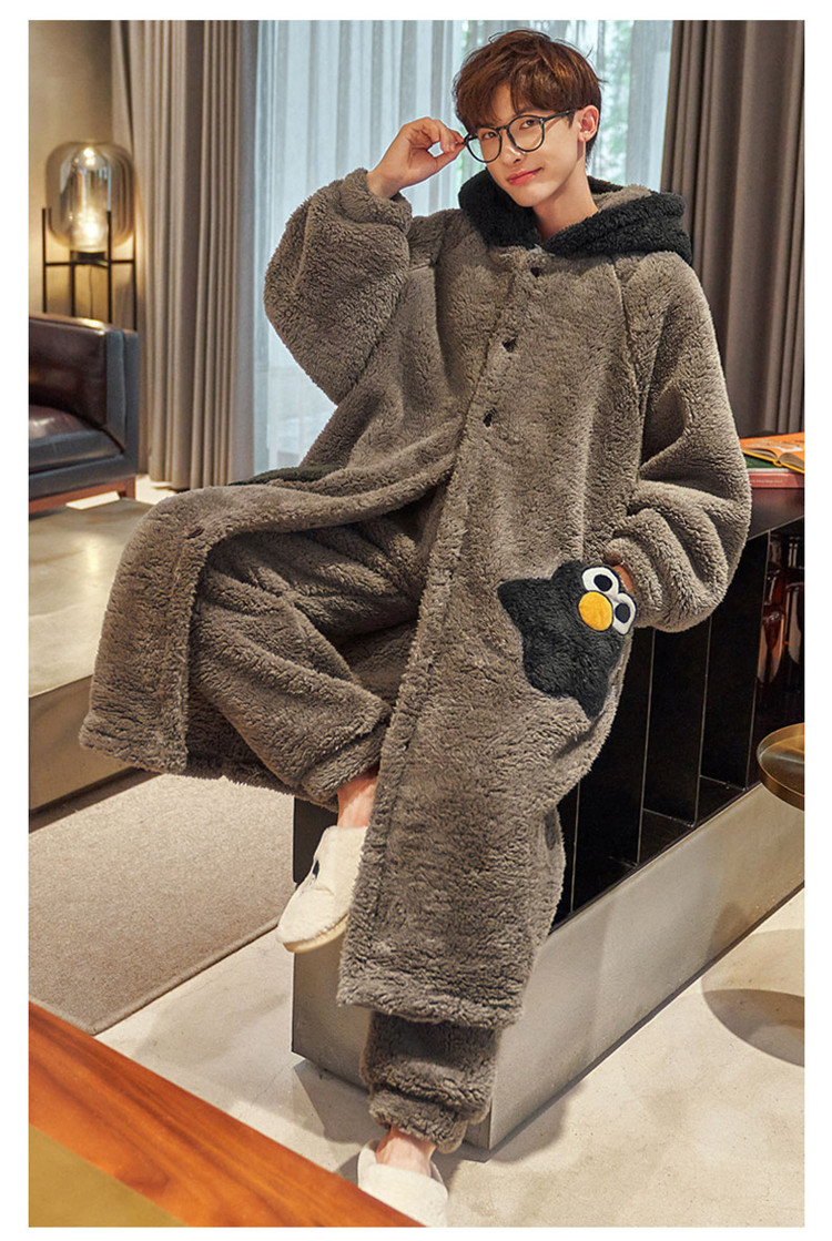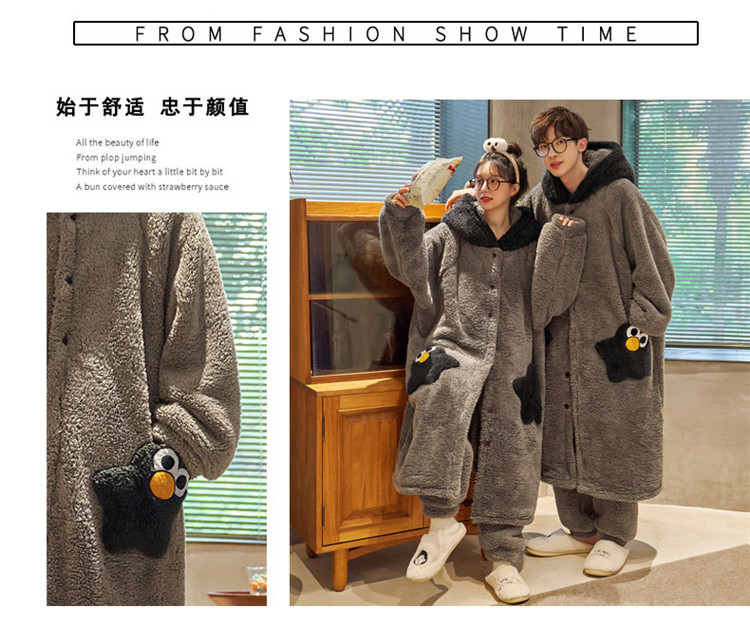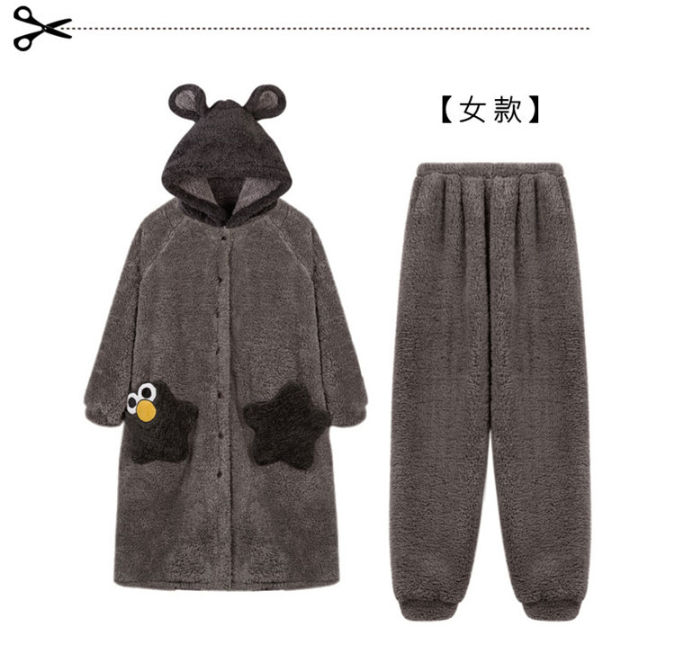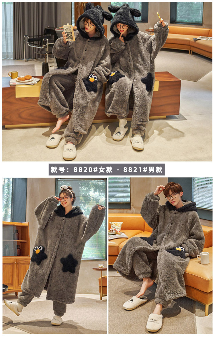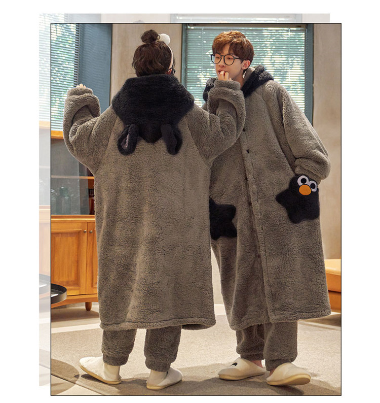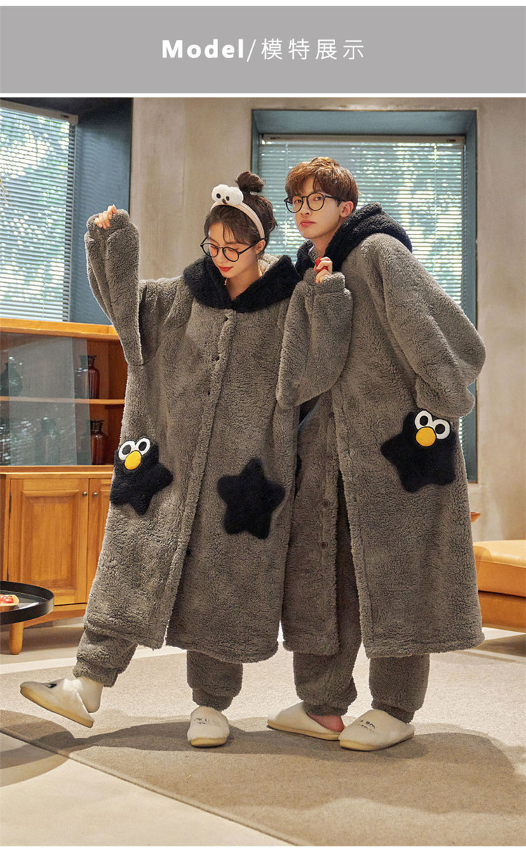 睡袍女冬长款珊瑚绒加绒加厚情侣浴袍法兰绒男睡衣冬季家居服外穿