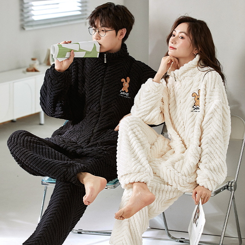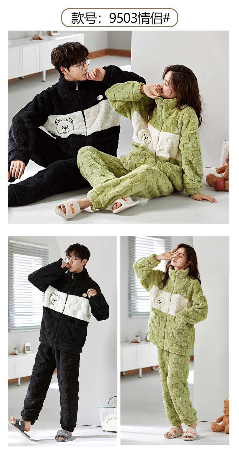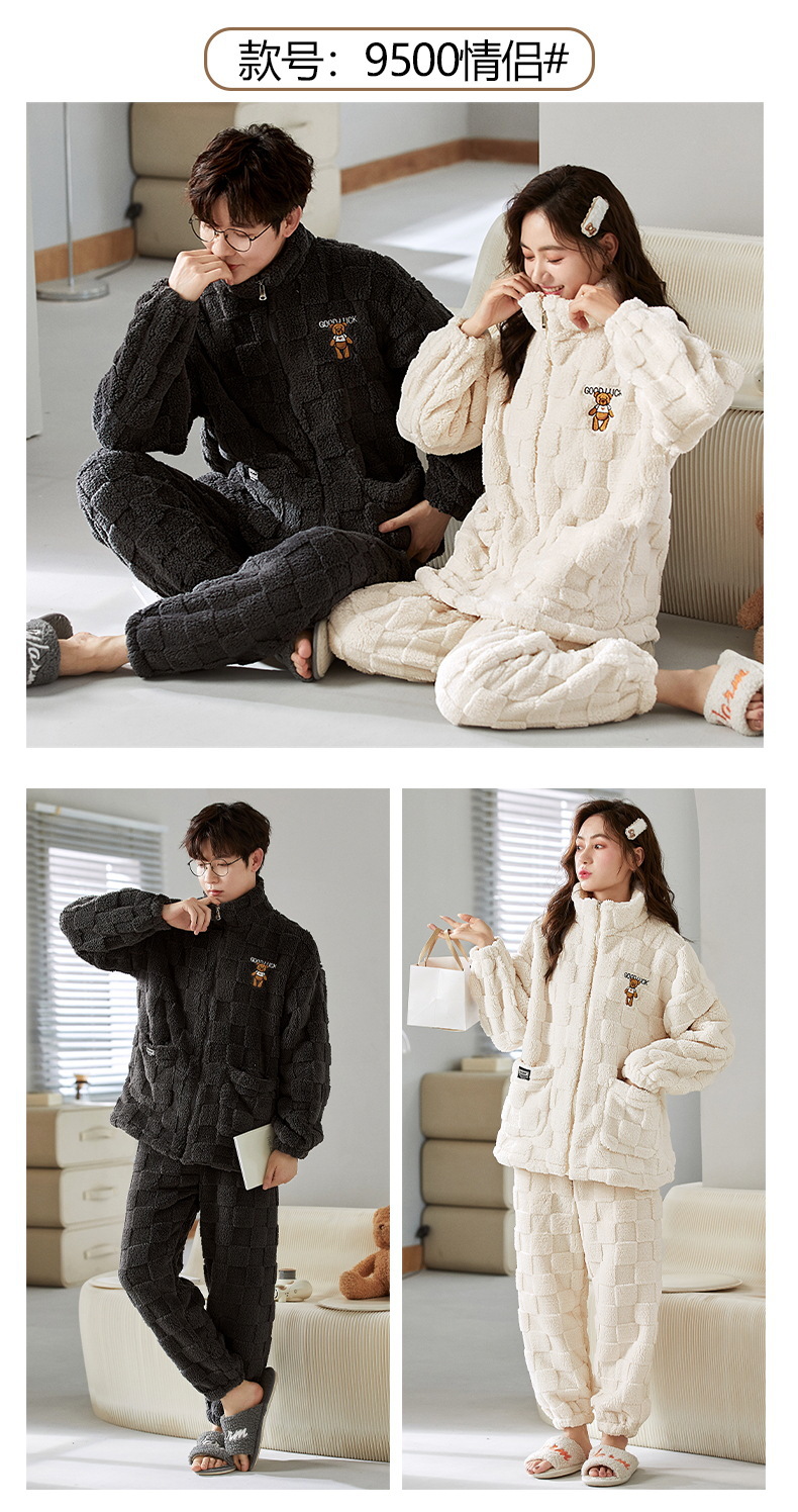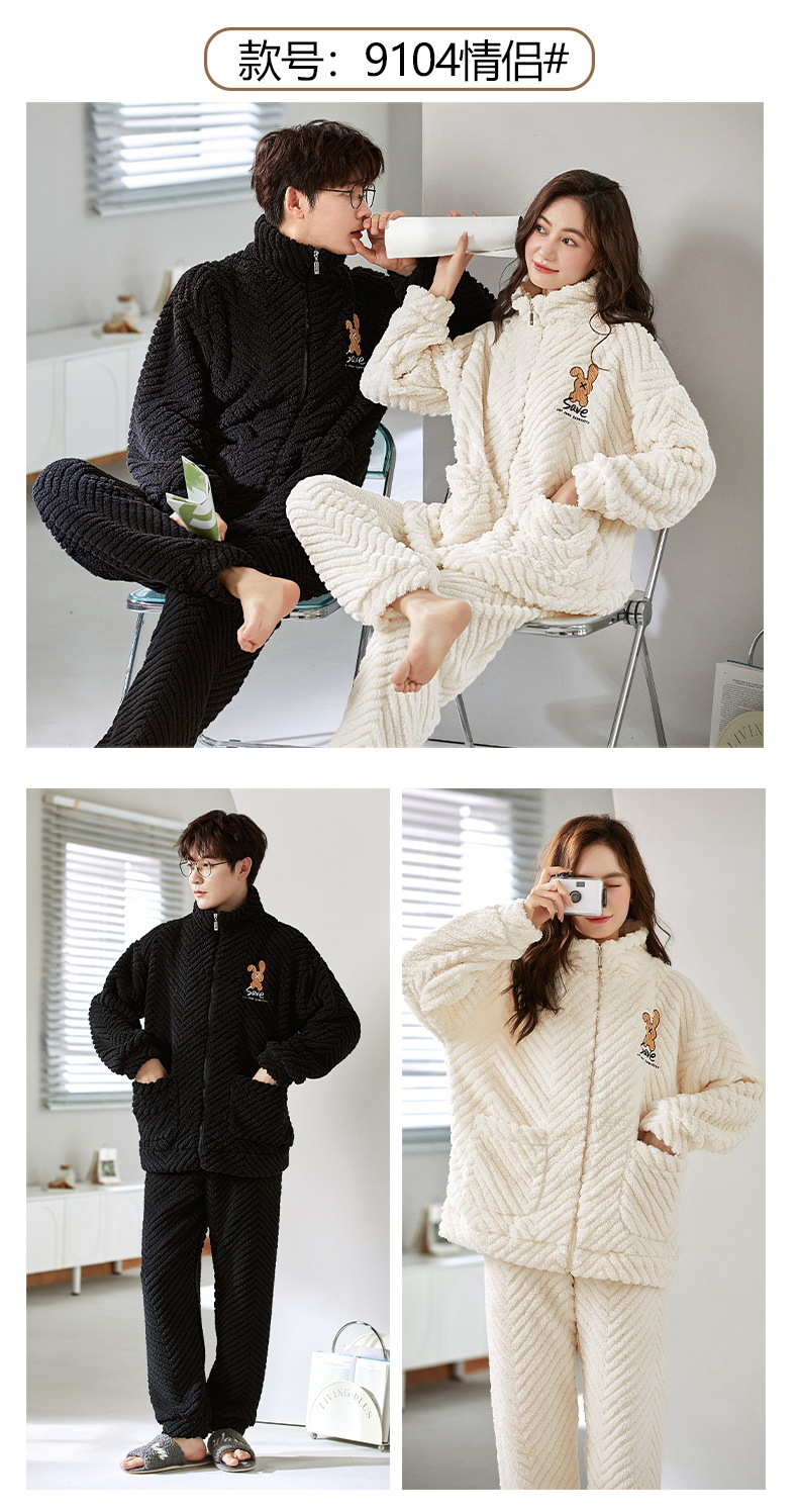 情侣睡衣秋冬季加厚珊瑚绒女款卡通冬天法兰绒男士家居服拉链套装