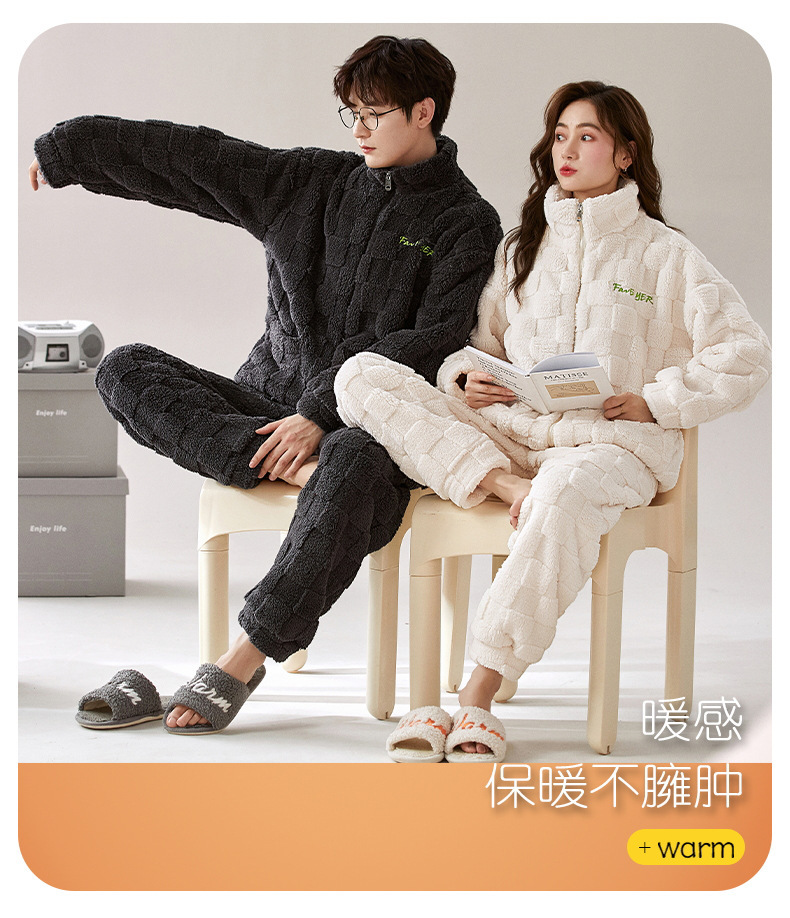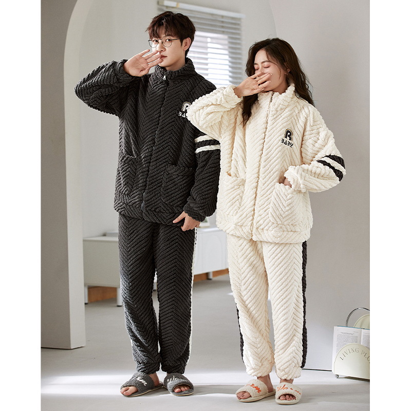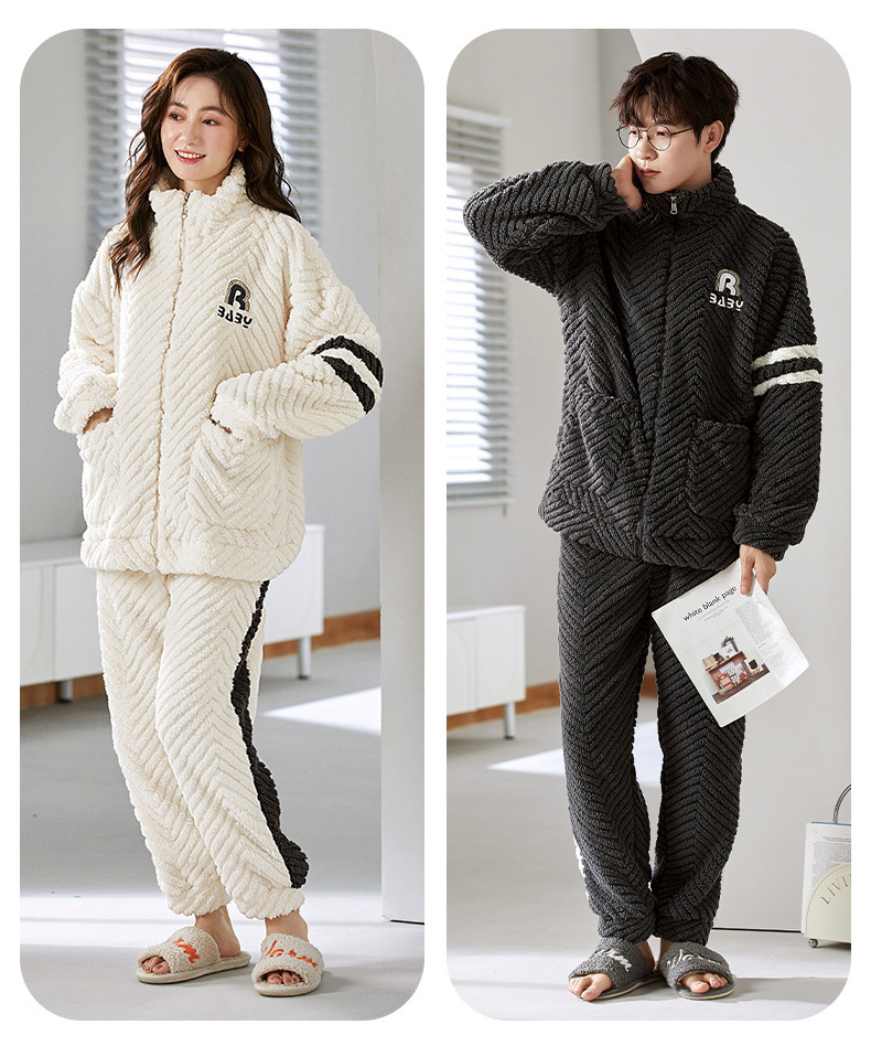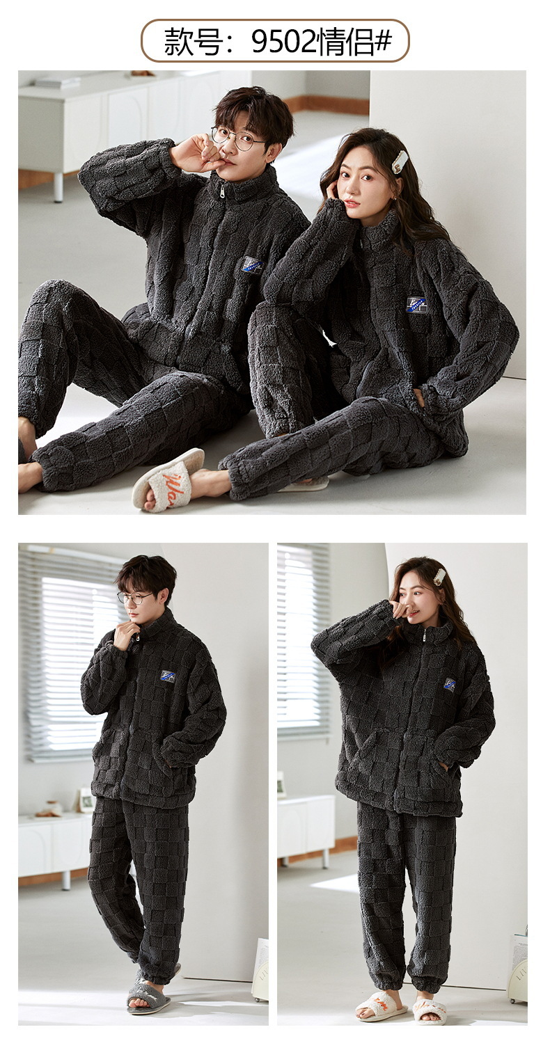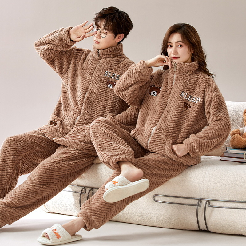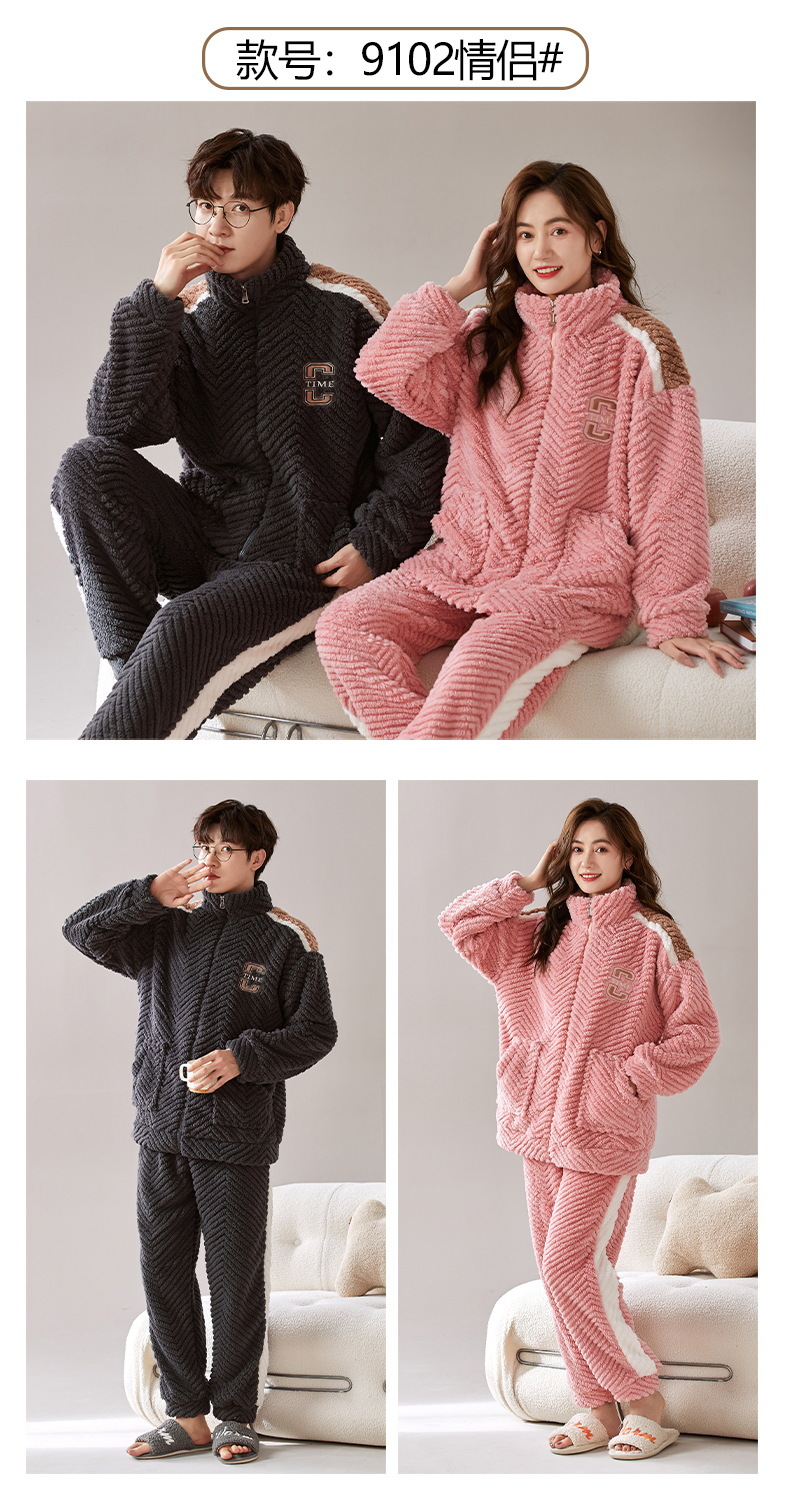 情侣睡衣秋冬季加厚珊瑚绒女款卡通冬天法兰绒男士家居服拉链套装