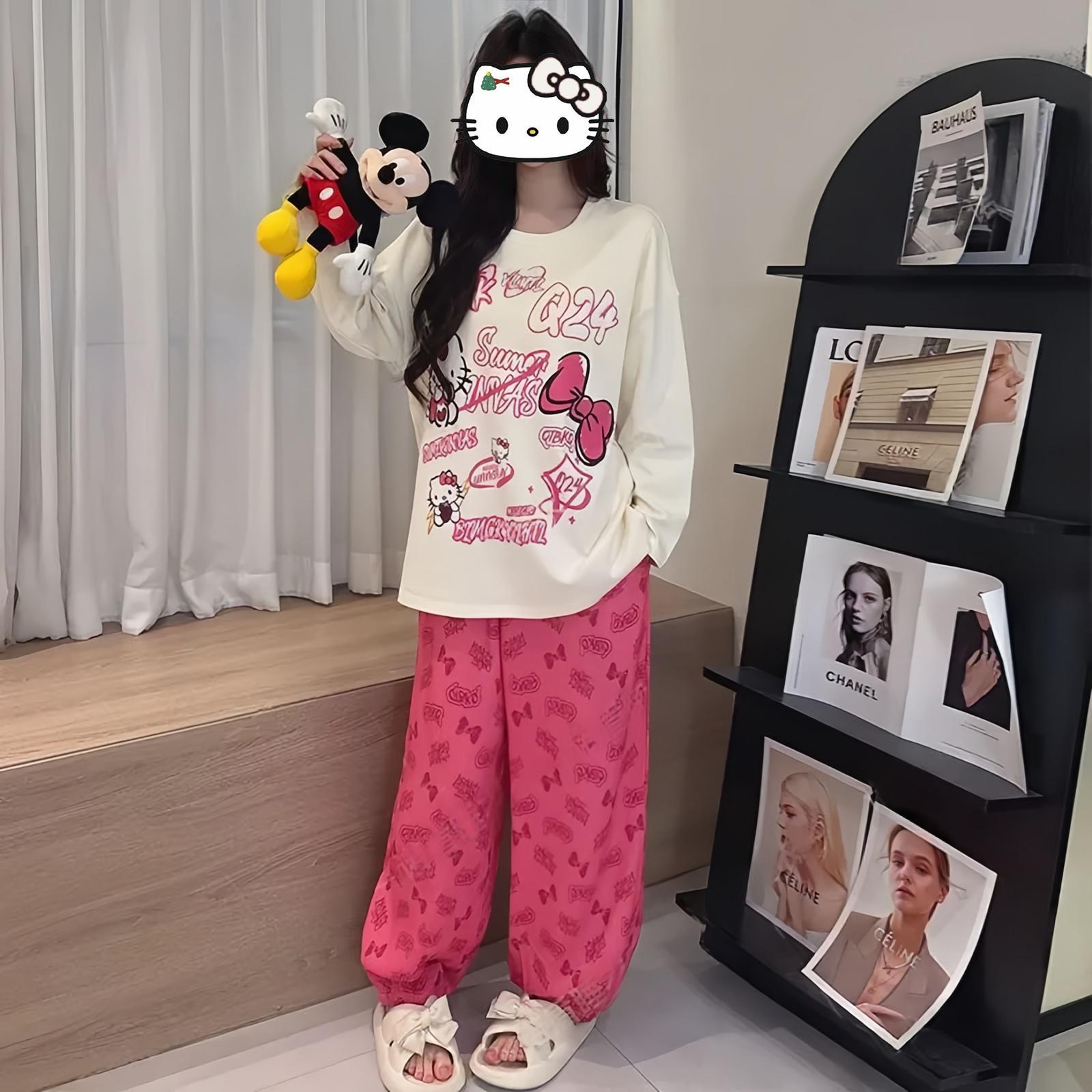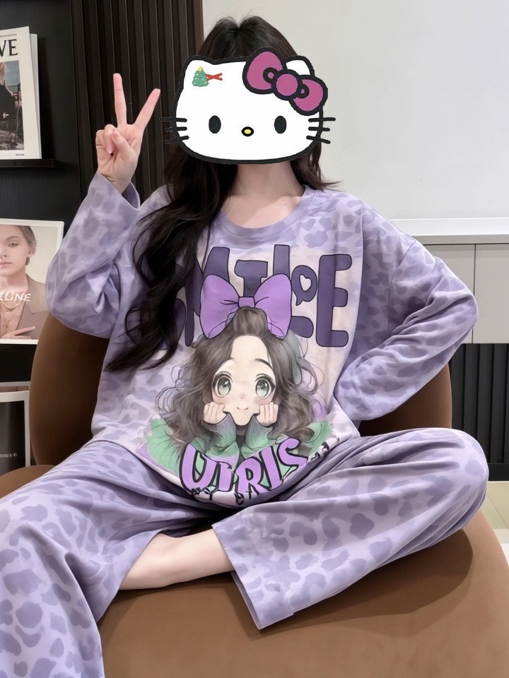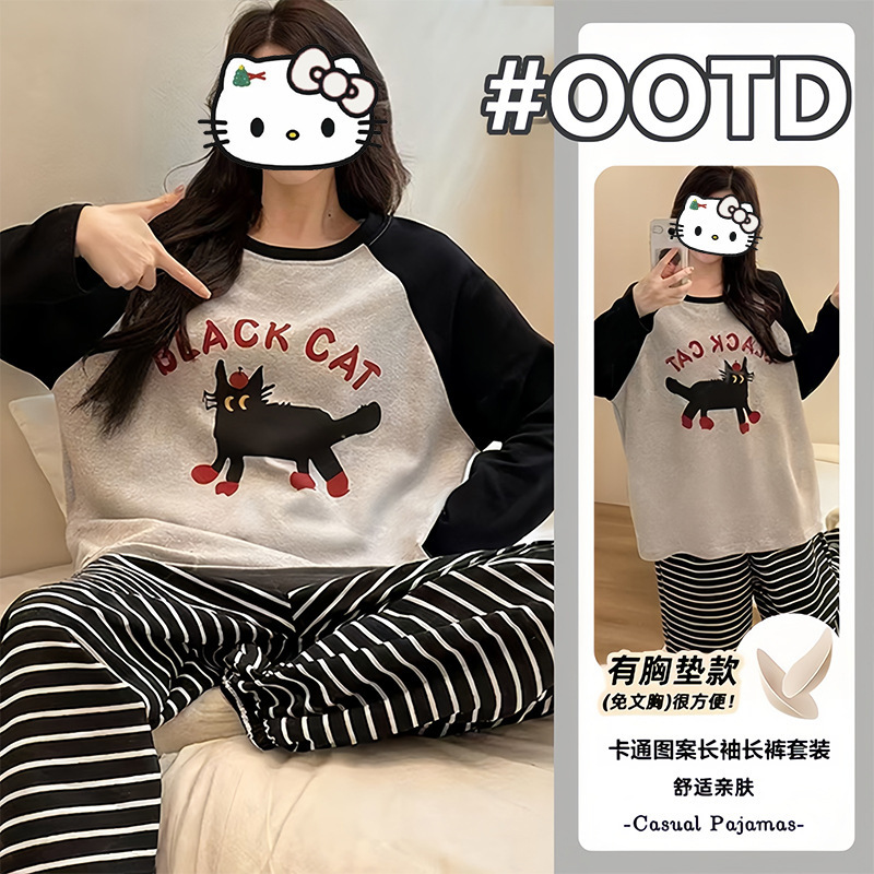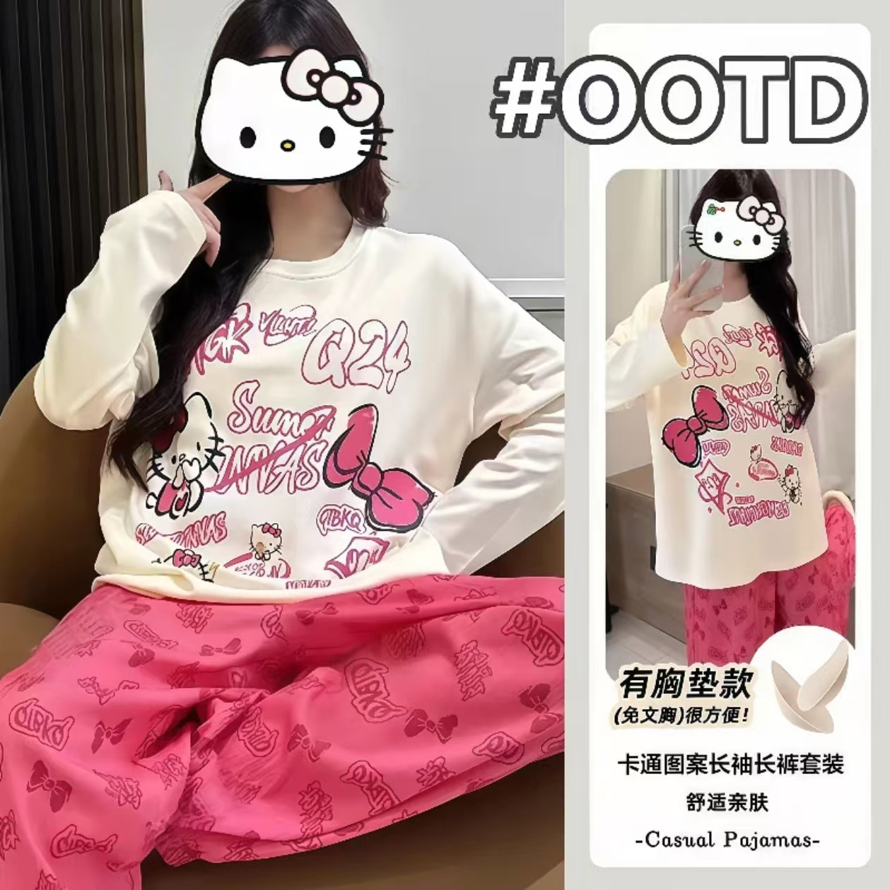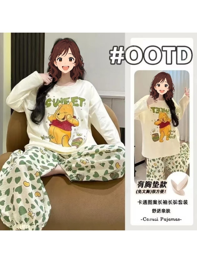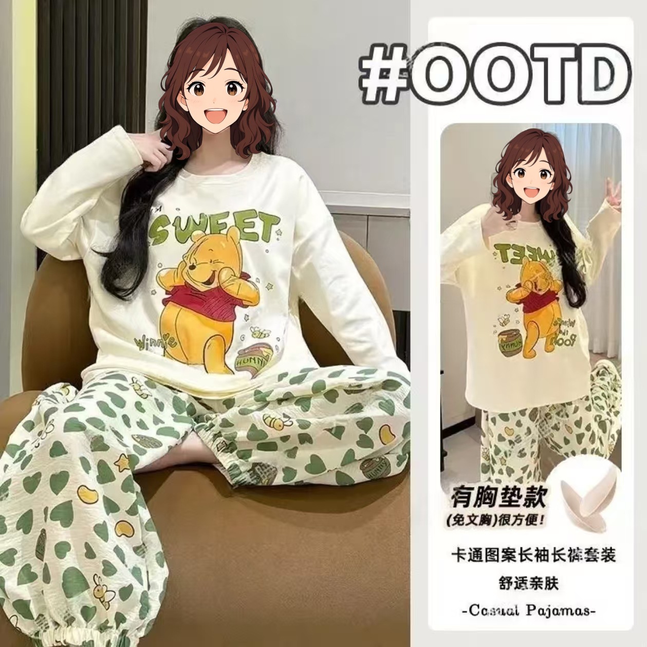 2025年新款自带胸垫一体睡衣女长袖卡通爆款可外穿家居服宽松韩版