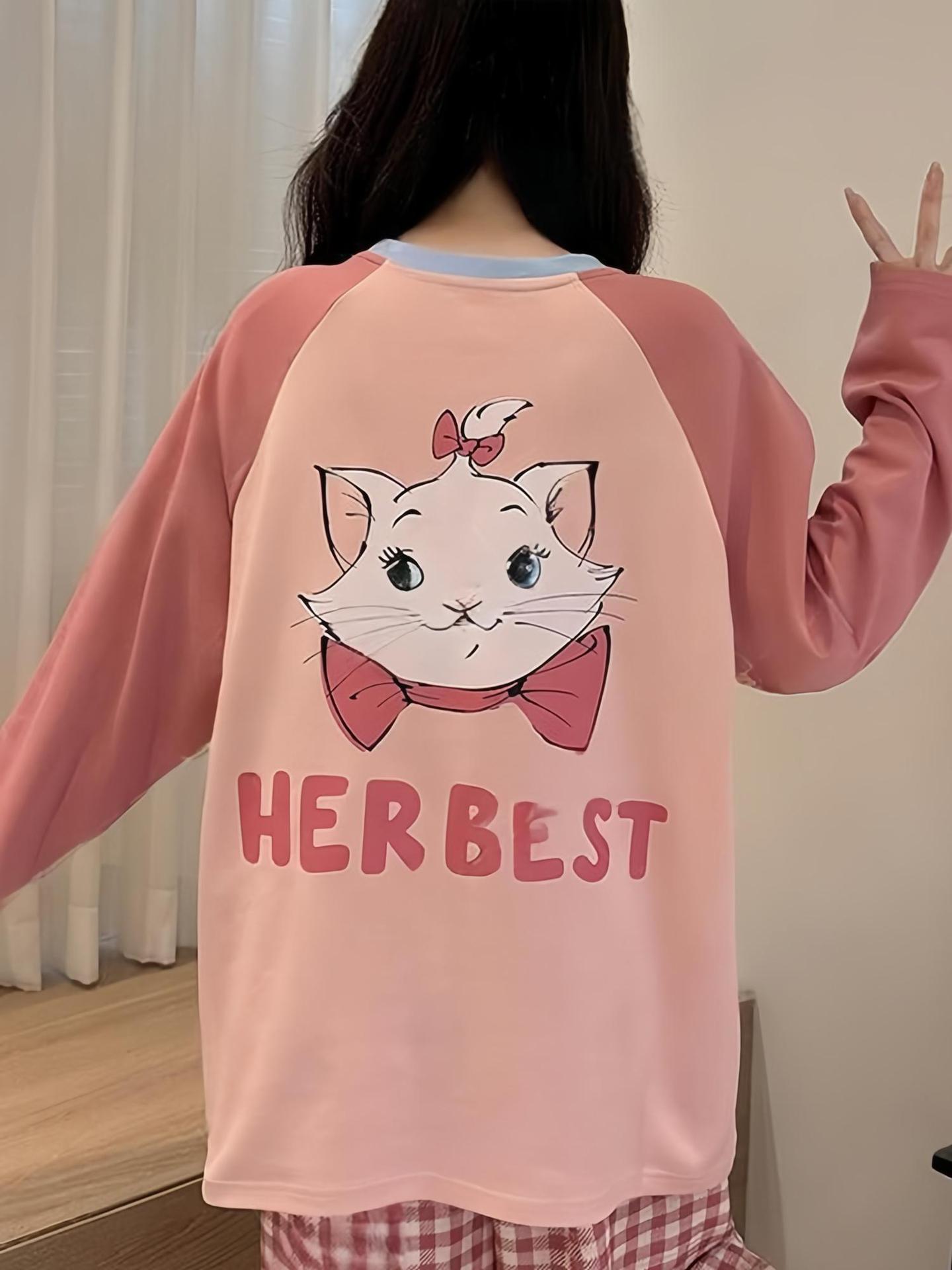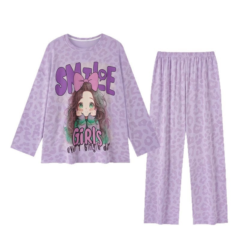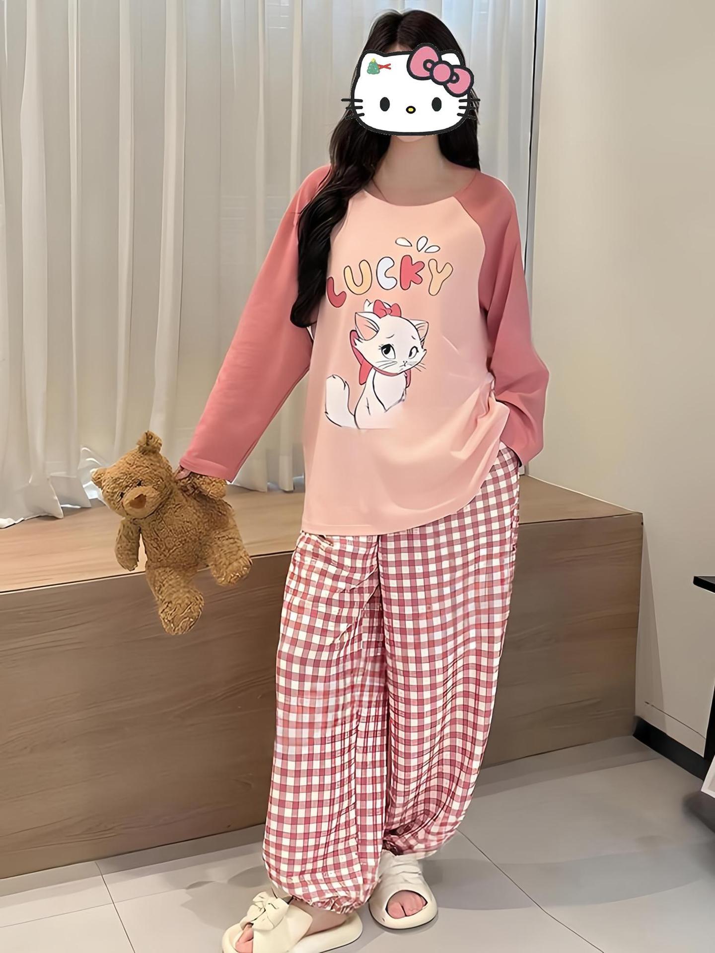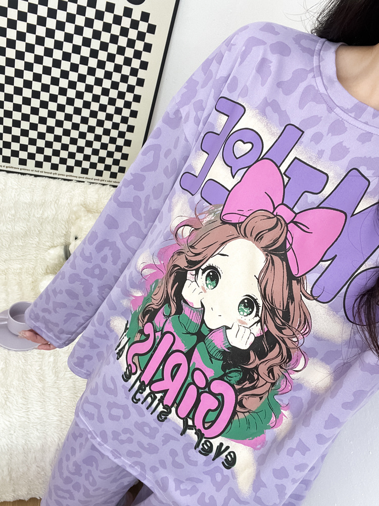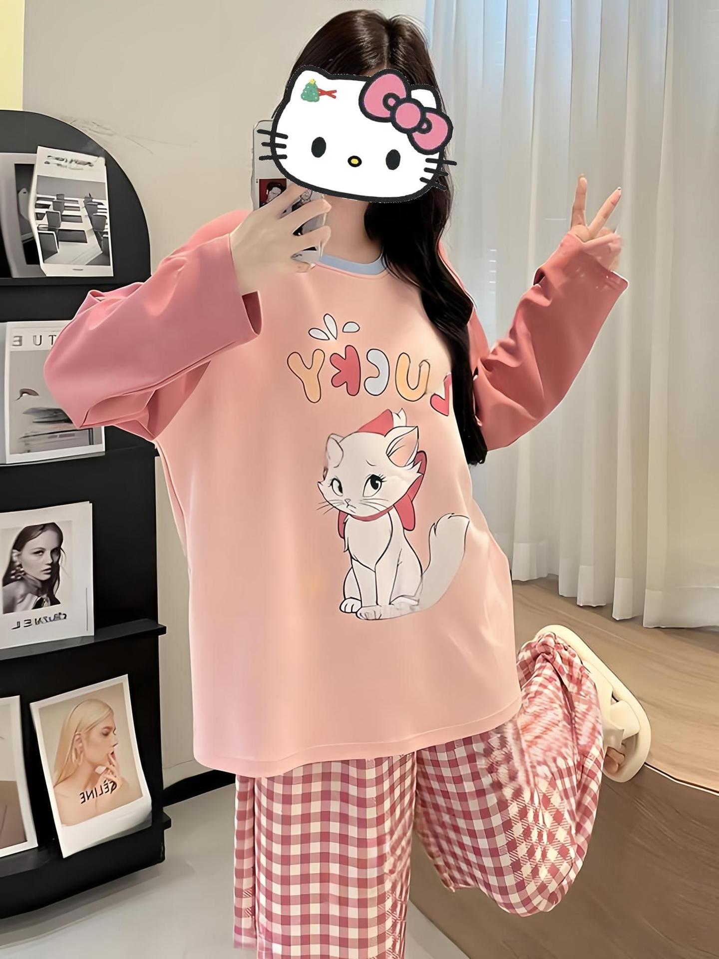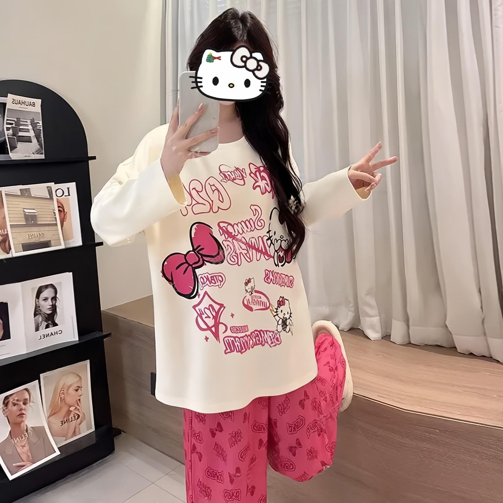 2025年新款自带胸垫一体睡衣女长袖卡通爆款可外穿家居服宽松韩版