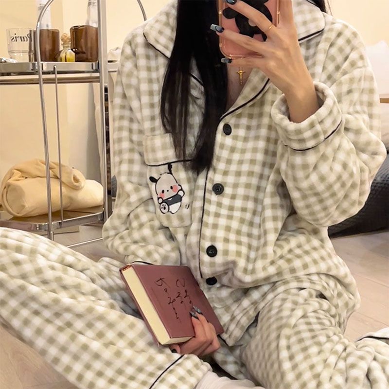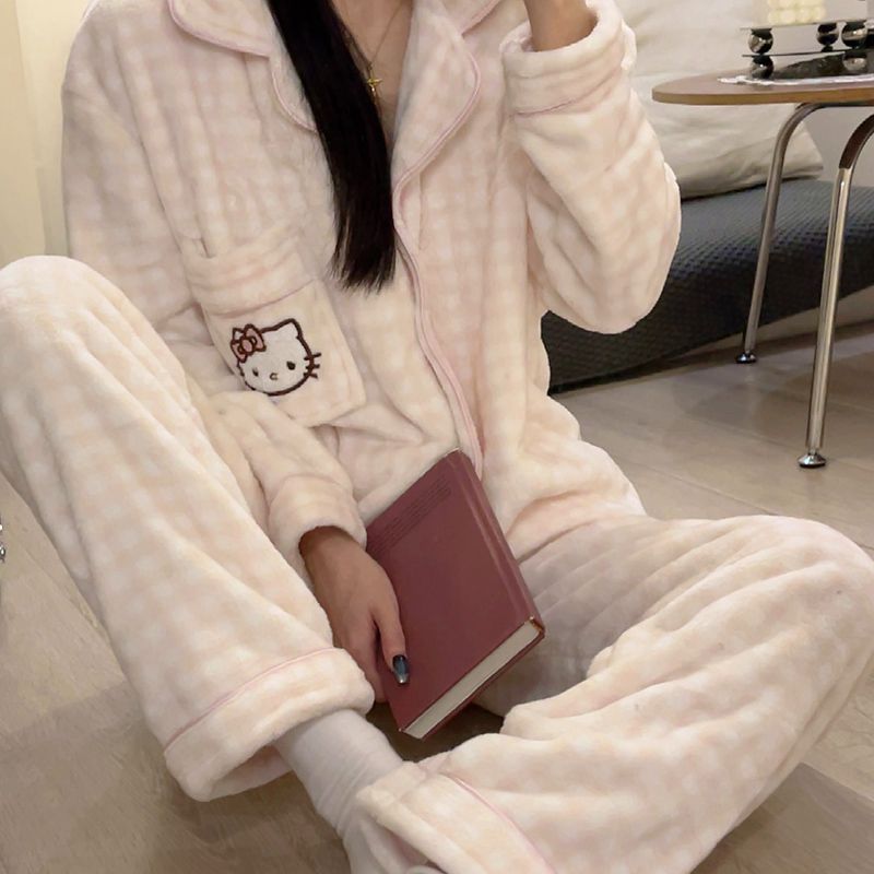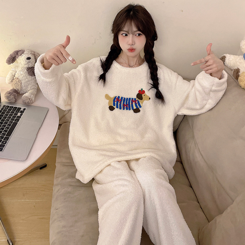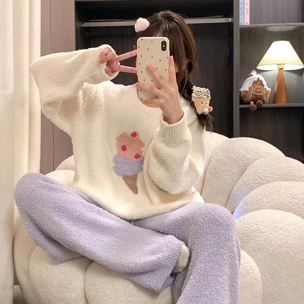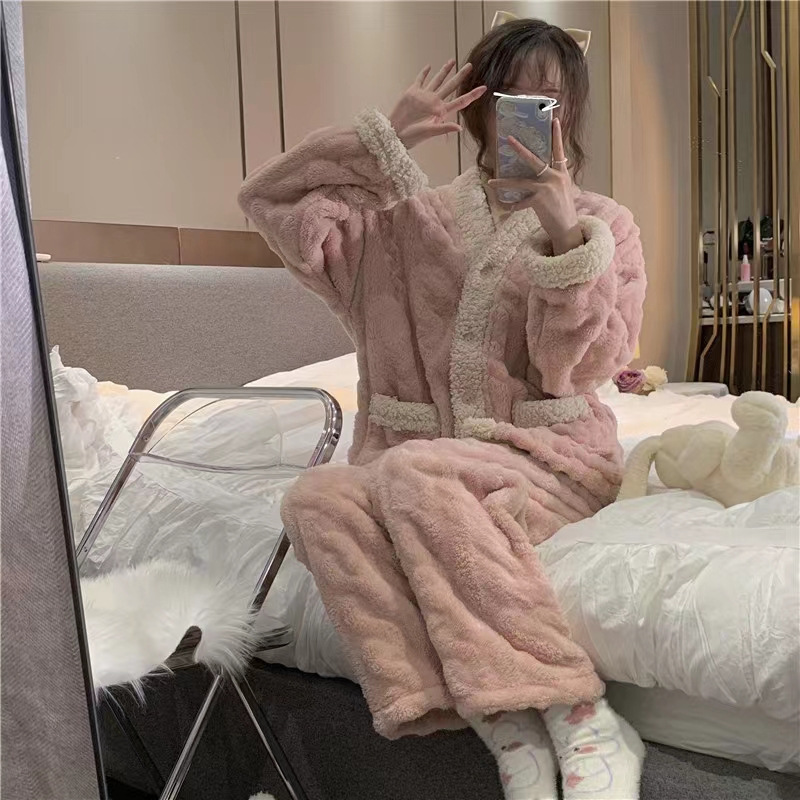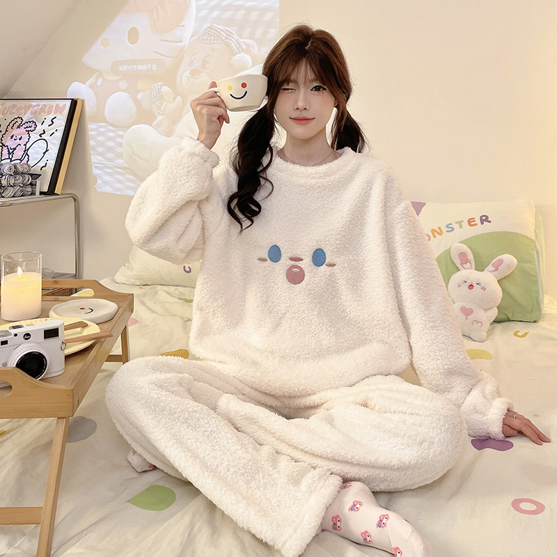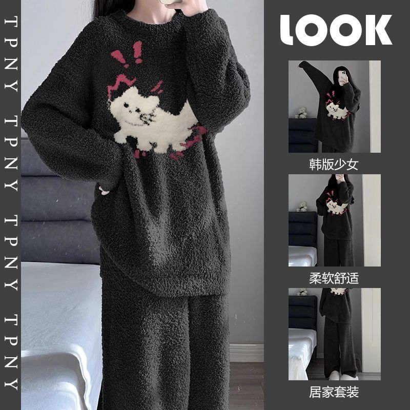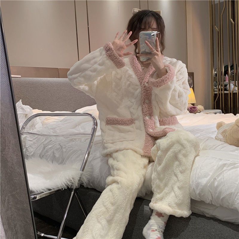 秋冬季新款珊瑚绒睡衣女加绒加厚保暖小香风冬天法兰绒家居服套装