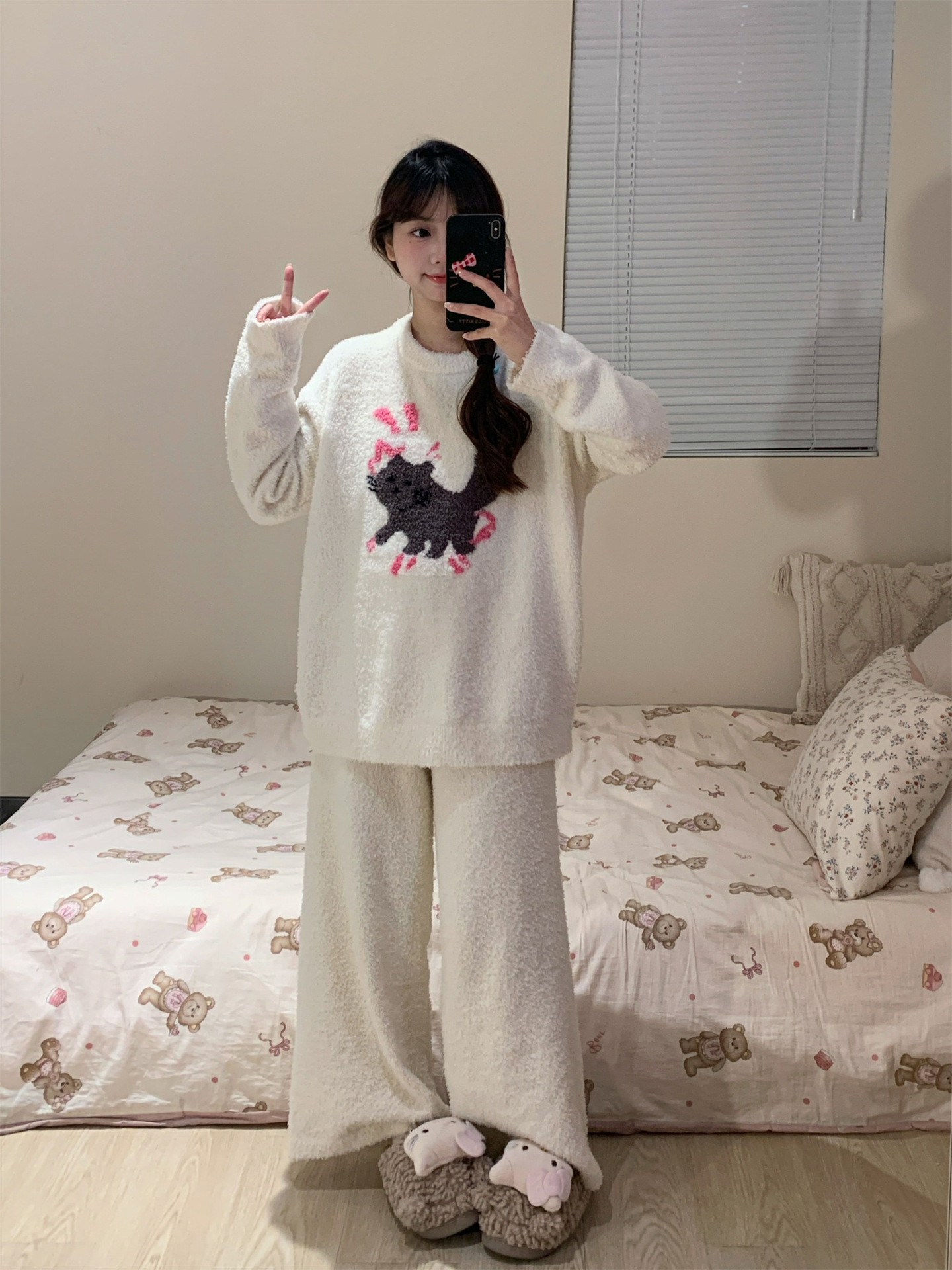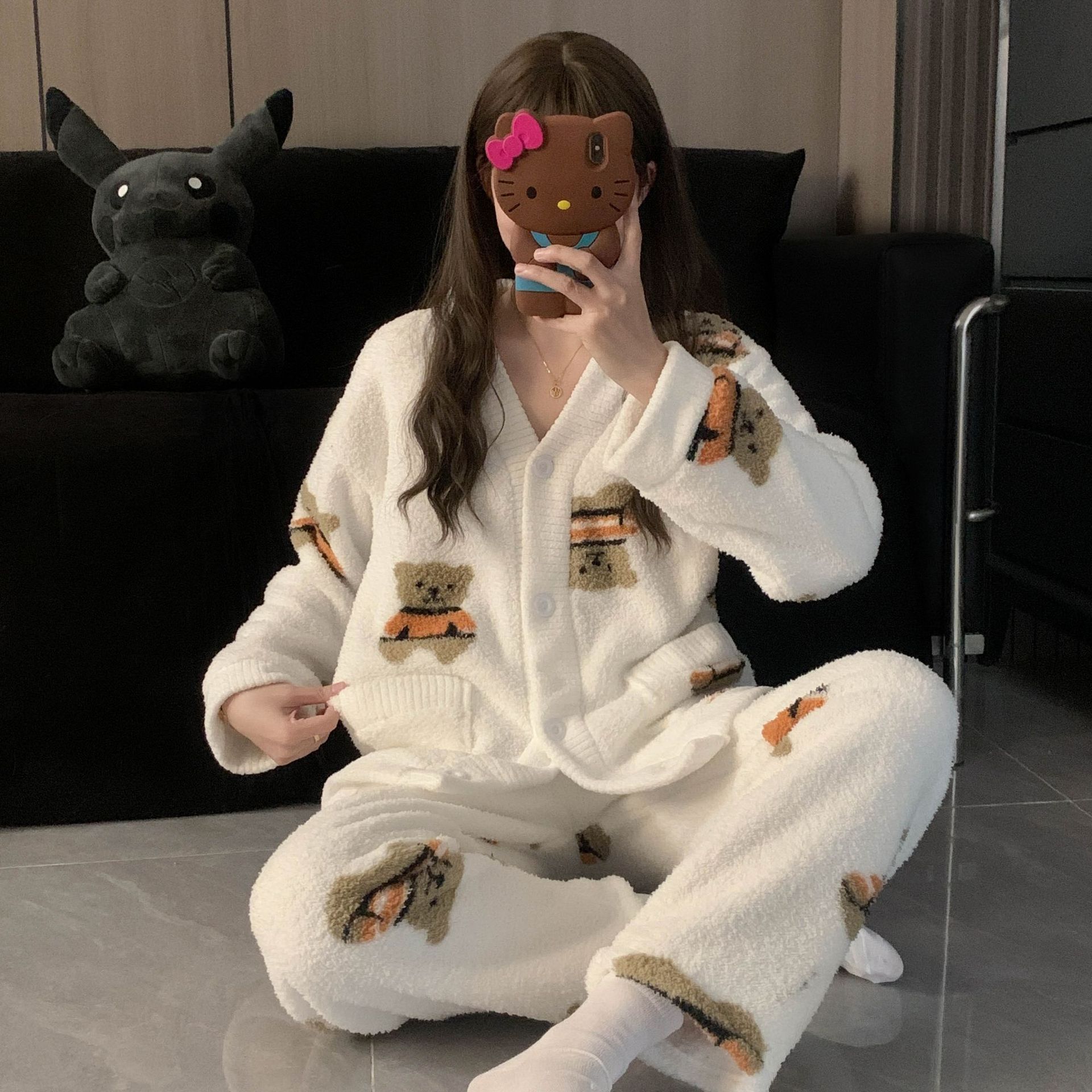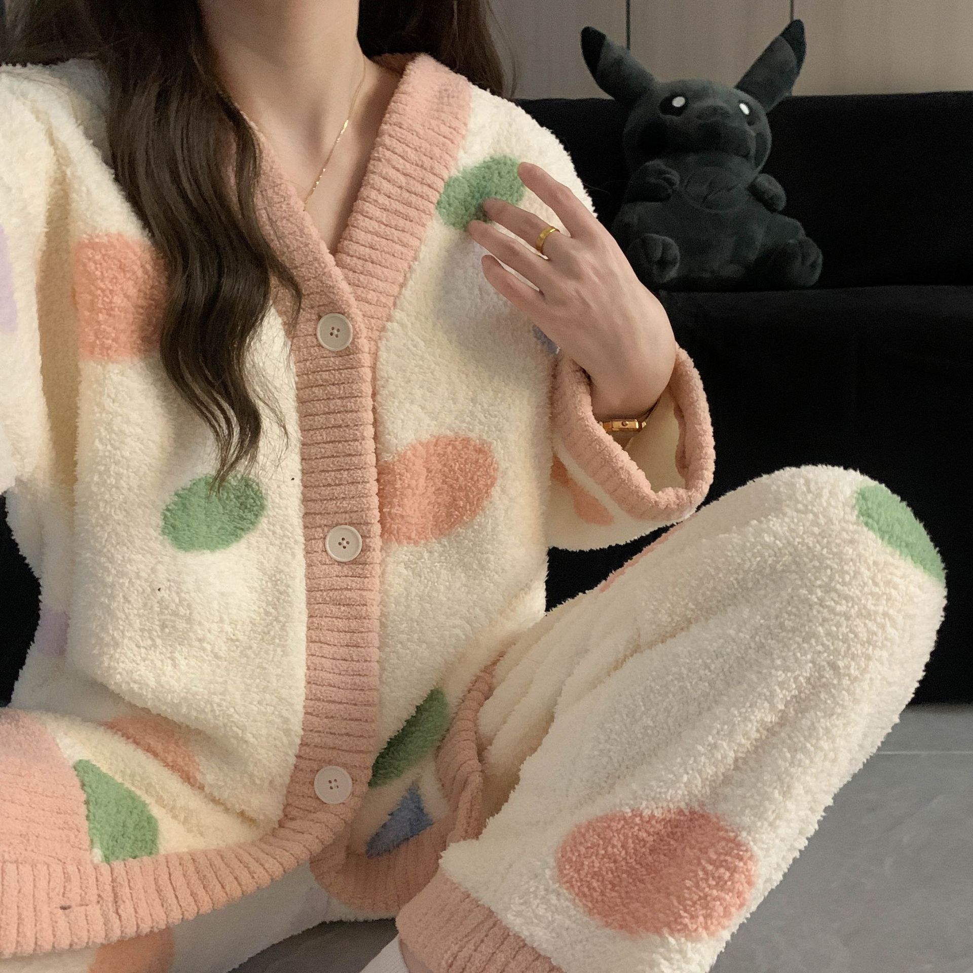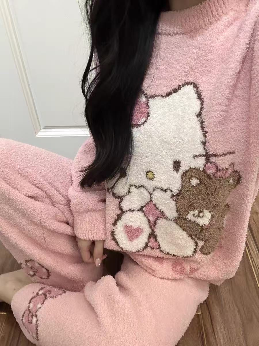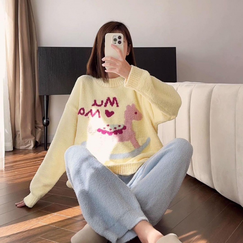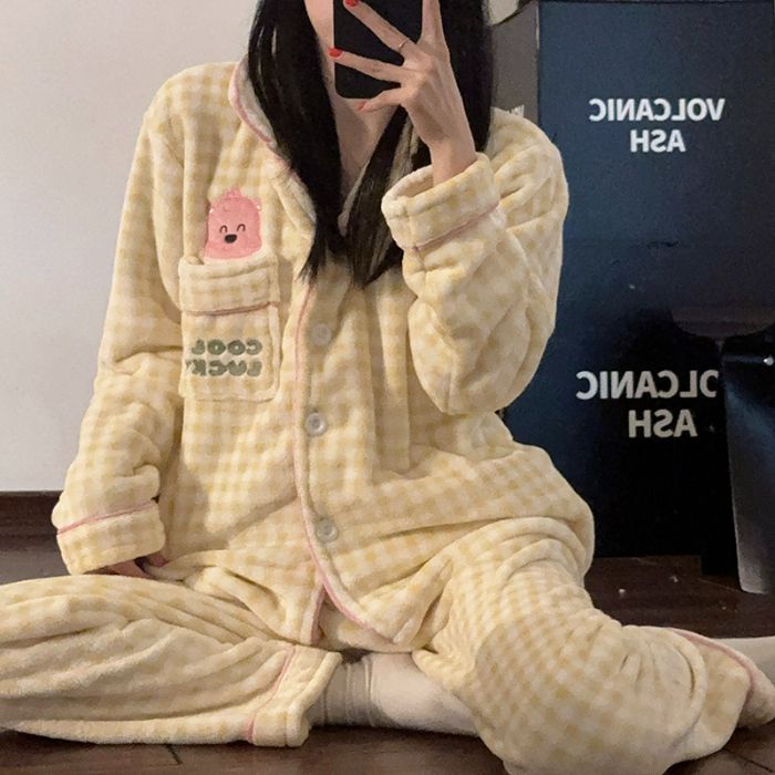 秋冬季新款珊瑚绒睡衣女加绒加厚保暖小香风冬天法兰绒家居服套装
