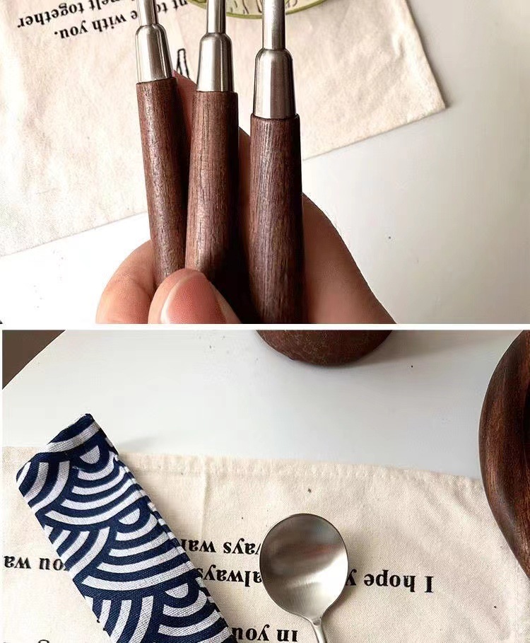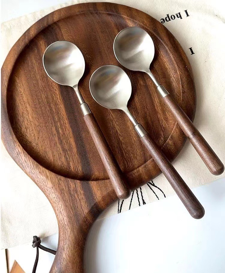 仿胡桃木柄简约质感不锈钢勺子叉子套装家用西餐餐勺高颜值餐具