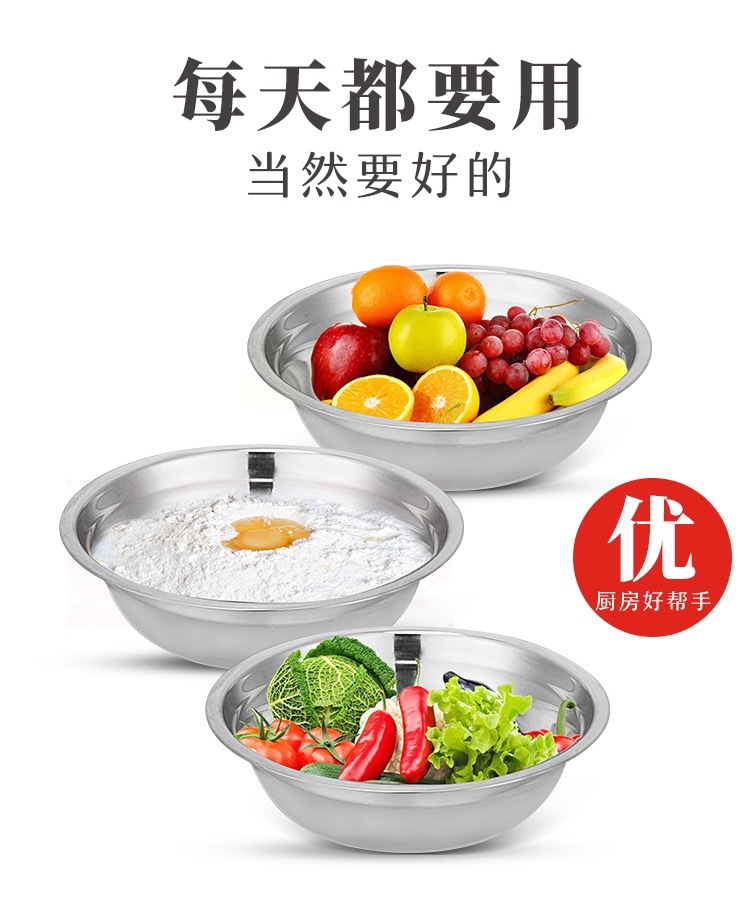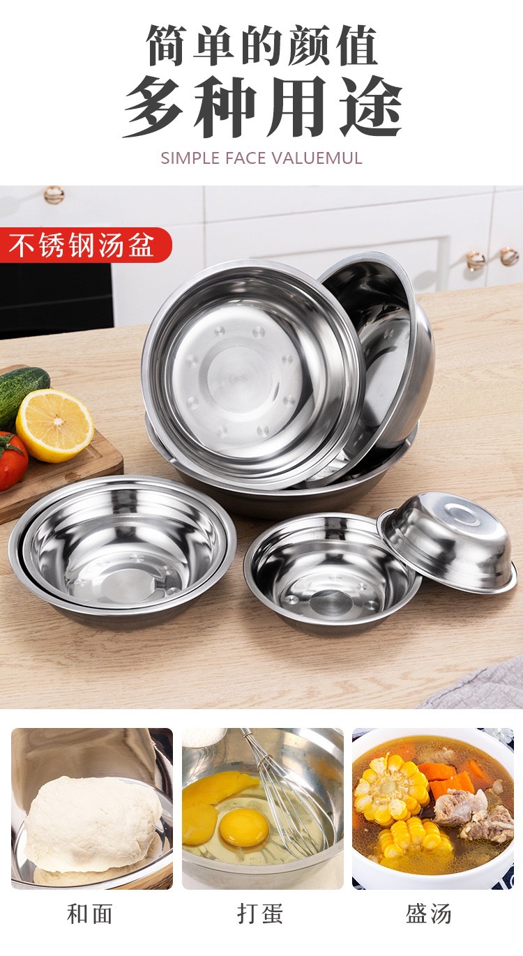 304不锈钢汤盆加厚汤碗饭碗带磁不锈铁盆子无磁面盆洗脸盆洗菜盆