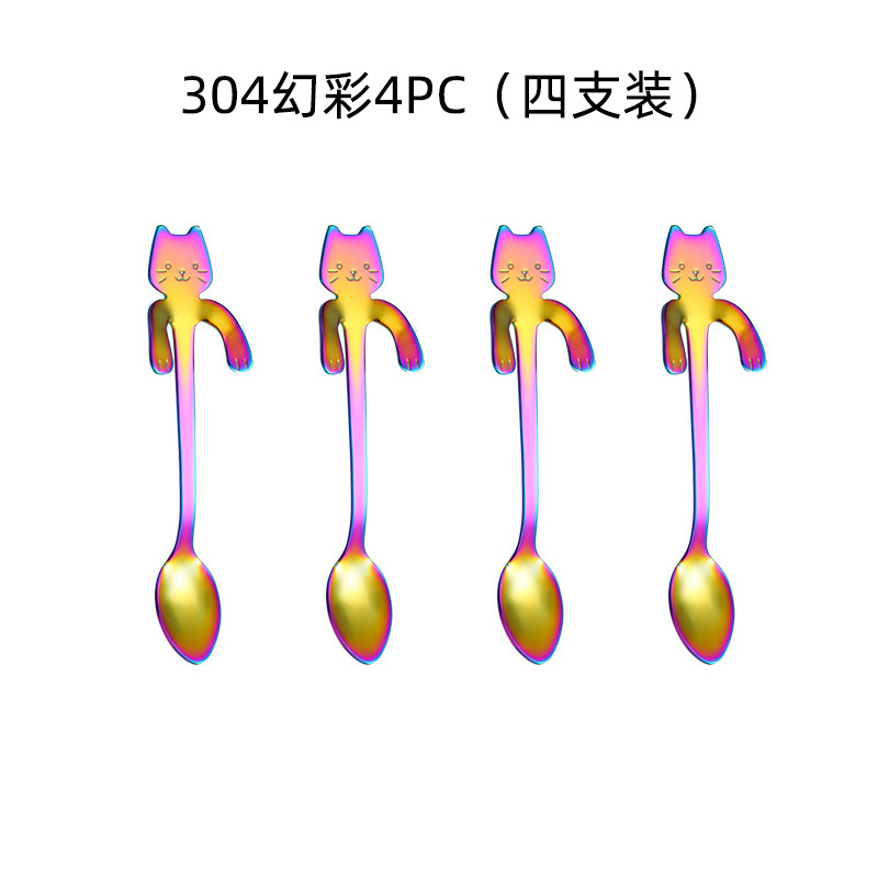 304不锈钢猫咪勺子创意卡通挂边勺可爱咖啡勺镀金搅拌勺加制logo