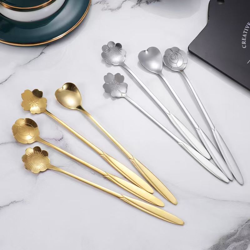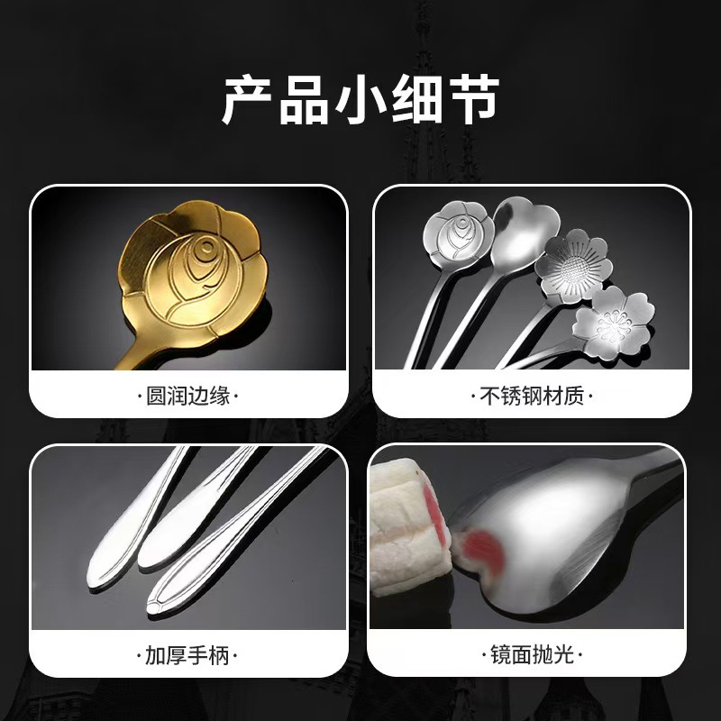 不锈钢樱花勺子高颜值咖啡搅拌勺甜品燕窝勺子婚礼玫瑰花伴手礼勺