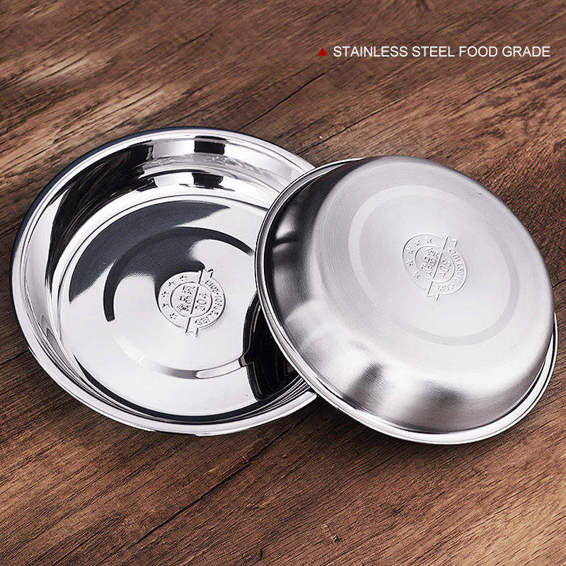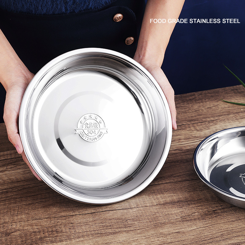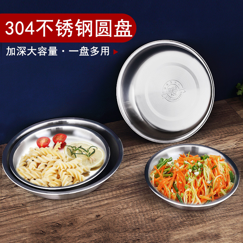 不锈钢盘304食品级盘子菜盘碟子家用饭店鱼盘烧烤盘深盘圆形批发
