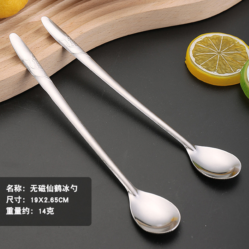 厂家直销批发网红无磁仙鹤冰匙咖啡匙奶茶匙19*2.65cm