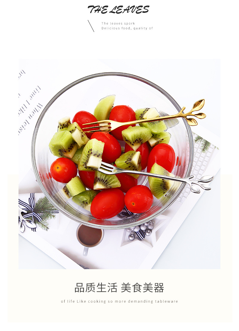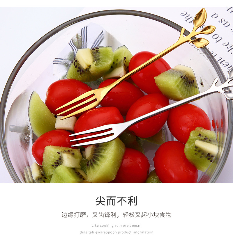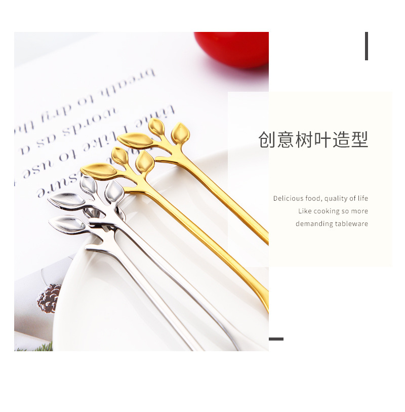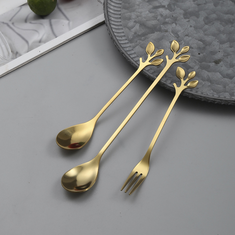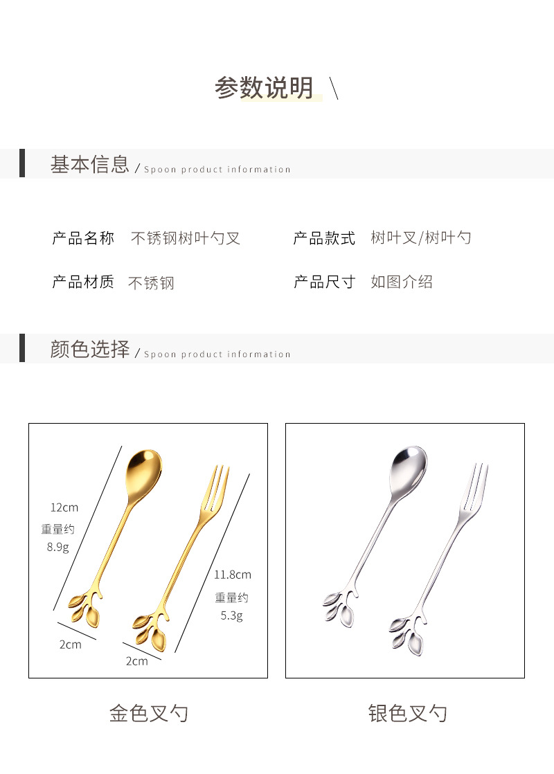 不锈钢创意高颜值树叶勺叉调羹咖啡勺家用餐勺搅拌勺甜品叉子批发