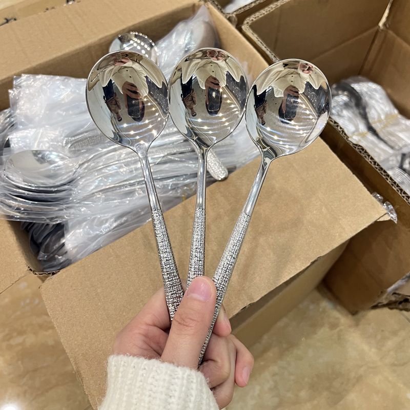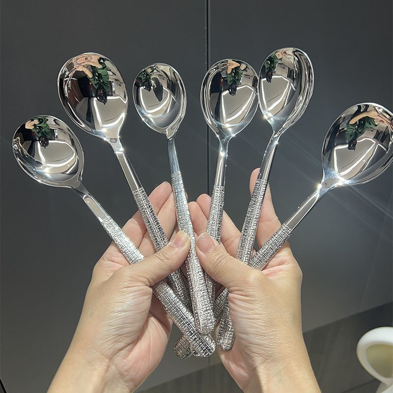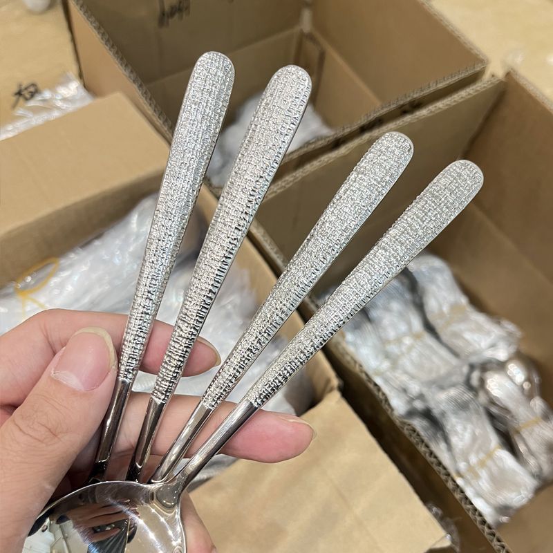 新款高颜值锤纹18/10不锈钢西餐勺主餐更吃饭勺子调羹汤勺饭勺