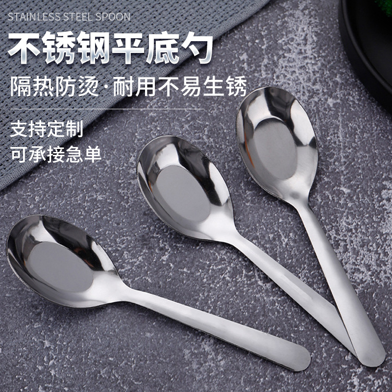 现货不锈钢汤勺汤匙调羹吃饭儿童餐勺家用加厚铁勺子平底勺子批发