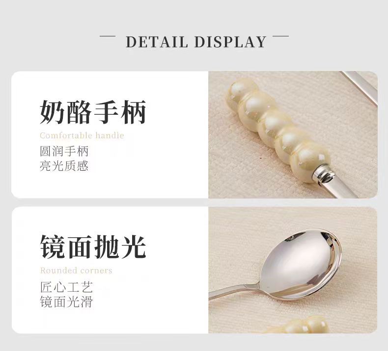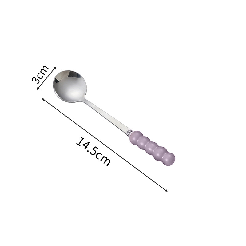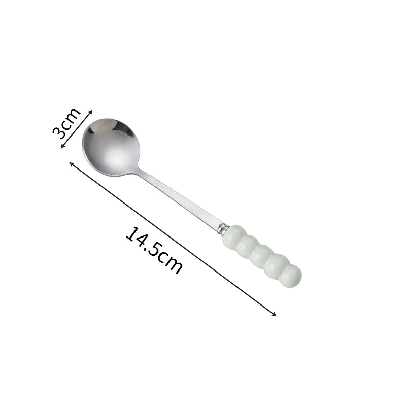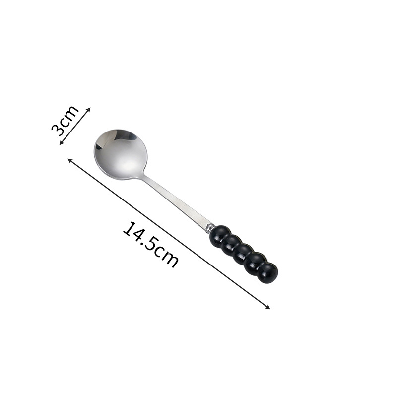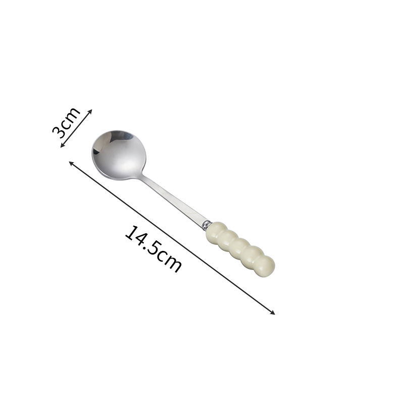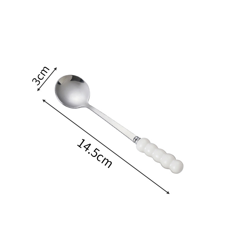 不锈钢勺子高颜值网红勺塑料珍珠手柄家用儿童吃饭勺甜品勺咖啡勺