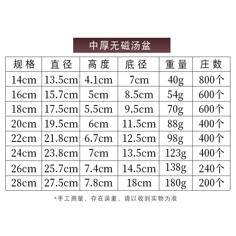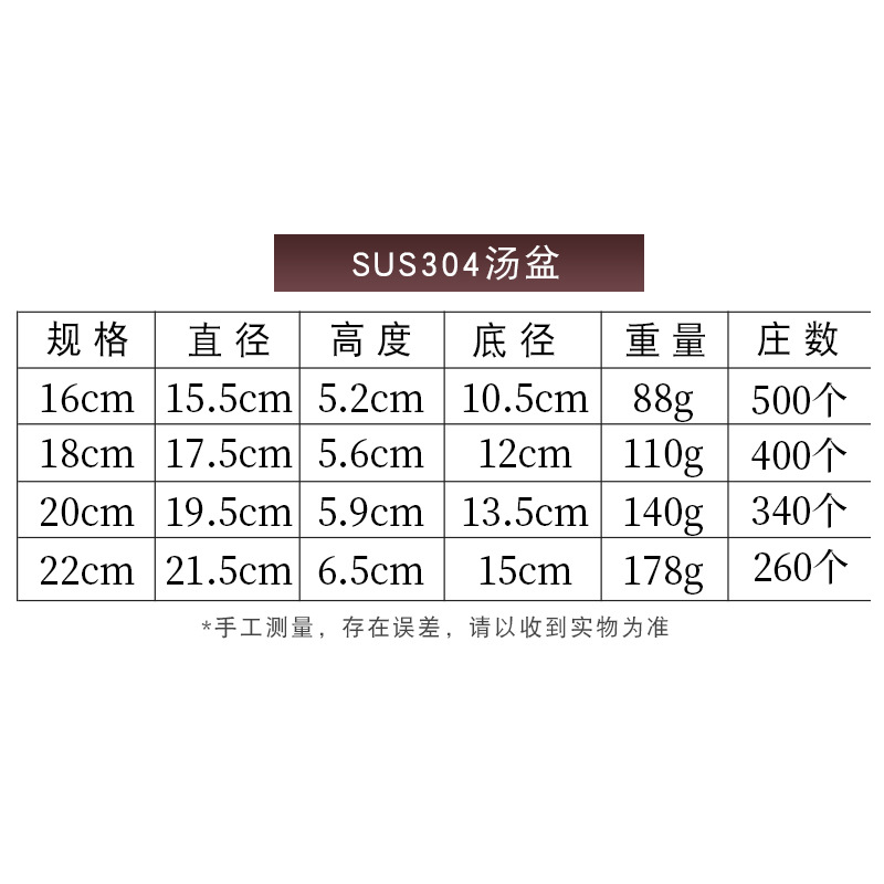 不锈钢304汤盆 加厚汤碗圆型小号铁盆家商用食堂工地饭店餐具汤碗