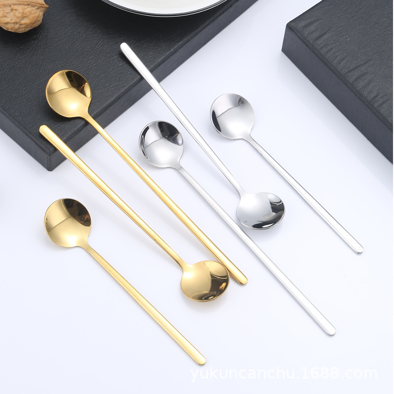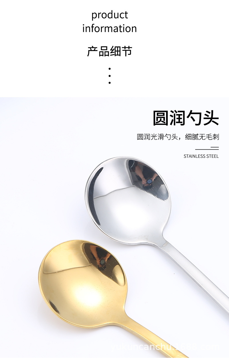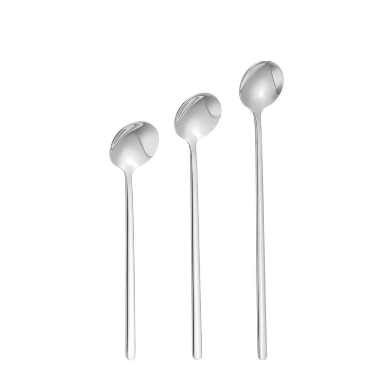 不锈钢圆头勺子家用餐厅吃饭长柄调羹汤勺咖啡勺搅拌勺甜品勺批发