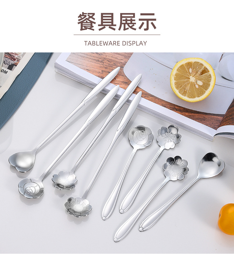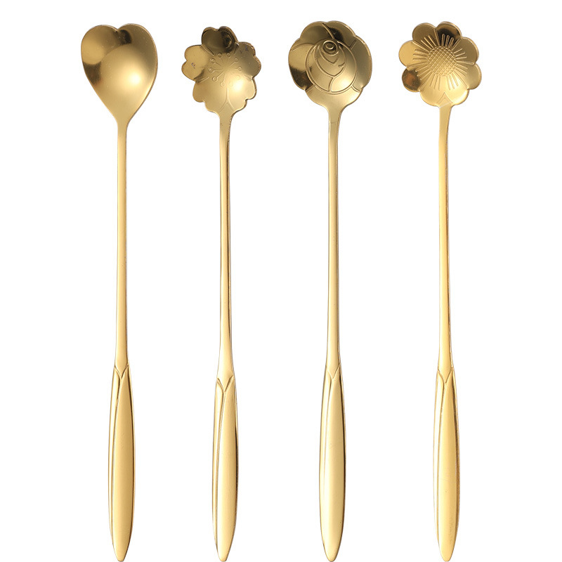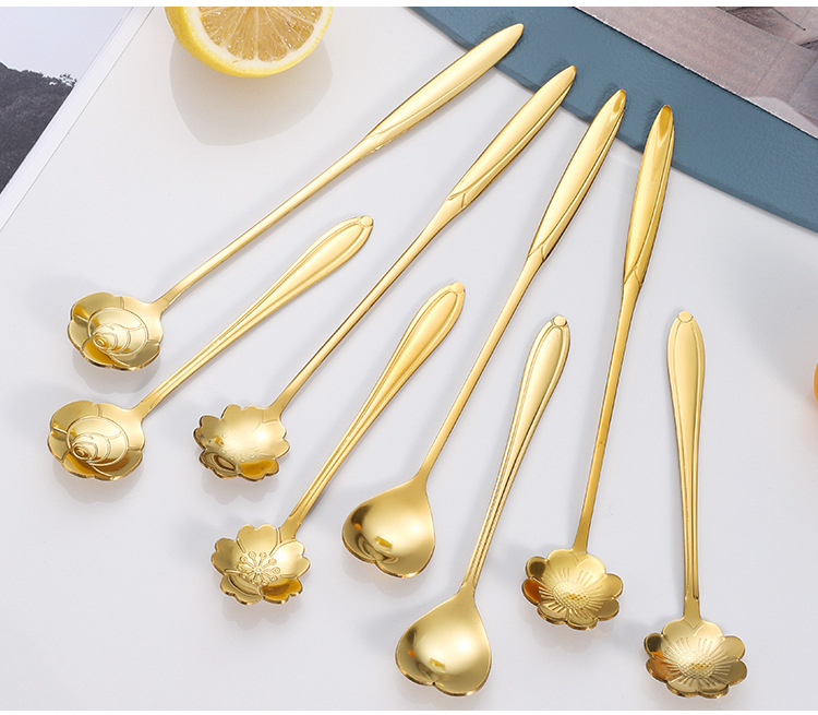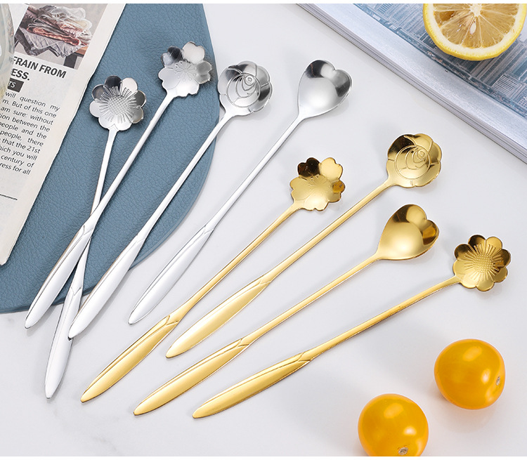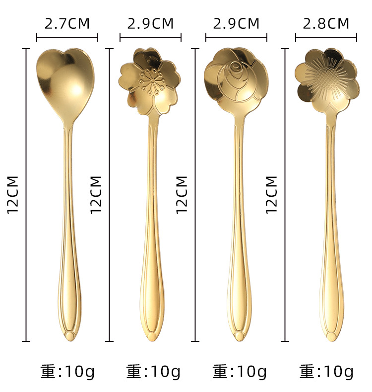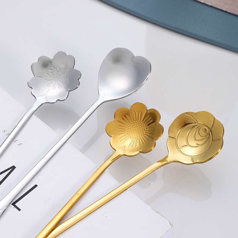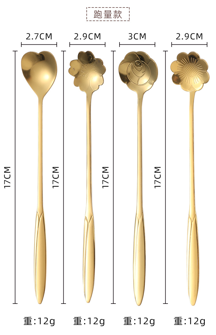 网红金色不锈钢樱花勺长柄搅拌勺日式玫瑰爱心花朵花瓣勺咖啡勺子