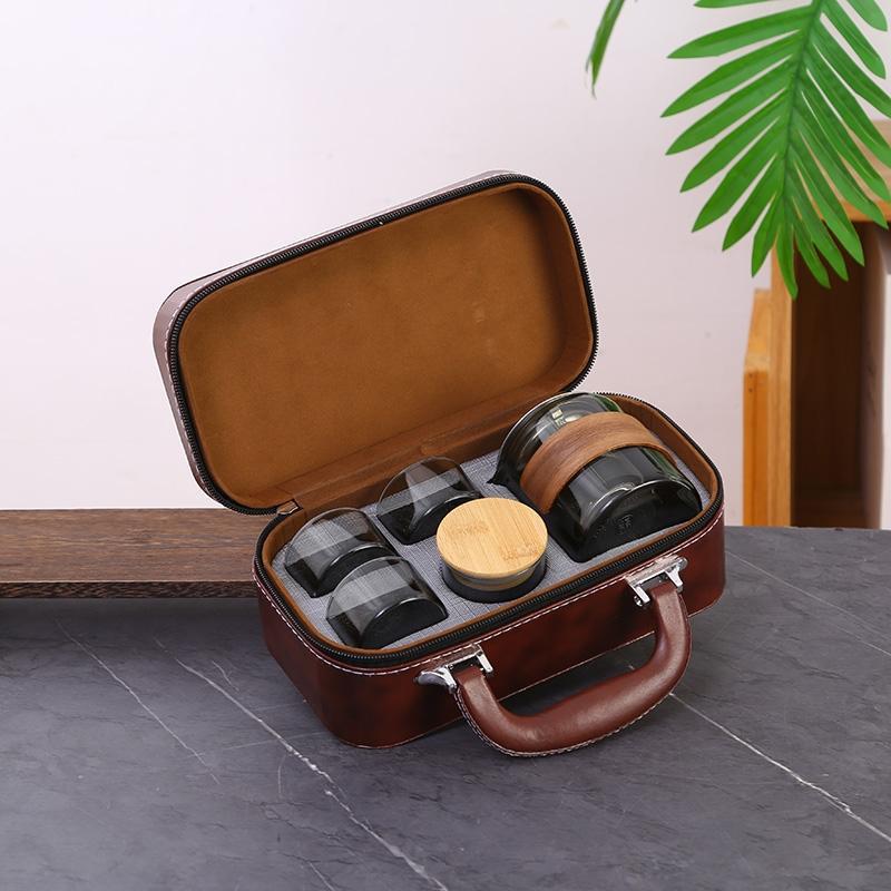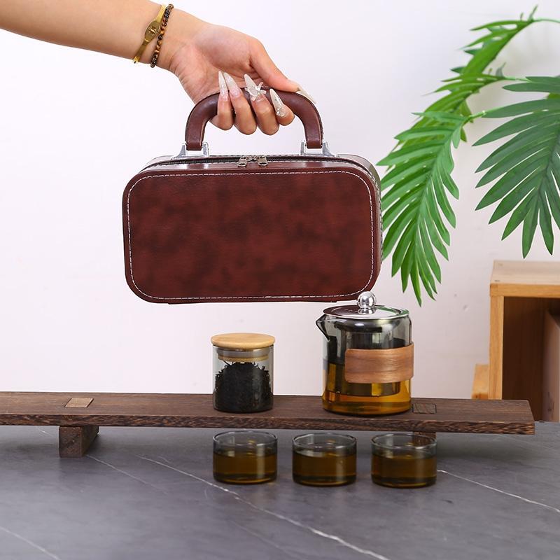 茶具套装小棕包旅行茶具玻璃茶壶茶杯茶叶罐套装 务办公礼品批发
