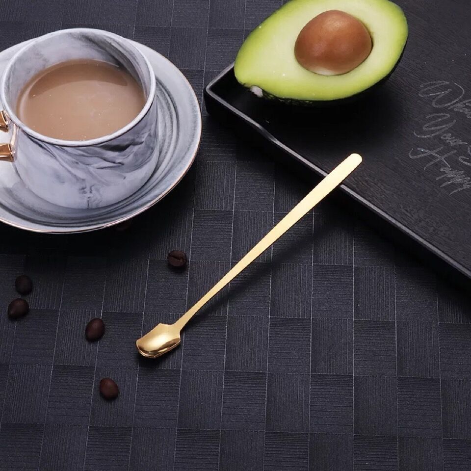 不锈钢咖啡勺调味勺 长柄冰勺搅拌勺方头勺 陶瓷杯勺子甜品勺