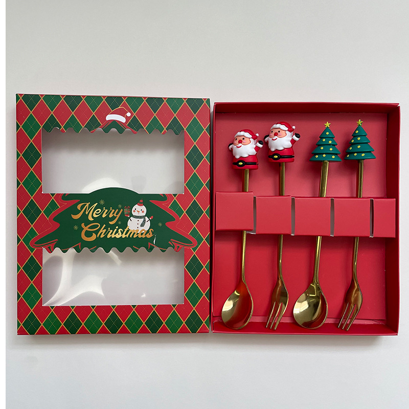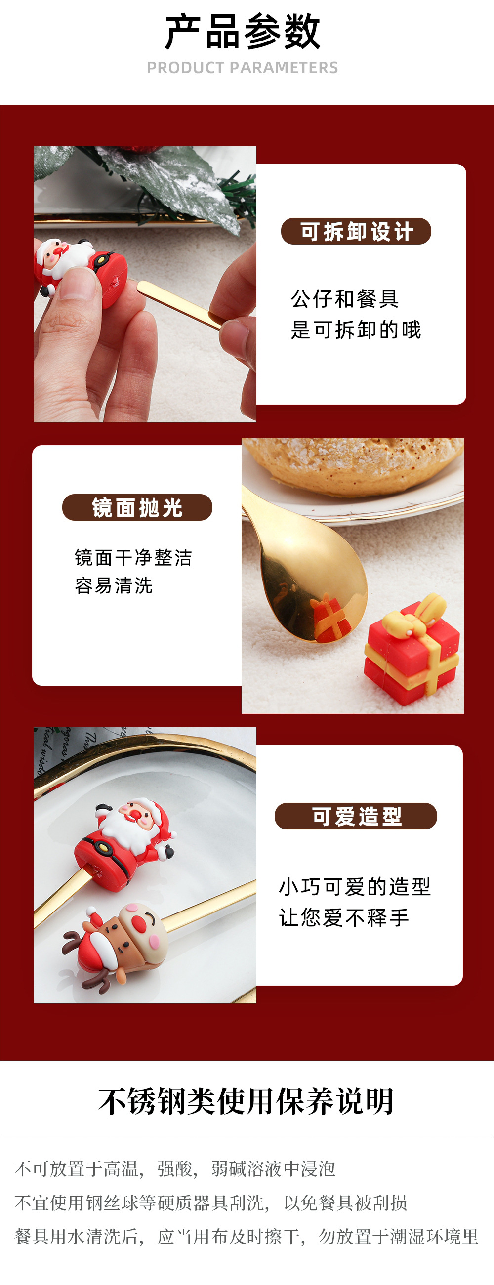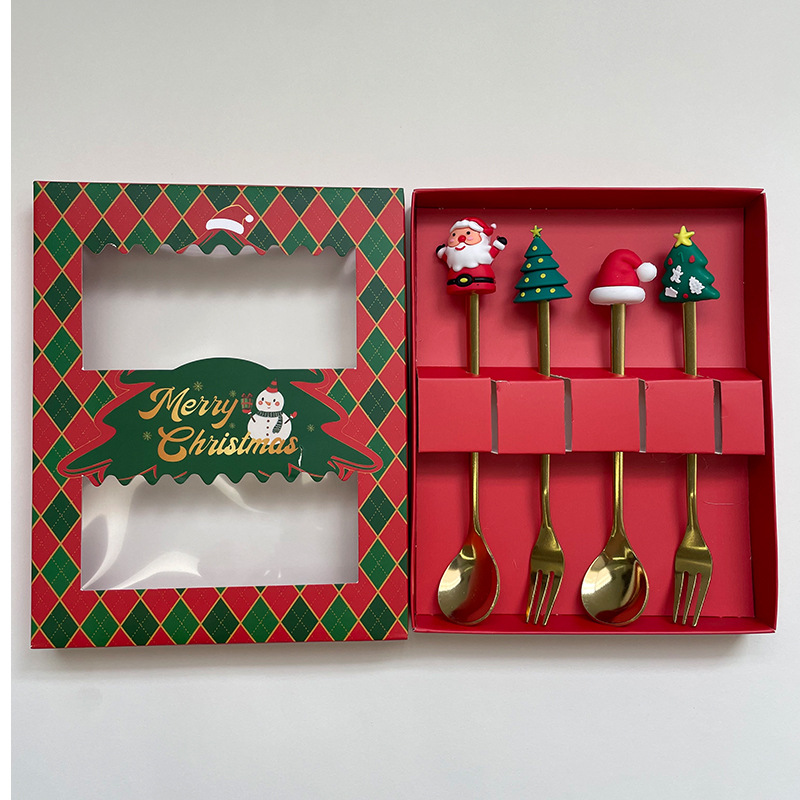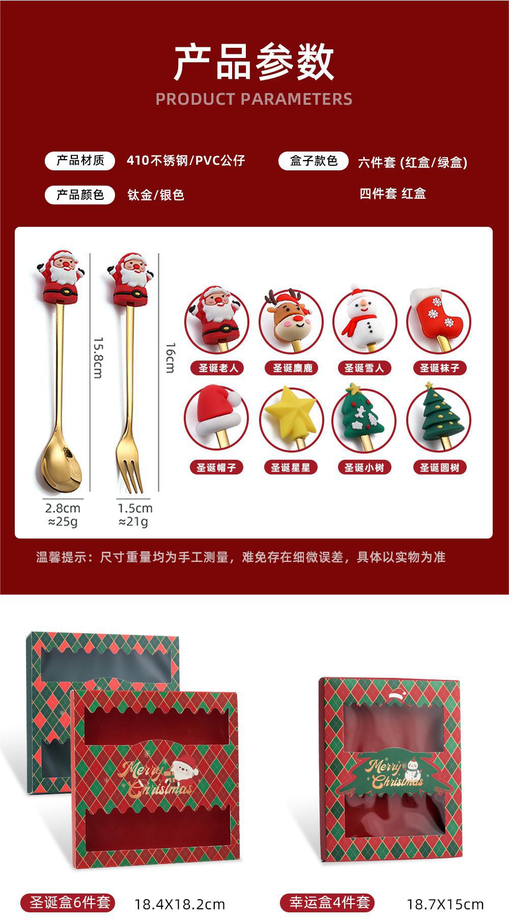 跨境可爱圣诞勺子套装 咖啡勺创意搅拌勺叉圣诞礼盒餐具 甜品叉