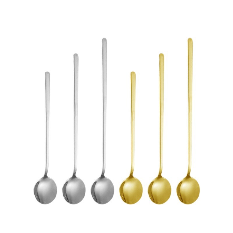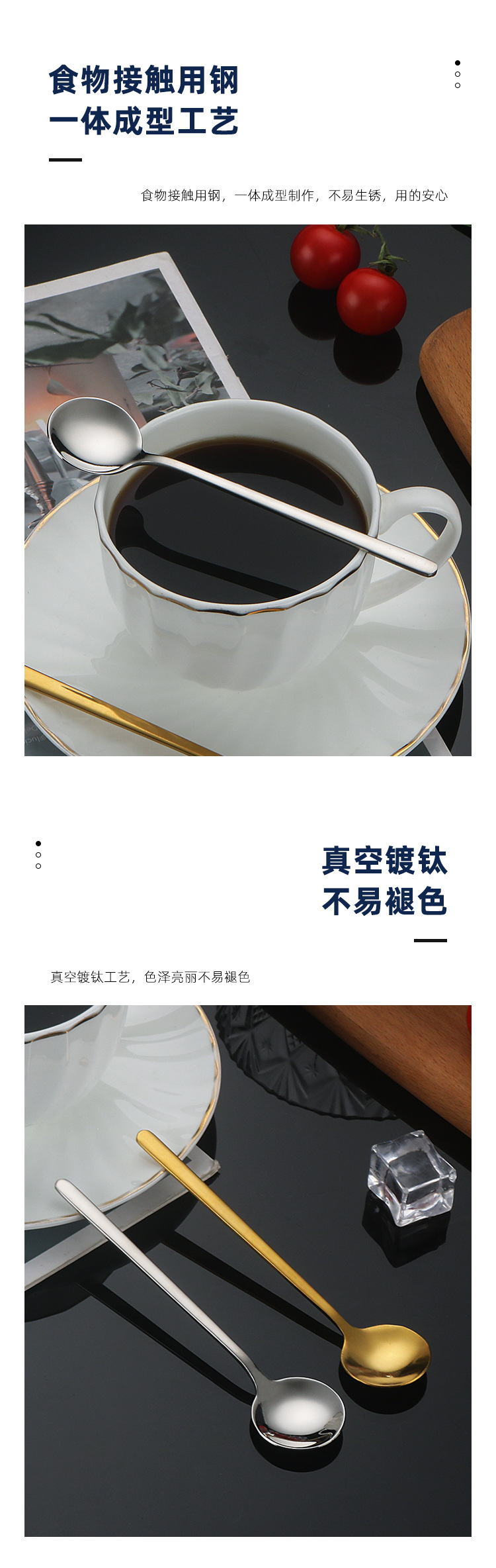不锈钢长柄小圆勺创意咖啡勺燕窝礼品勺家用圆勺甜品奶茶搅拌冰勺