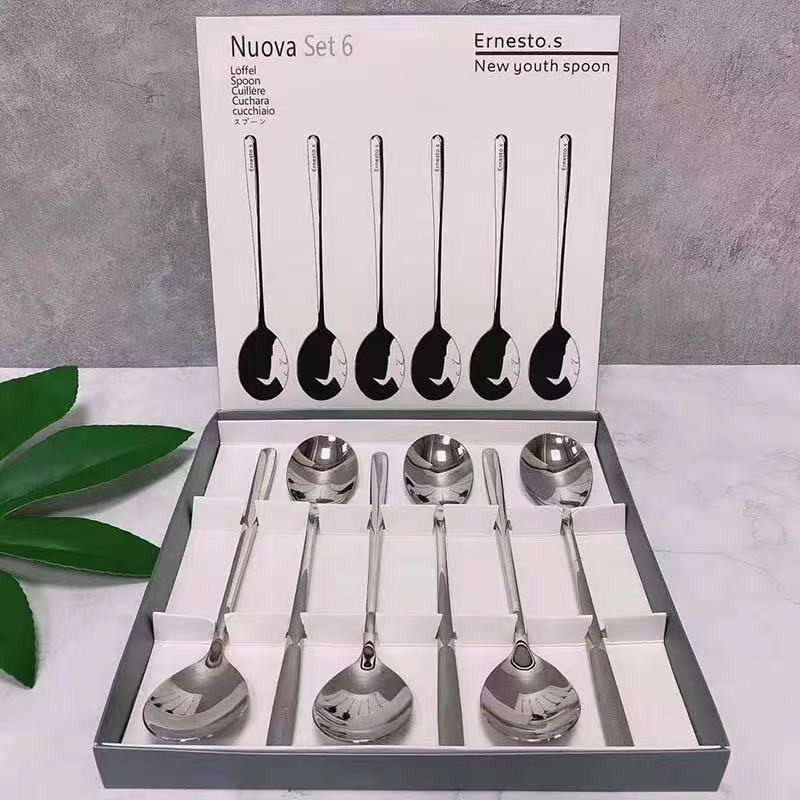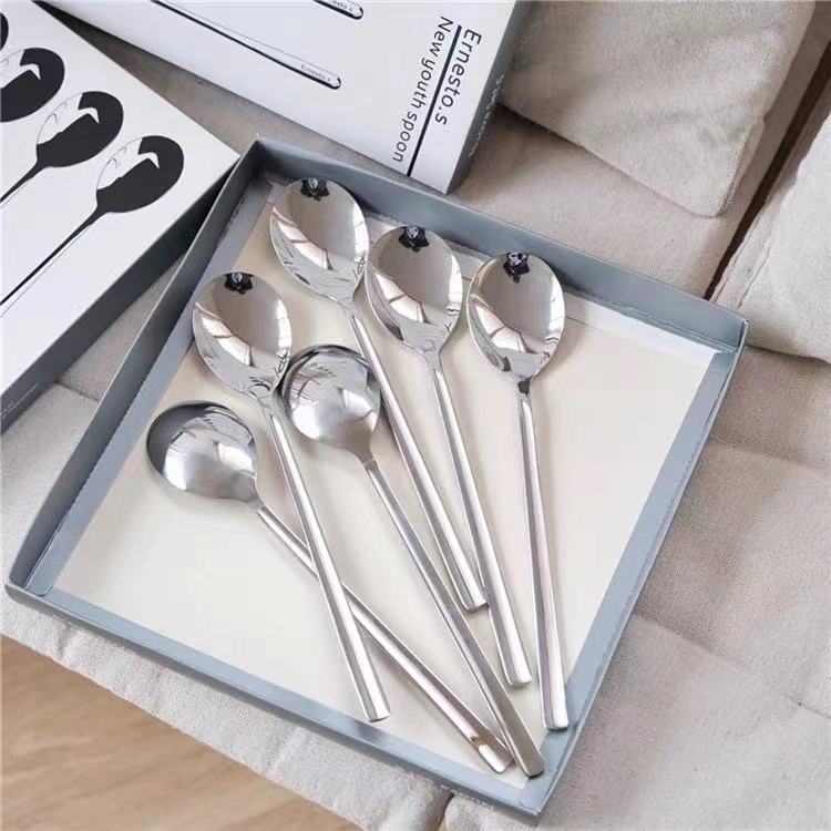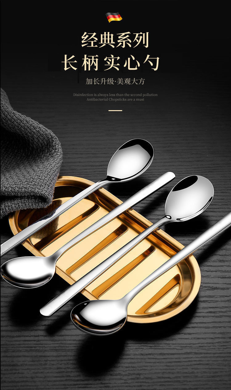 不锈钢勺子高颜值长柄咖啡勺家用搅拌勺西瓜勺甜品勺调羹餐具批发