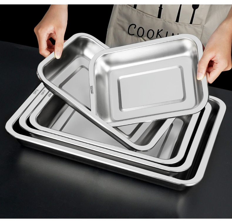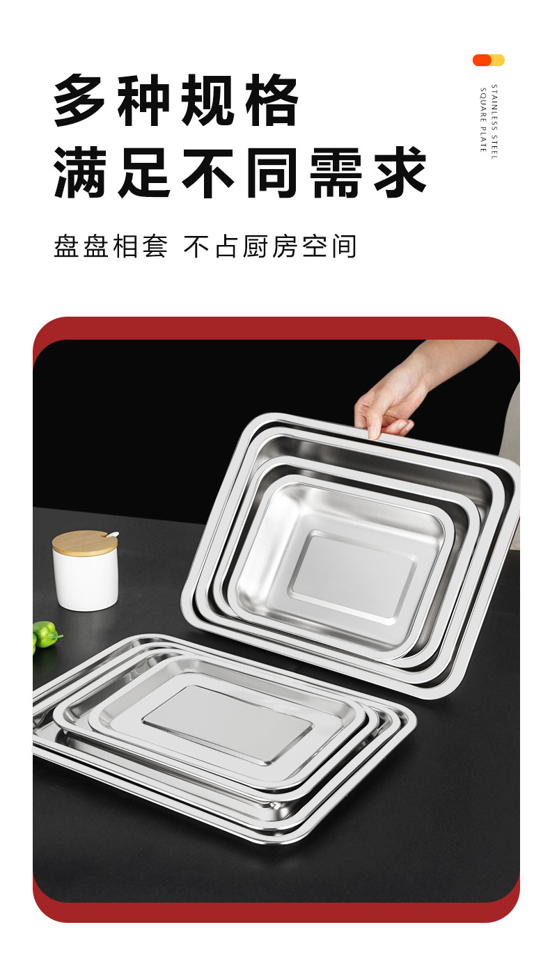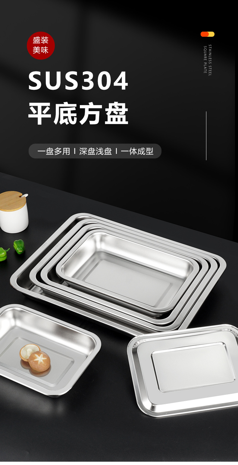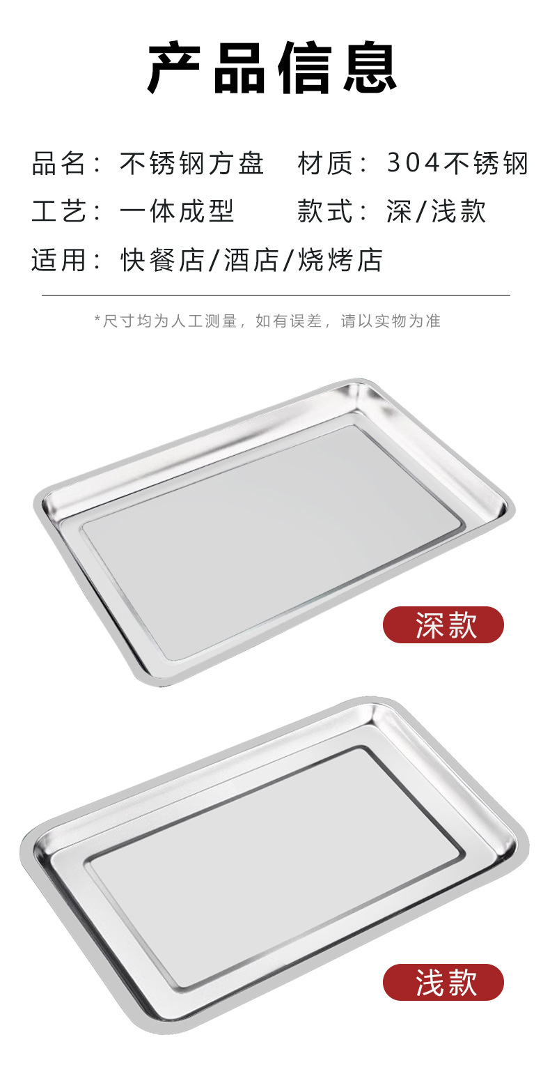304不锈钢方盘 深浅蒸饭盘加厚烧烤盘烤鱼盘冲孔茶池方盘方形托盘