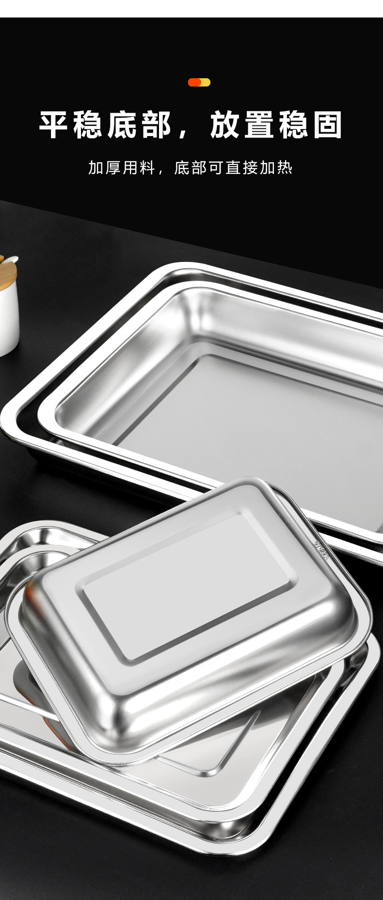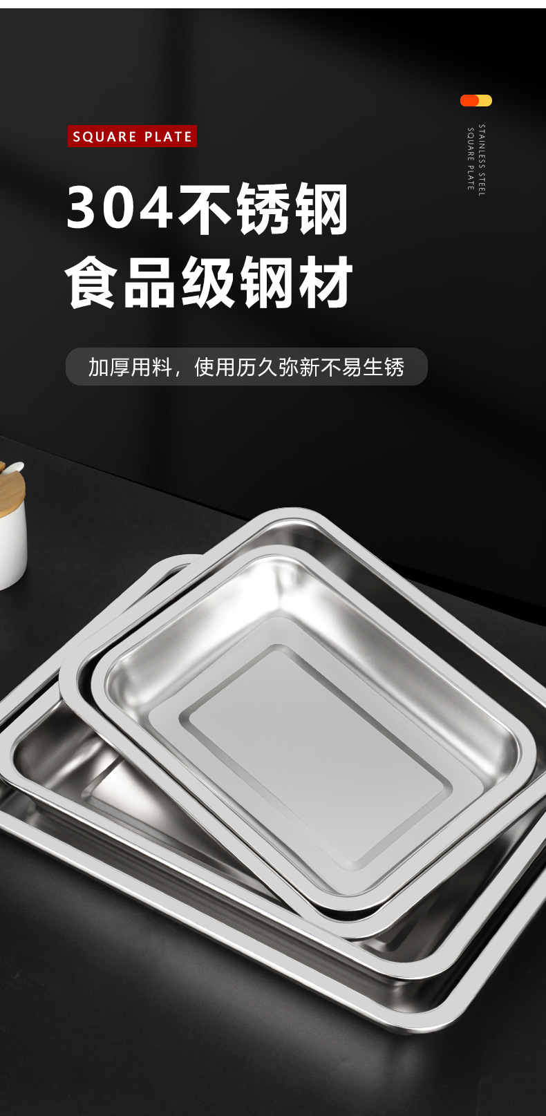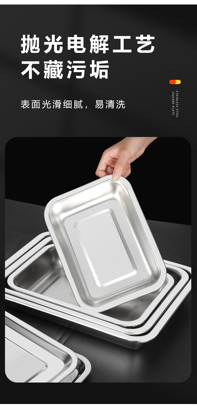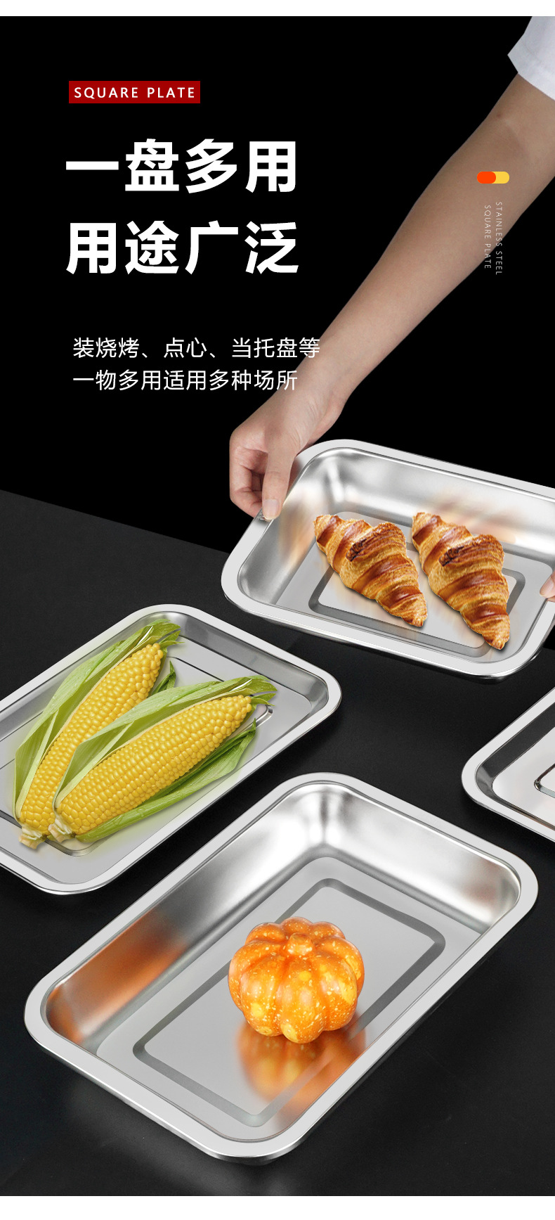 304不锈钢方盘 深浅蒸饭盘加厚烧烤盘烤鱼盘冲孔茶池方盘方形托盘