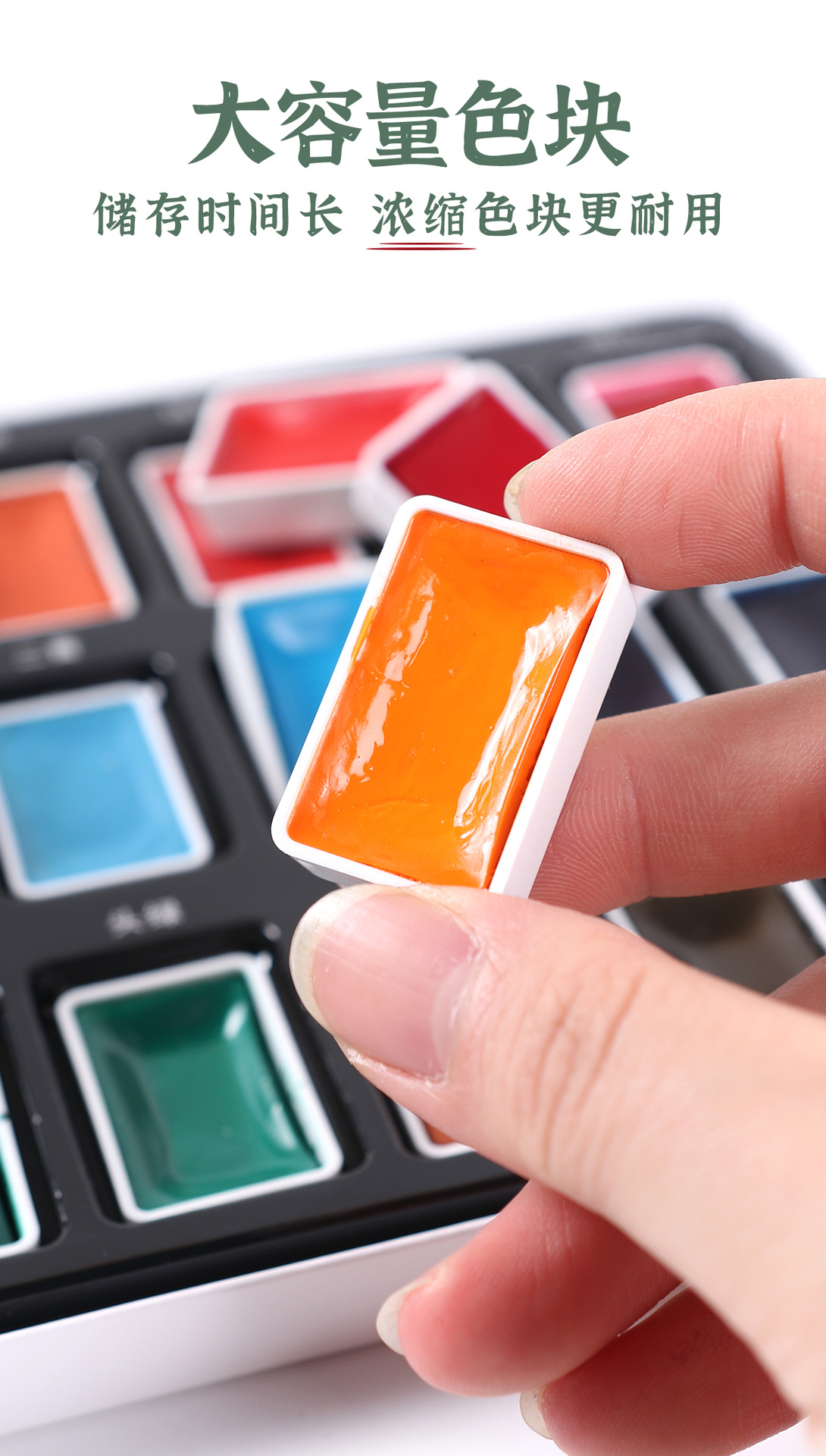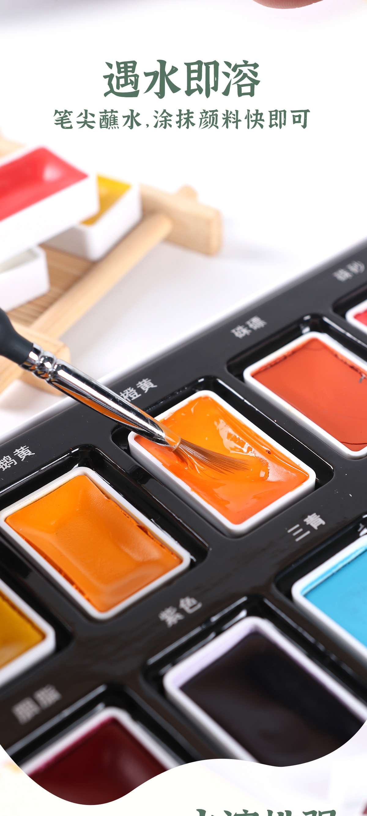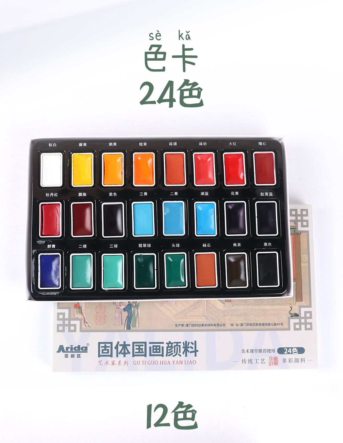 亚利达固体国画颜料12色24色6色中国画颜料水墨画初学者套装