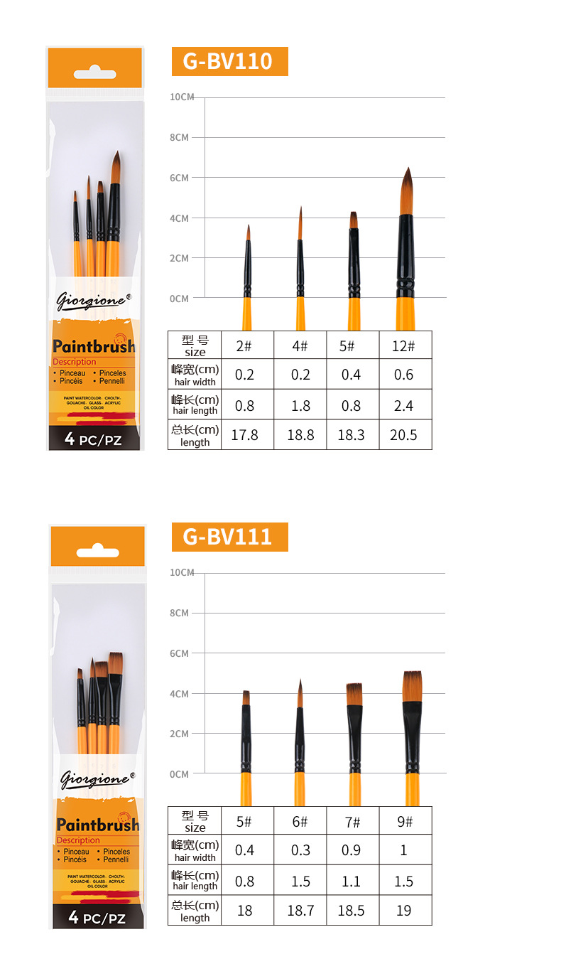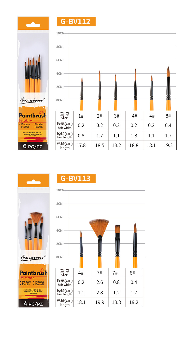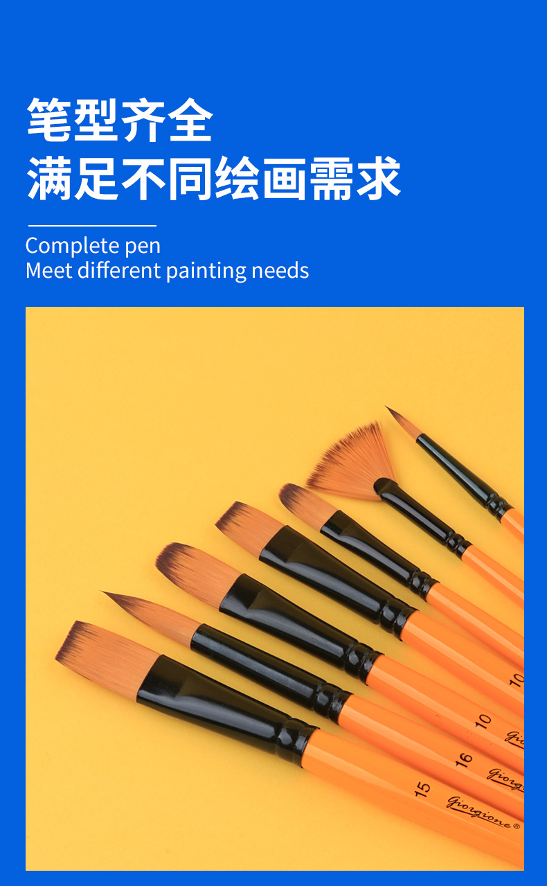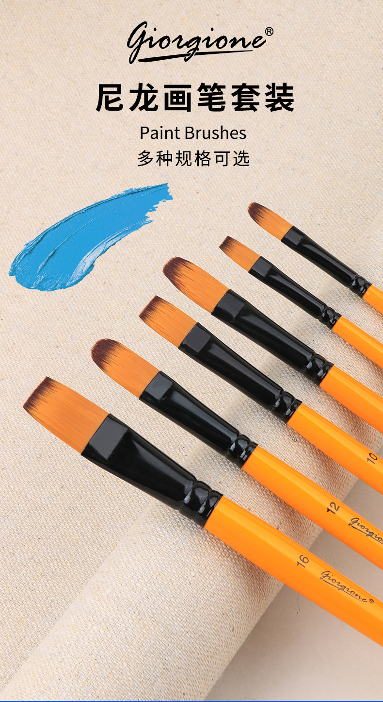 乔尔乔内尼龙画笔套装油画水粉水彩丙烯颜料笔刷绘画平头画材外贸