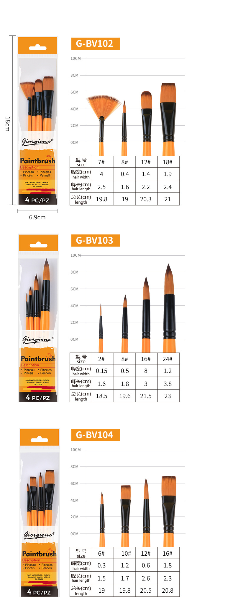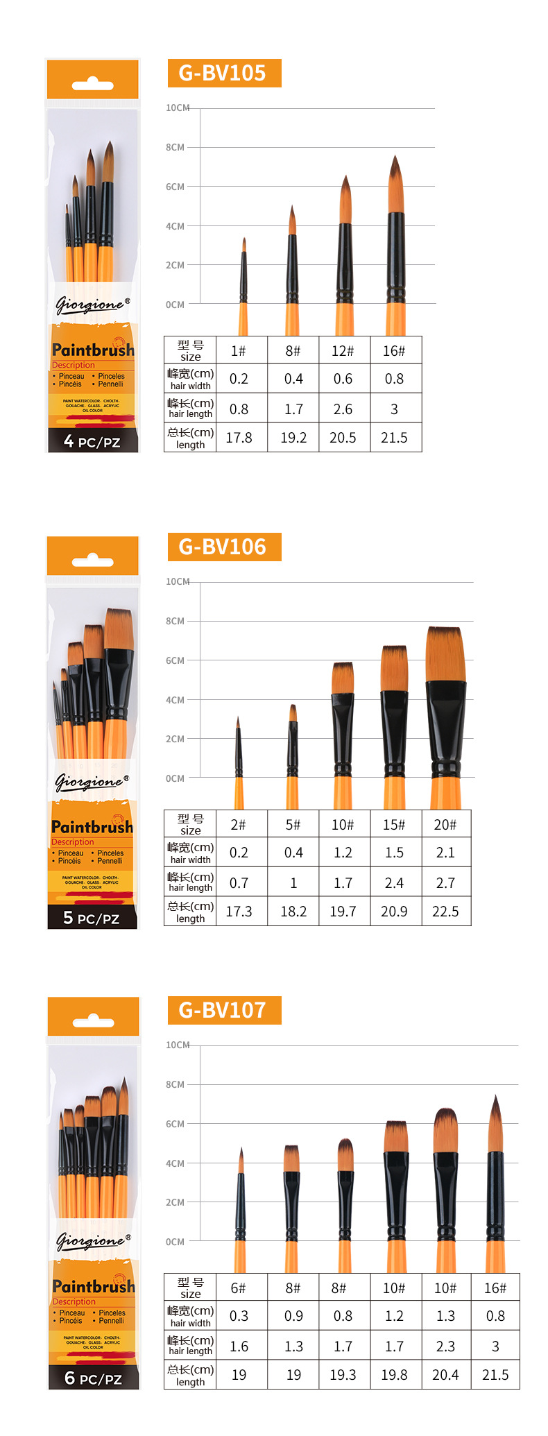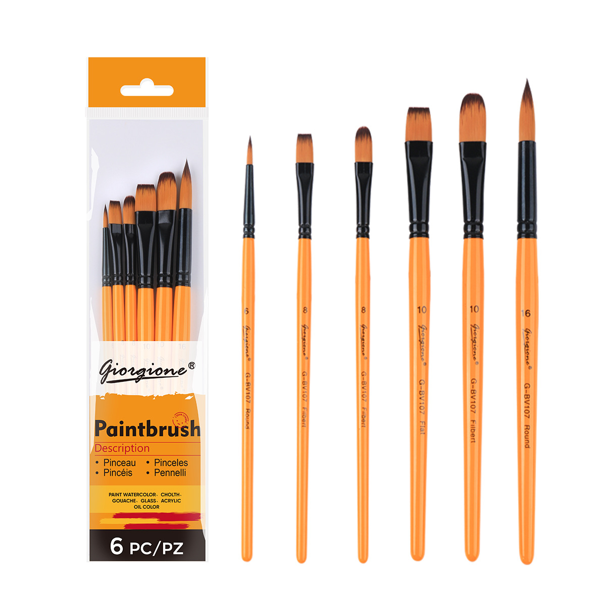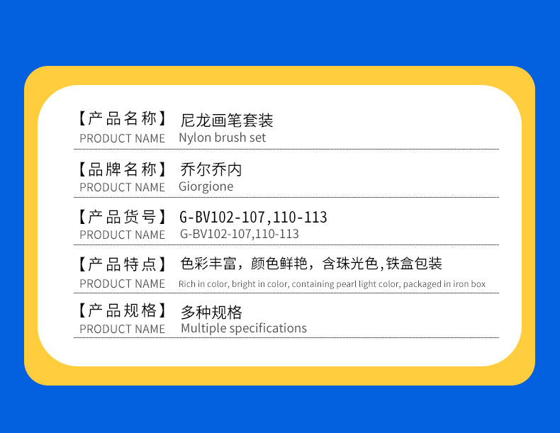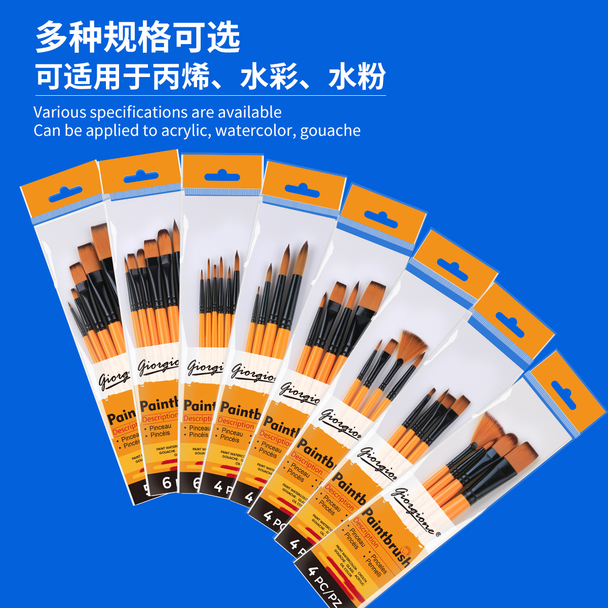 乔尔乔内尼龙画笔套装油画水粉水彩丙烯颜料笔刷绘画平头画材外贸