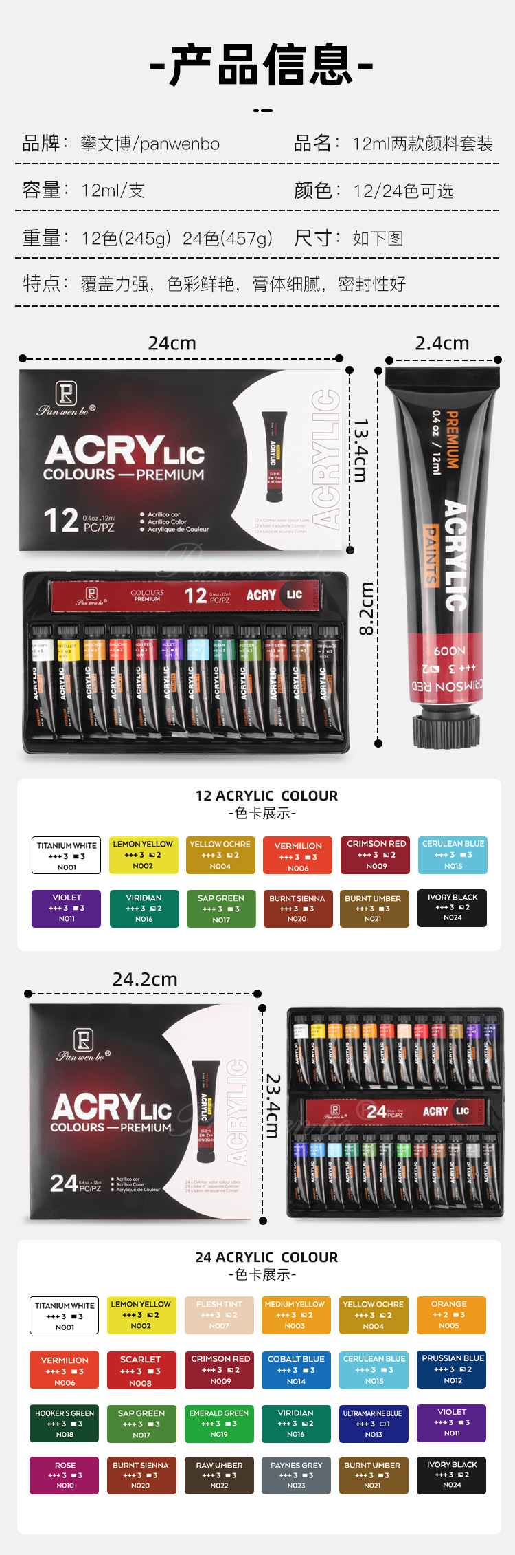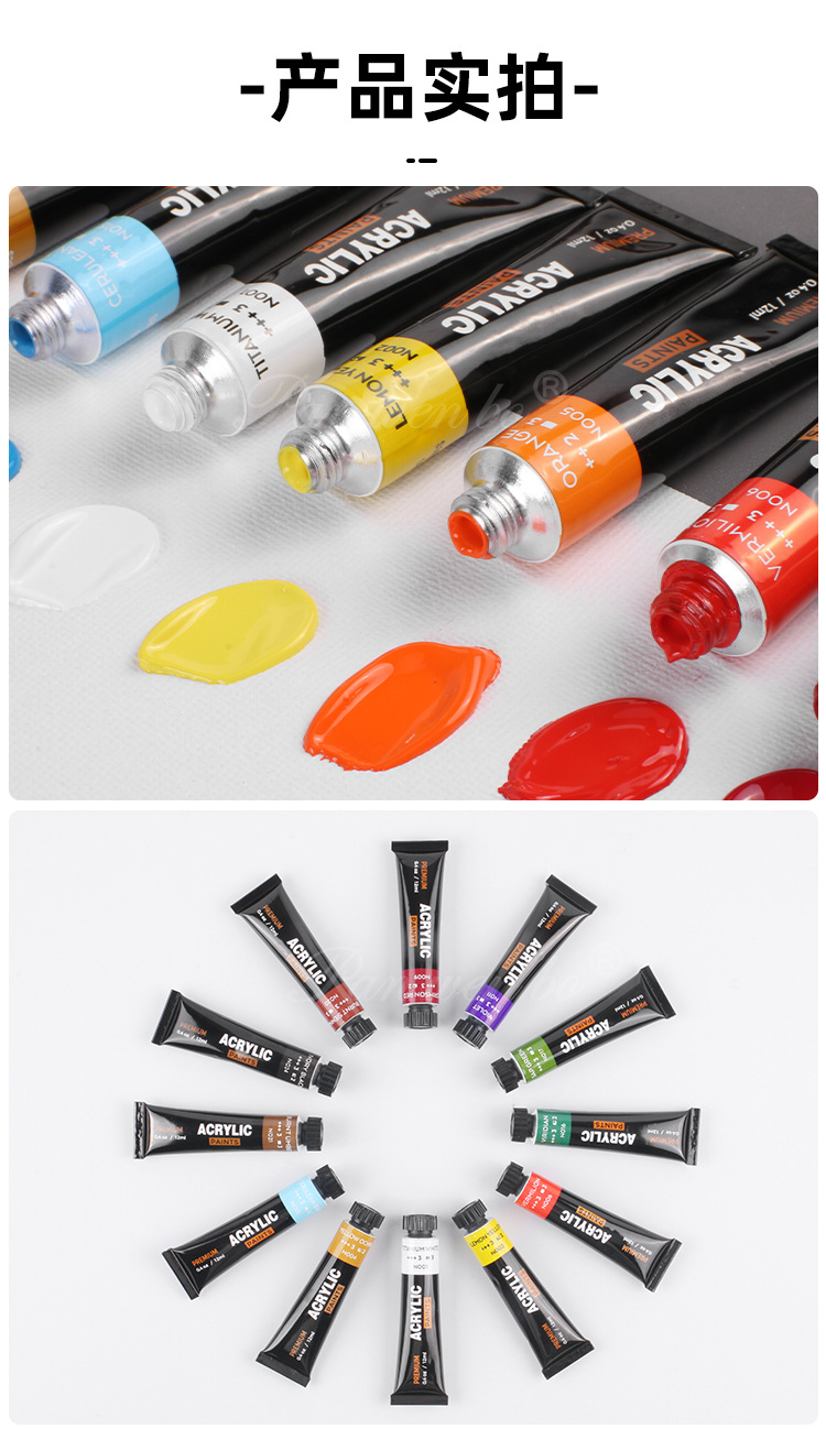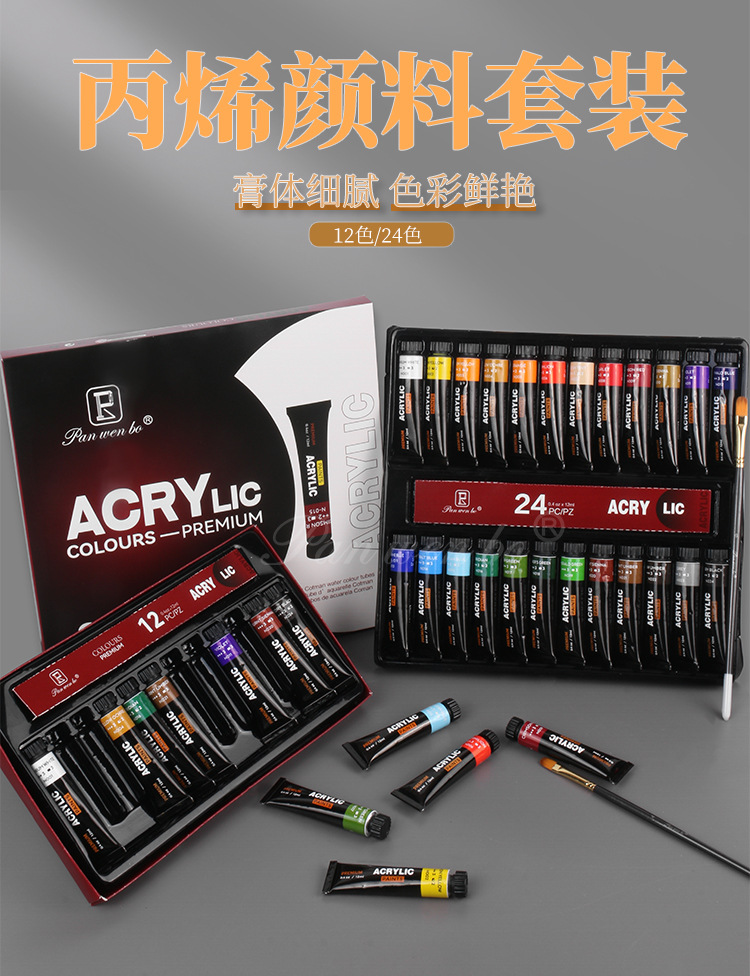 12ML丙烯颜料美术生24色水彩绘画套装挤压式diy涂鸦画画用品批发