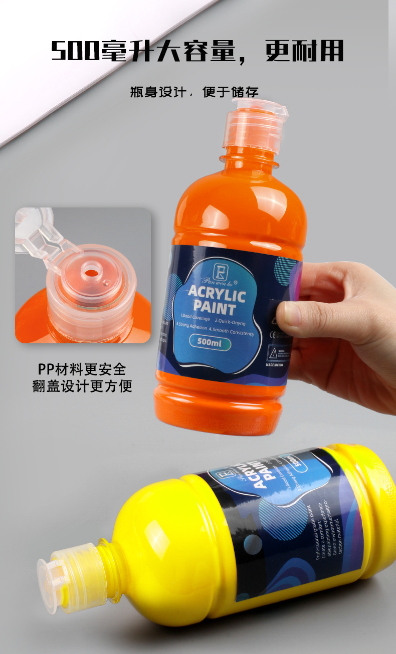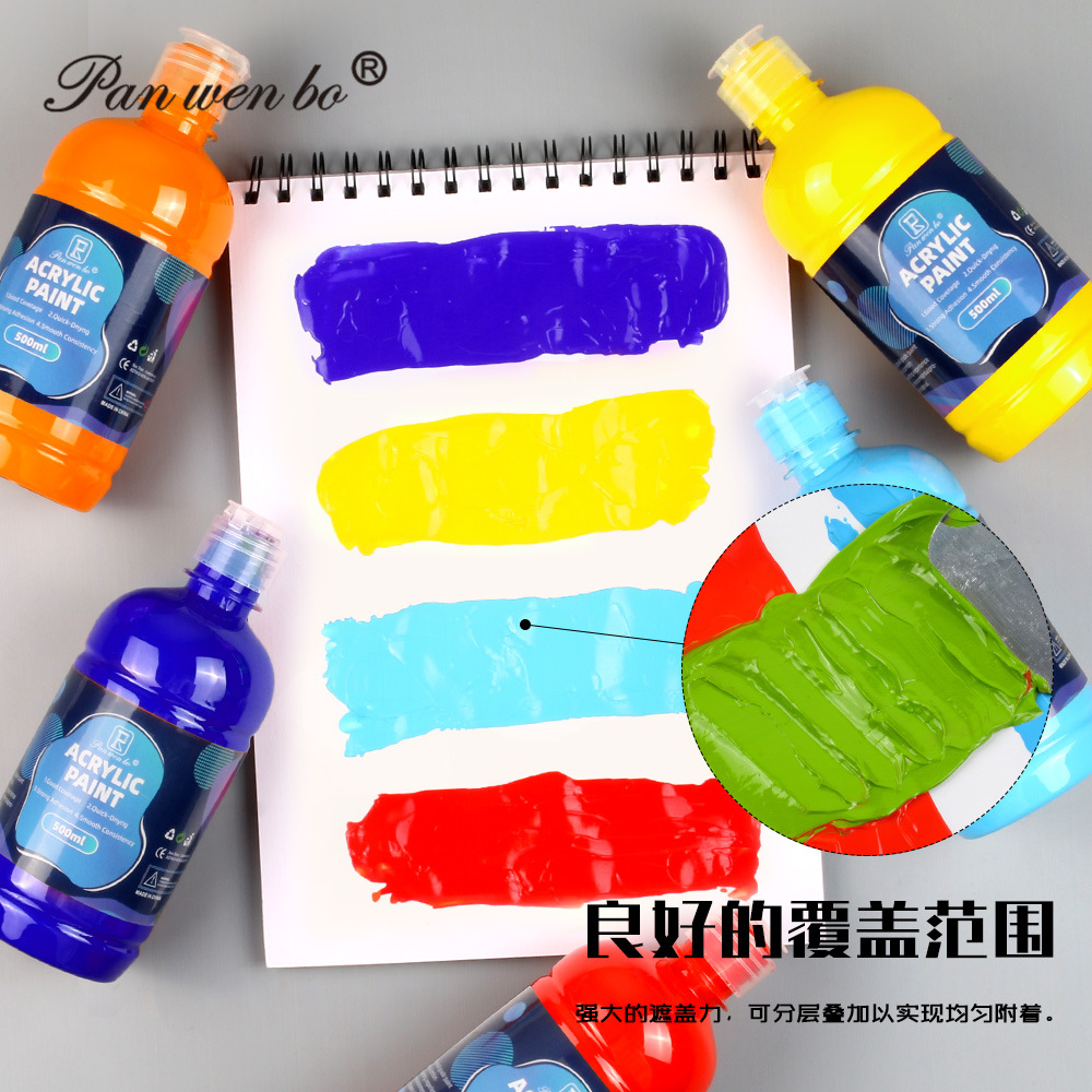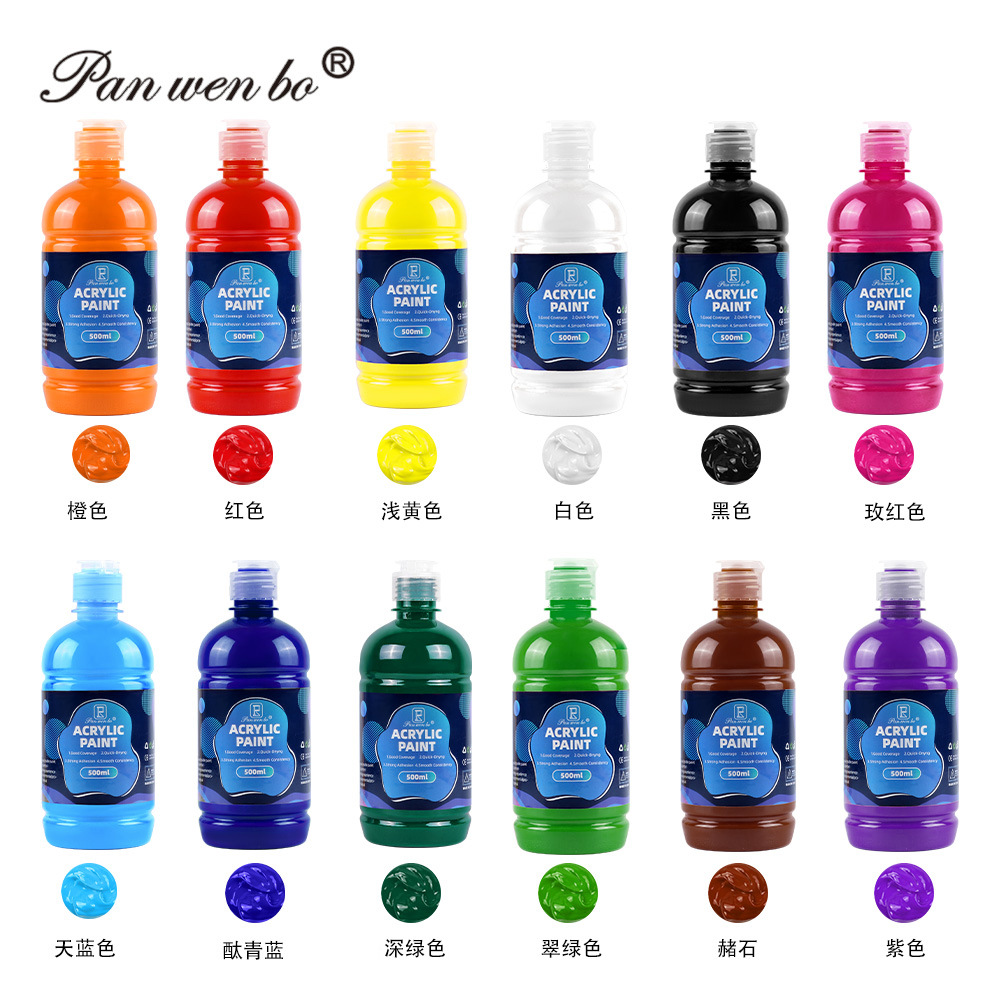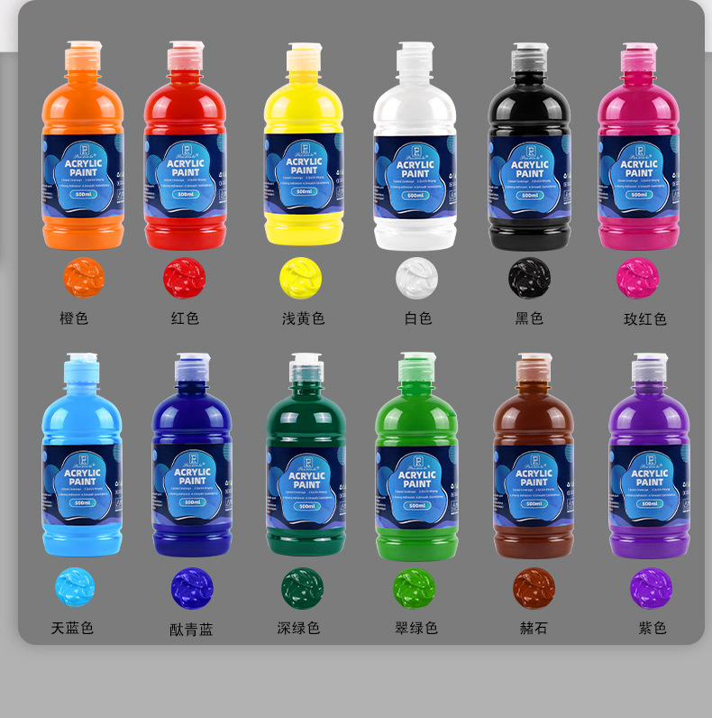 跨境丙烯颜料500ML大罐装水粉颜料涂鸦手绘防水墙绘水彩颜料批发