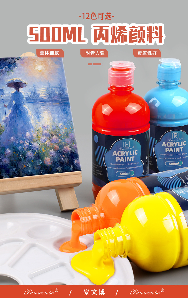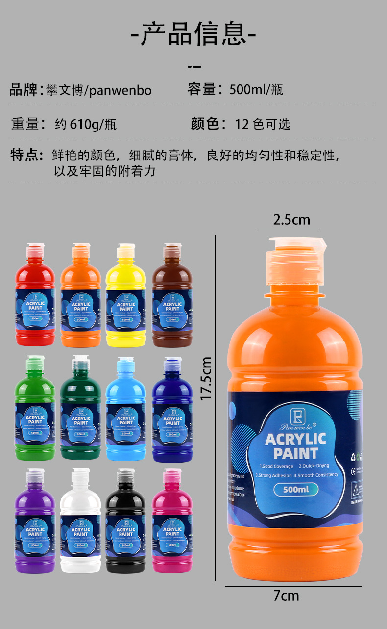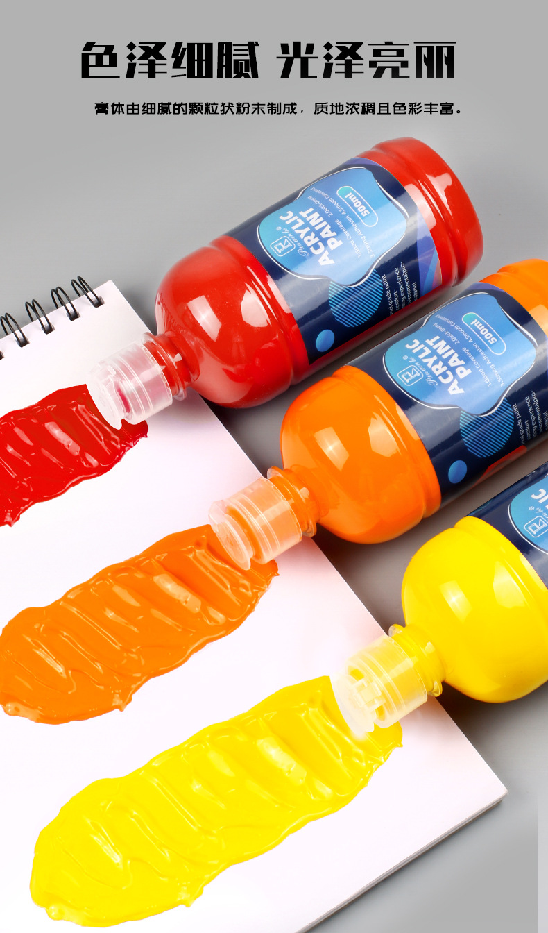 跨境丙烯颜料500ML大罐装水粉颜料涂鸦手绘防水墙绘水彩颜料批发