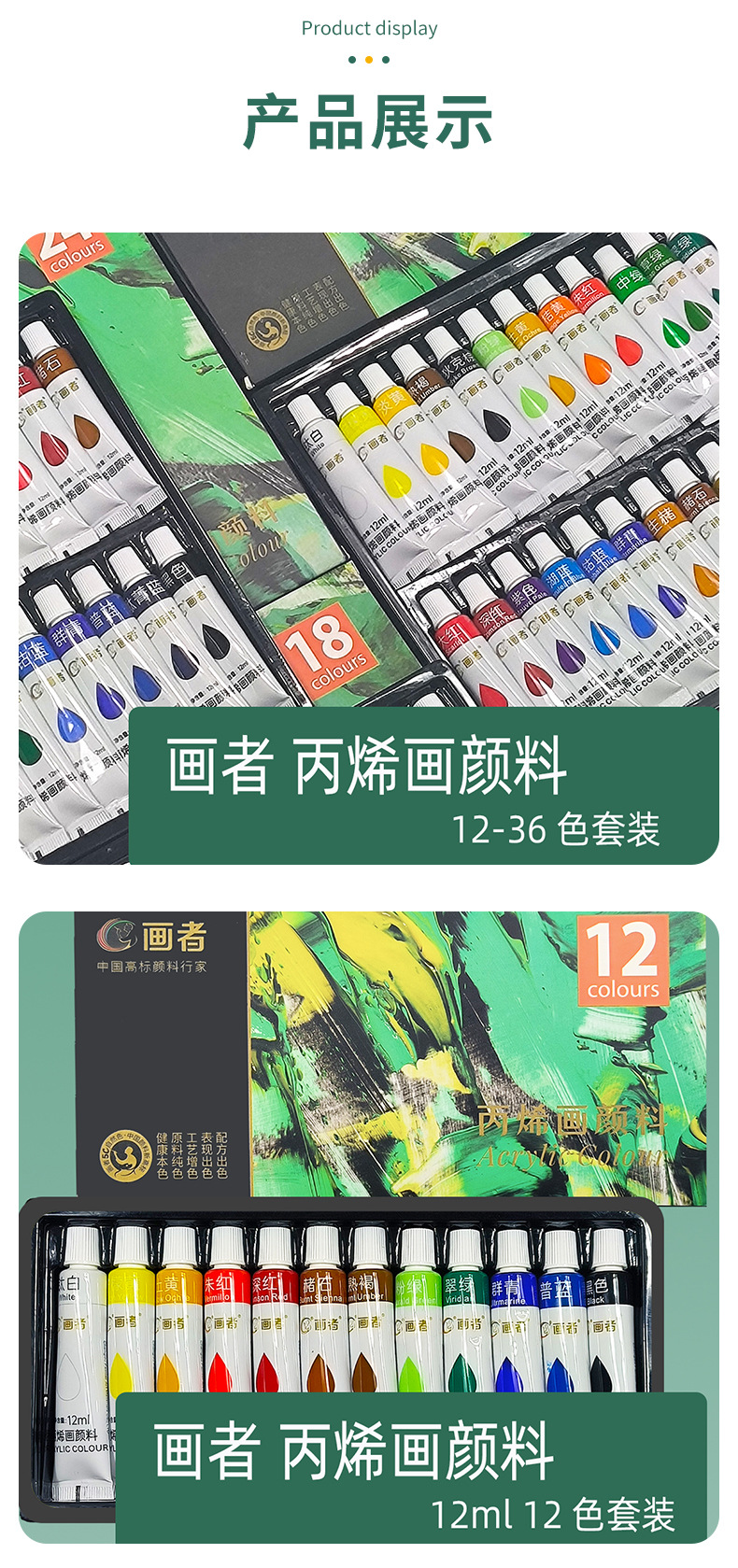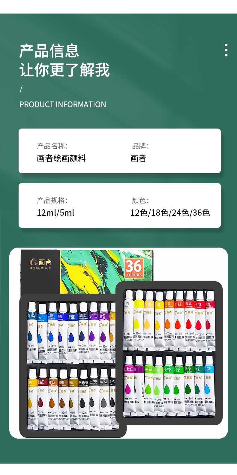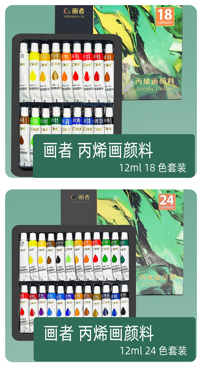 画者丙烯画颜料套装12/18/24/36色5/12ml管装便携DIY绘画美术套装