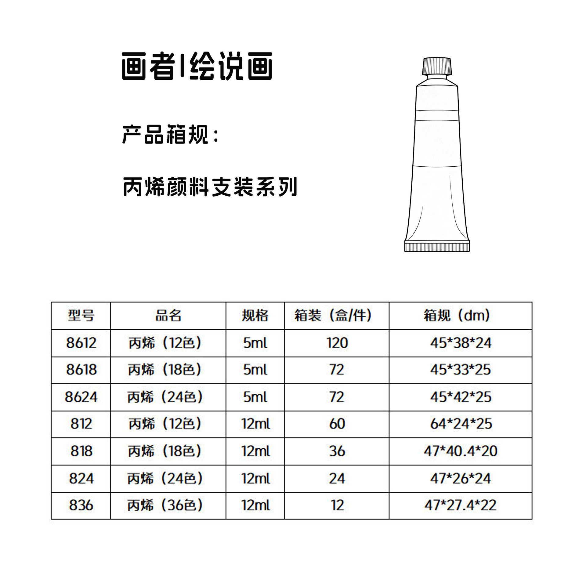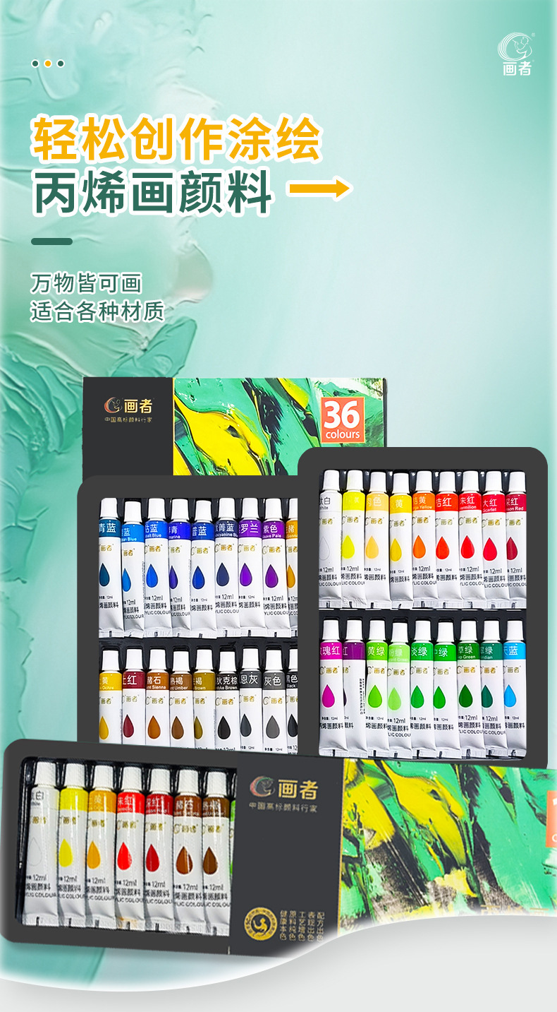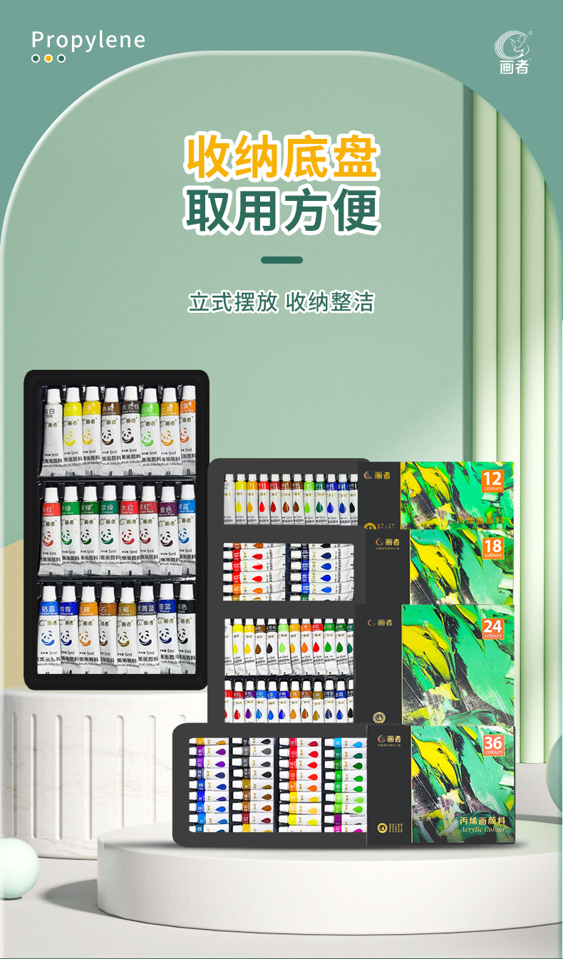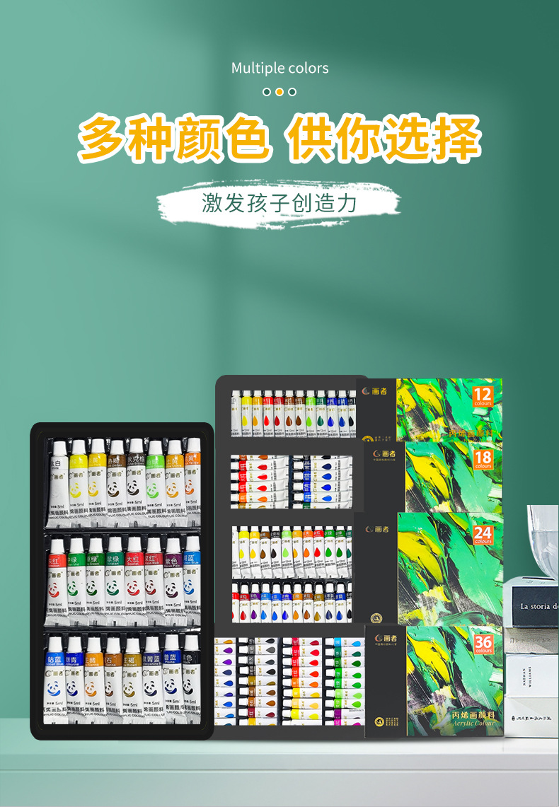 画者丙烯画颜料套装12/18/24/36色5/12ml管装便携DIY绘画美术套装