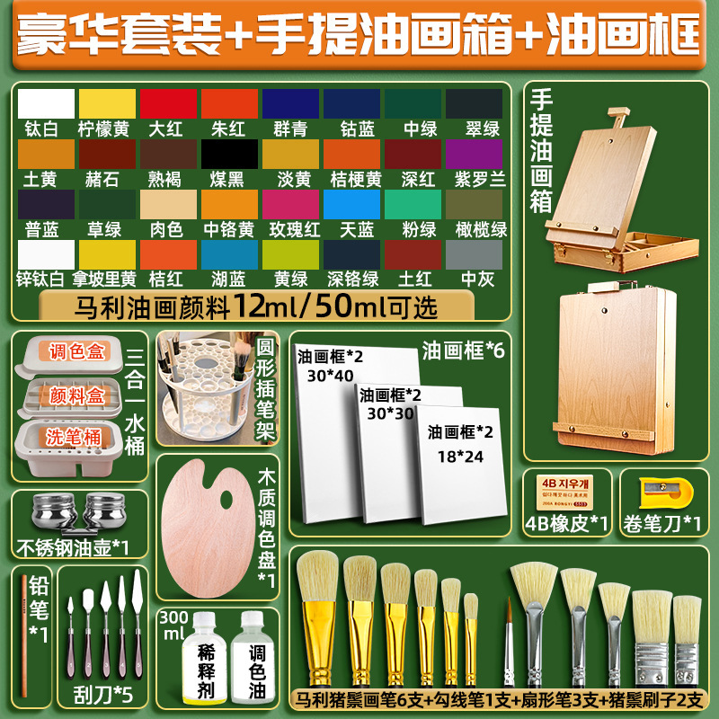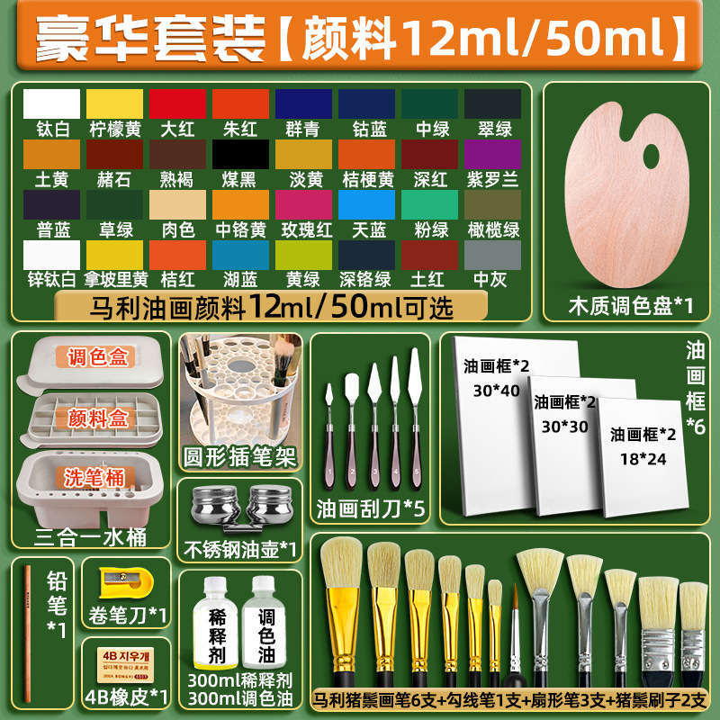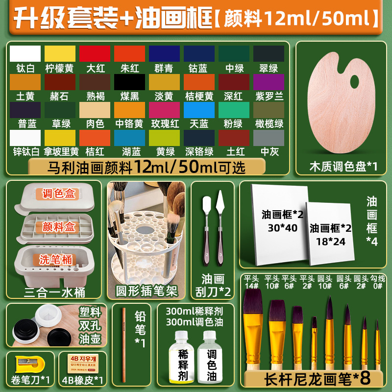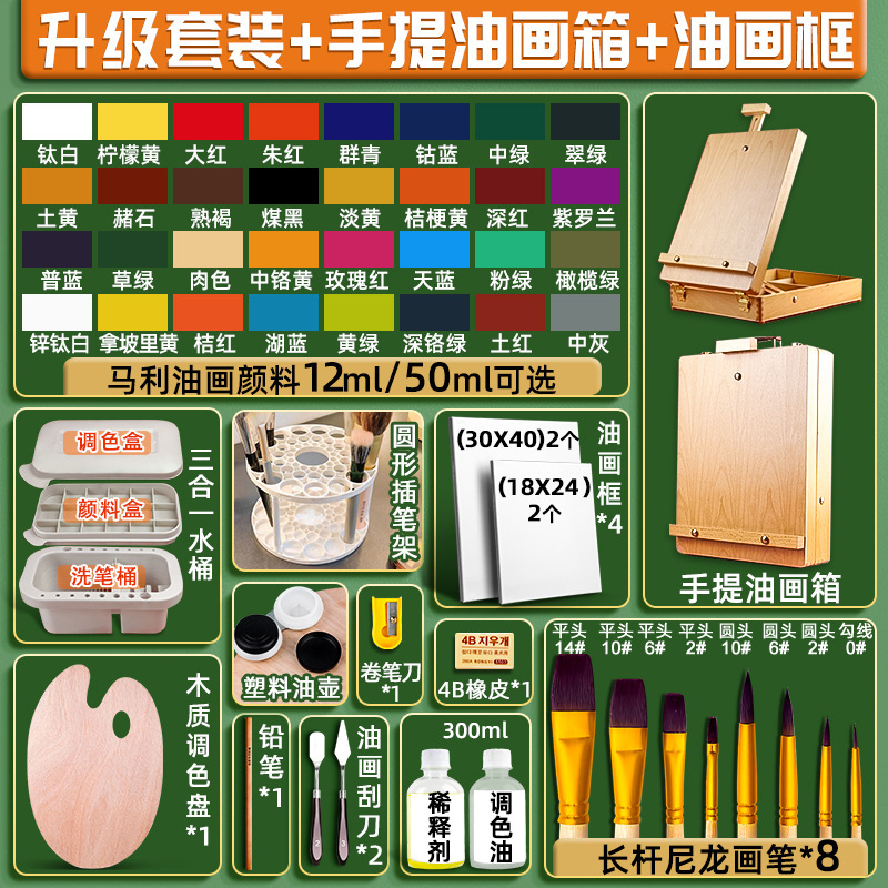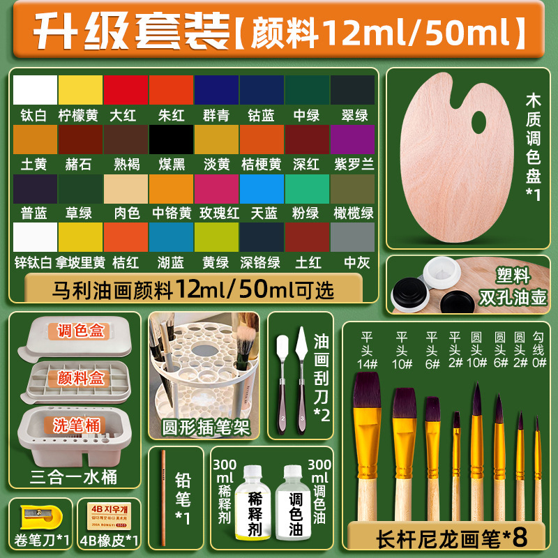 马利牌油画颜料套装美术生油画工具全套24色学生绘画入门油彩颜料