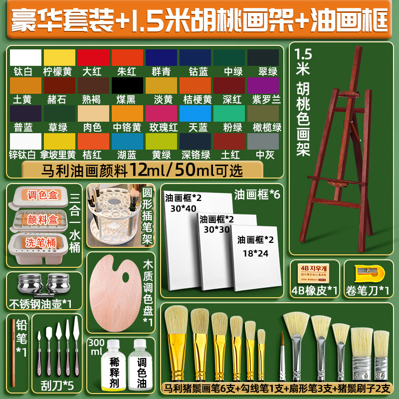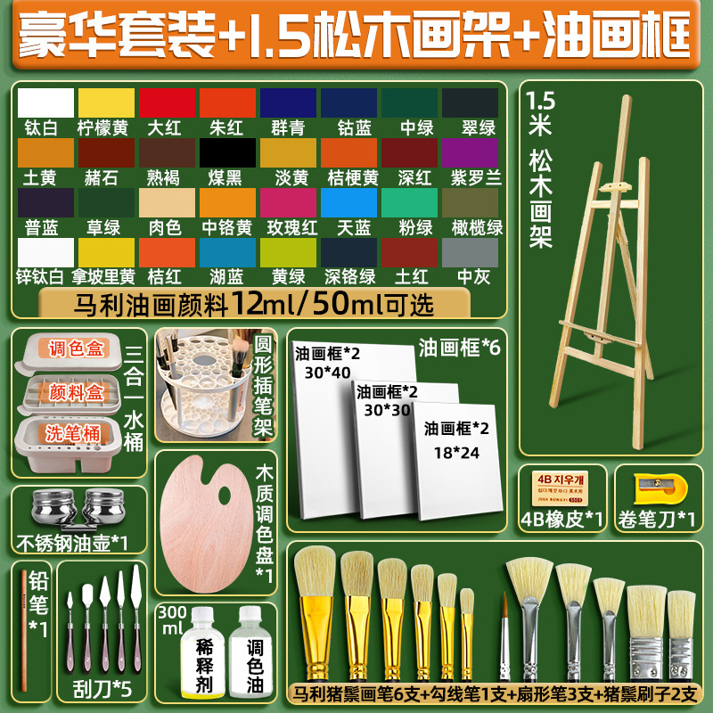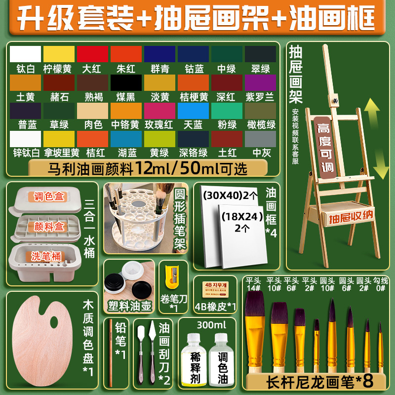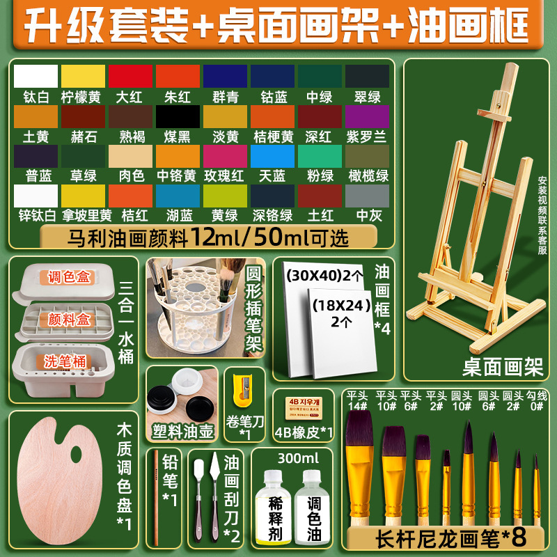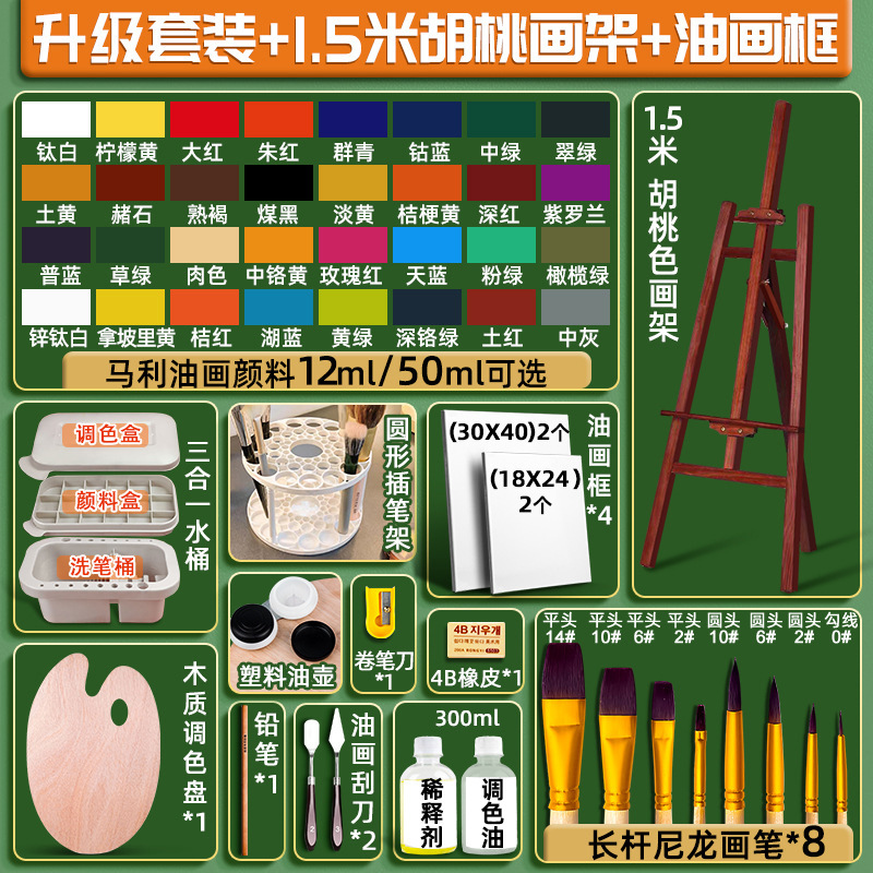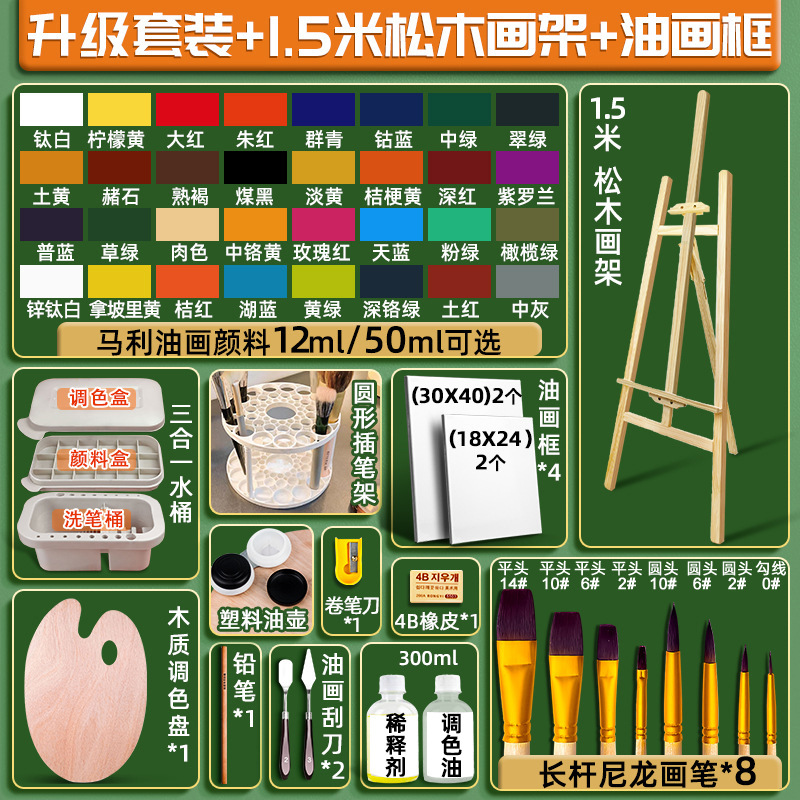 马利牌油画颜料套装美术生油画工具全套24色学生绘画入门油彩颜料