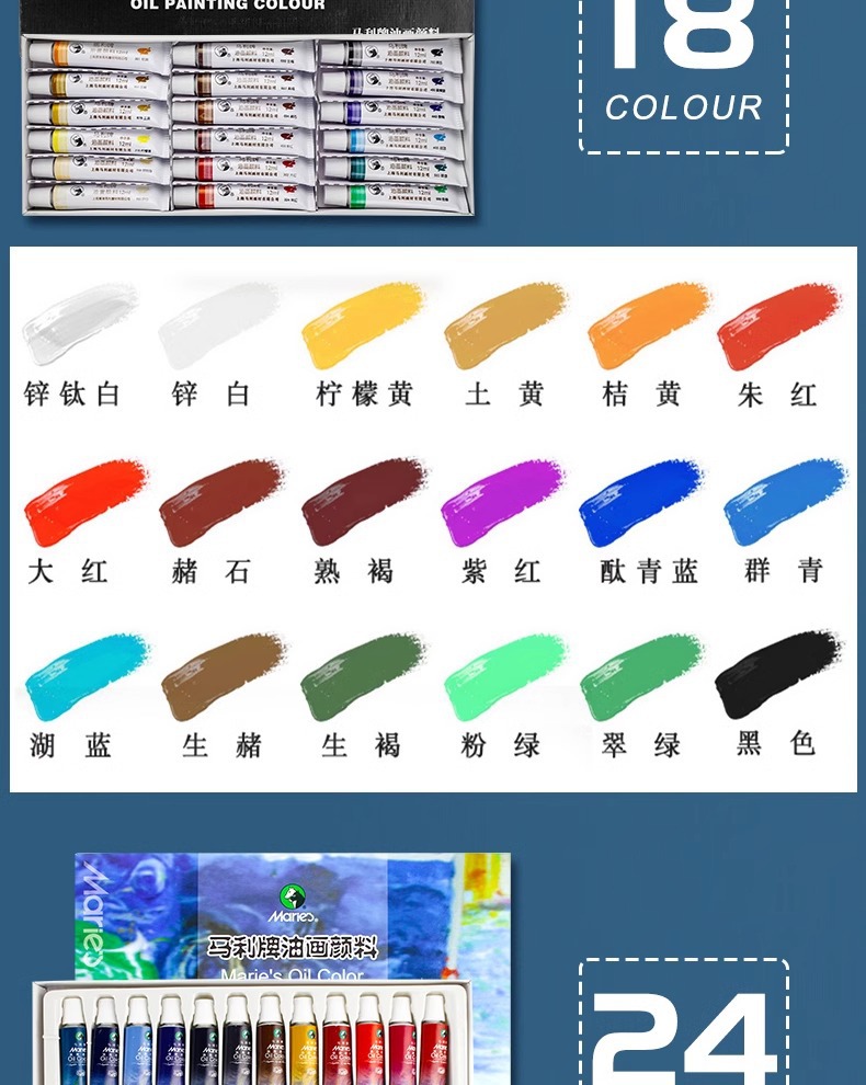 | 24 colors 12ml [marley oil paints-xiaozhi]](24色12ml【马利油画颜料-小支】) | USD $20.06 | 21341 piece available |