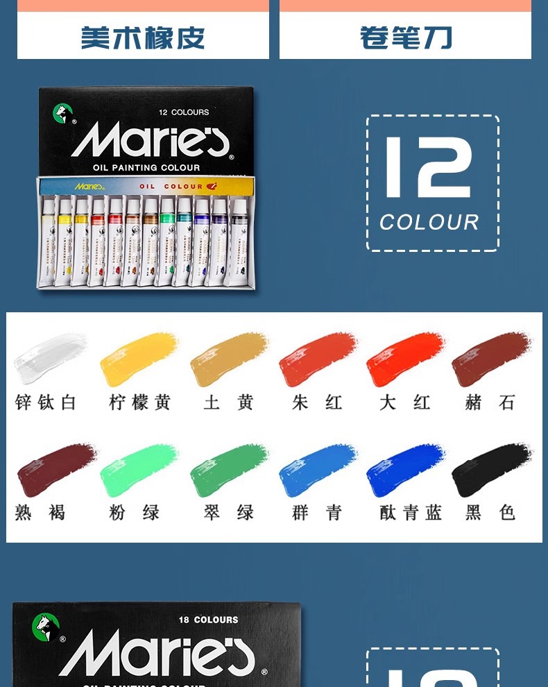 | 12 colors 12ml [marley oil paints-xiaozhi]](12色12ml【马利油画颜料-小支】) | USD $26.32 | 21345 piece available |