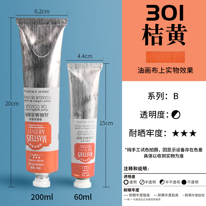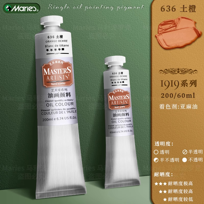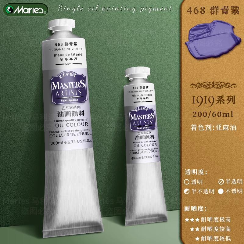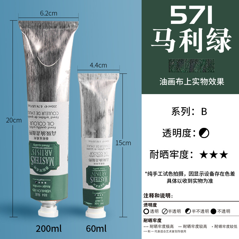马利艺术家级油画颜料60ml高级专业绘画颜料初学者铝管单支200ml